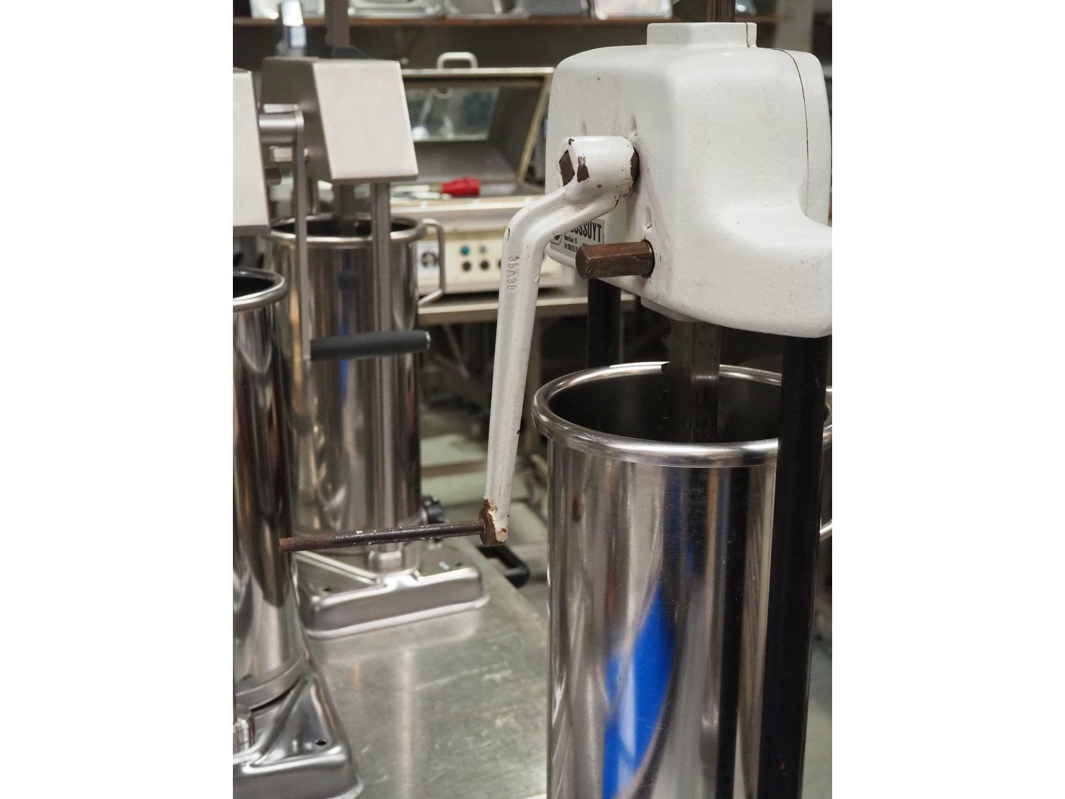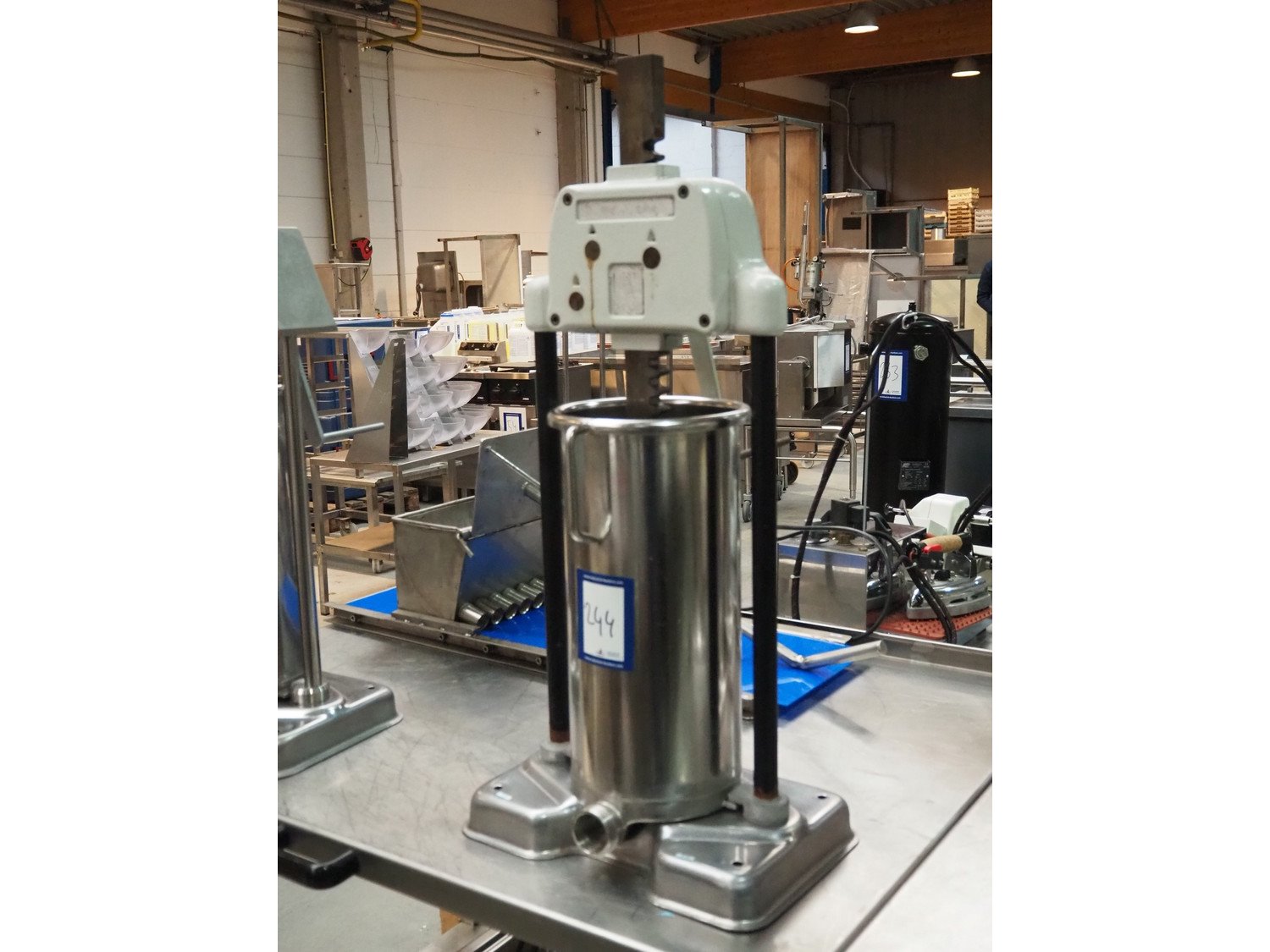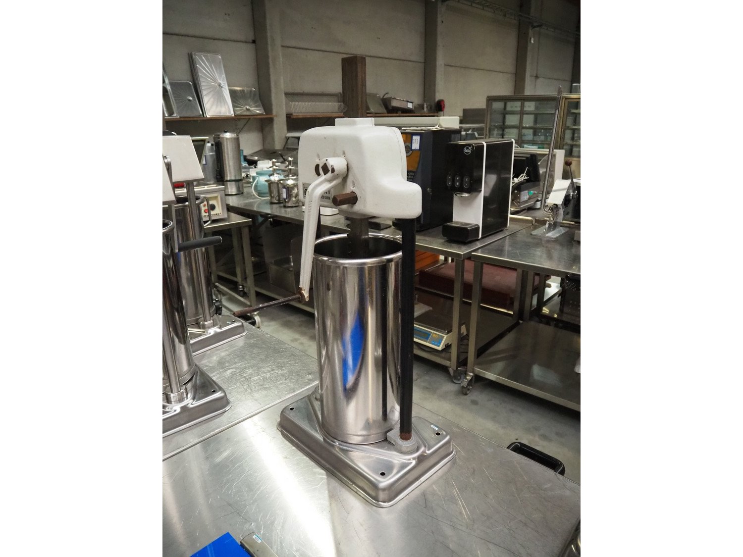 L.Bossuyt piston filler, dimensions inside: Ø 190 mm x 300 mm, total dimensions: 400 mm x 250 mm x 840 mm.