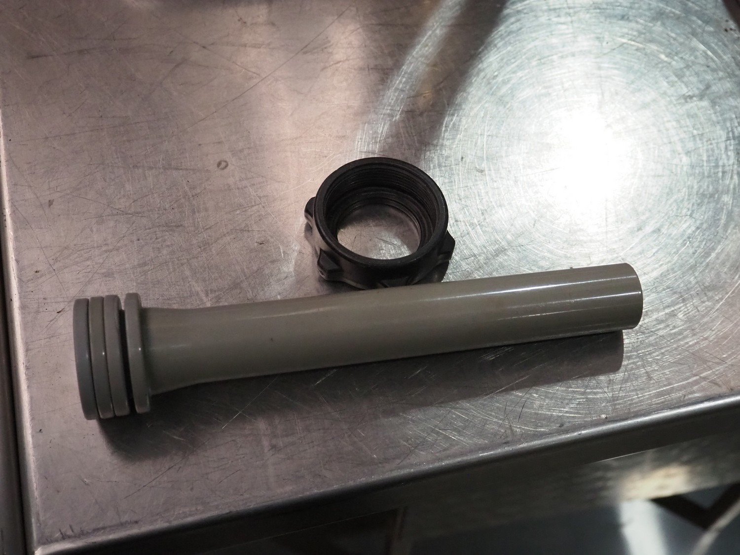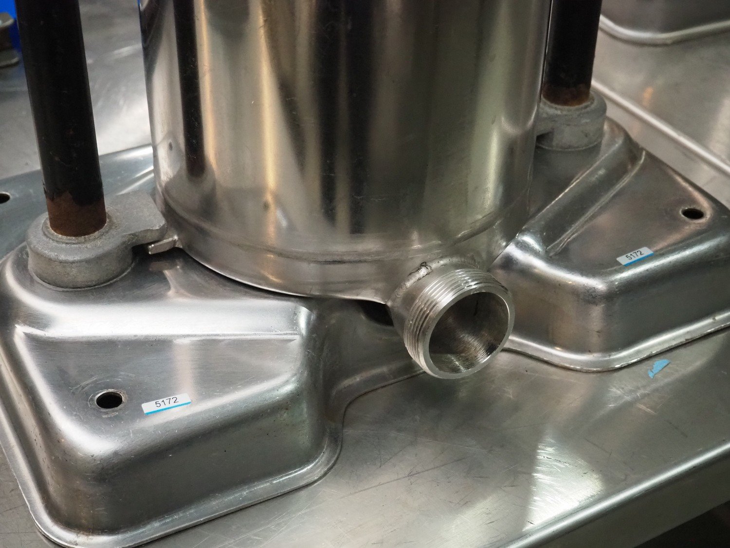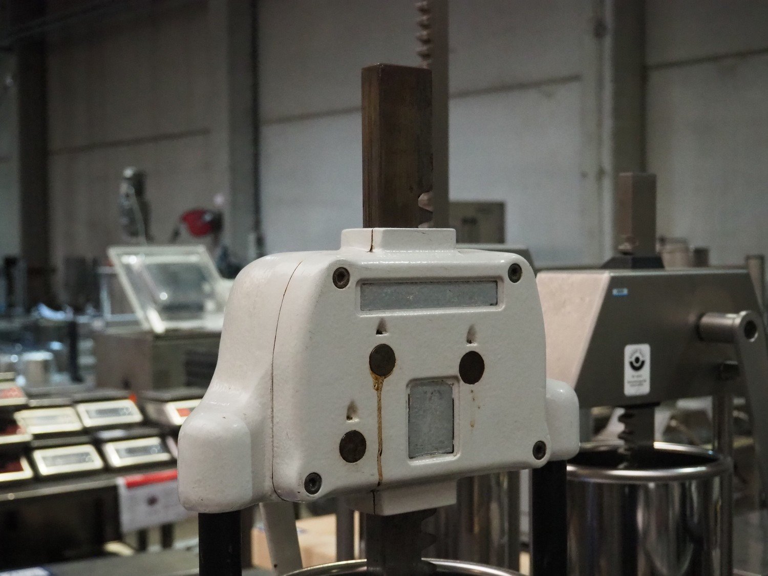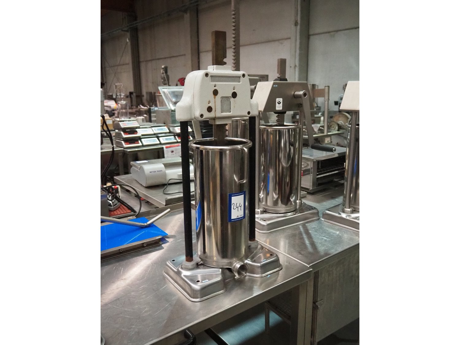 L.Bossuyt piston filler, dimensions inside: Ø 190 mm x 300 mm, total dimensions: 400 mm x 250 mm x 840 mm.