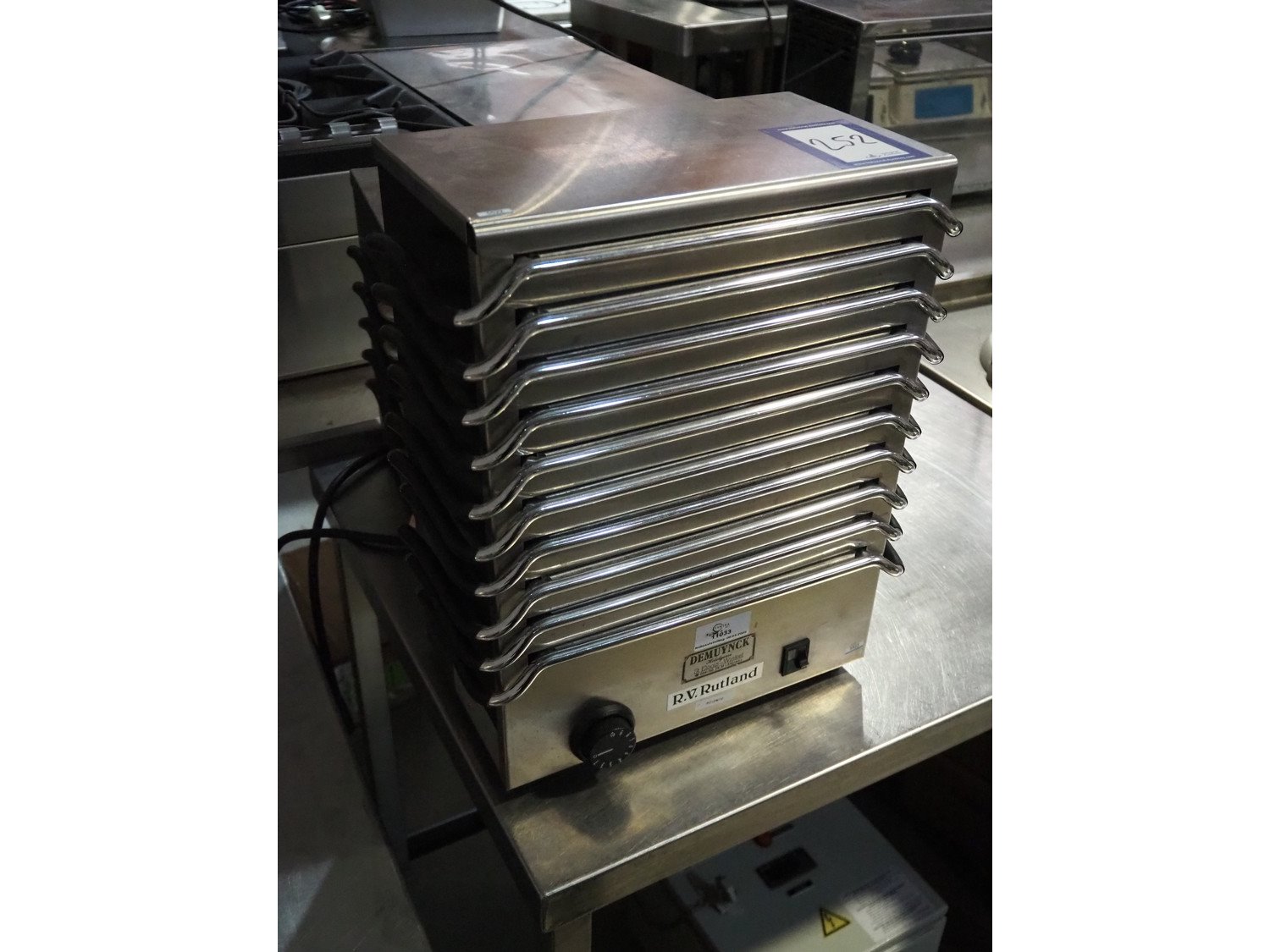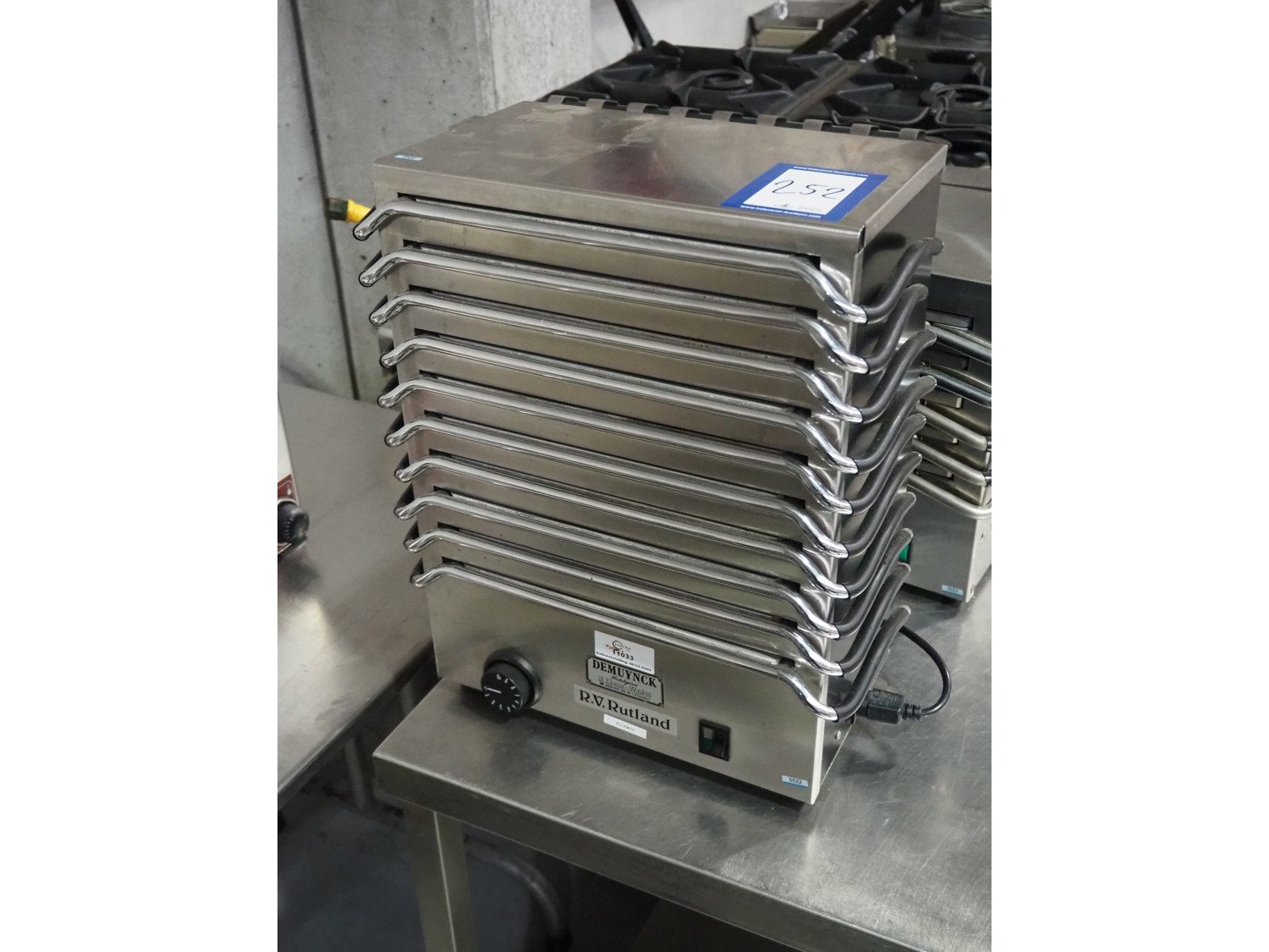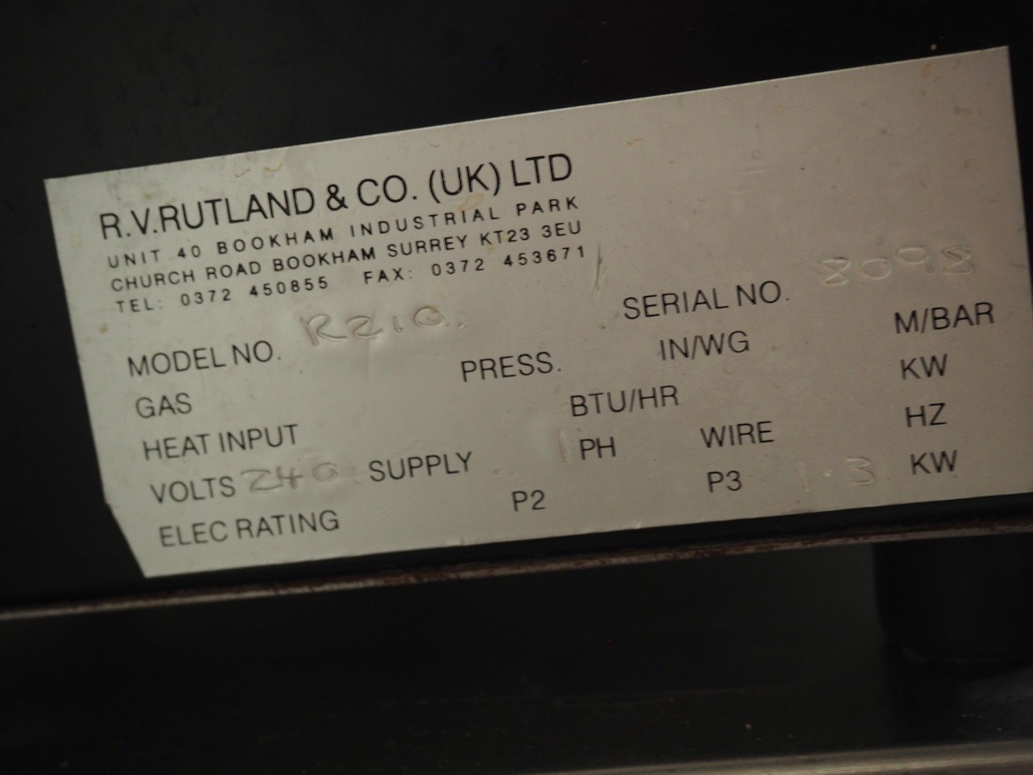 R.V.Rutland&Co; Ltd plate heater, model: R210, serial number: 8098, 240 V, 1 Ph, 1.3 kW, 10 floors, dimensions each floor: 270 mm x 150 mm, total dimensions: 380 mm x 220 mm x 470 mm.