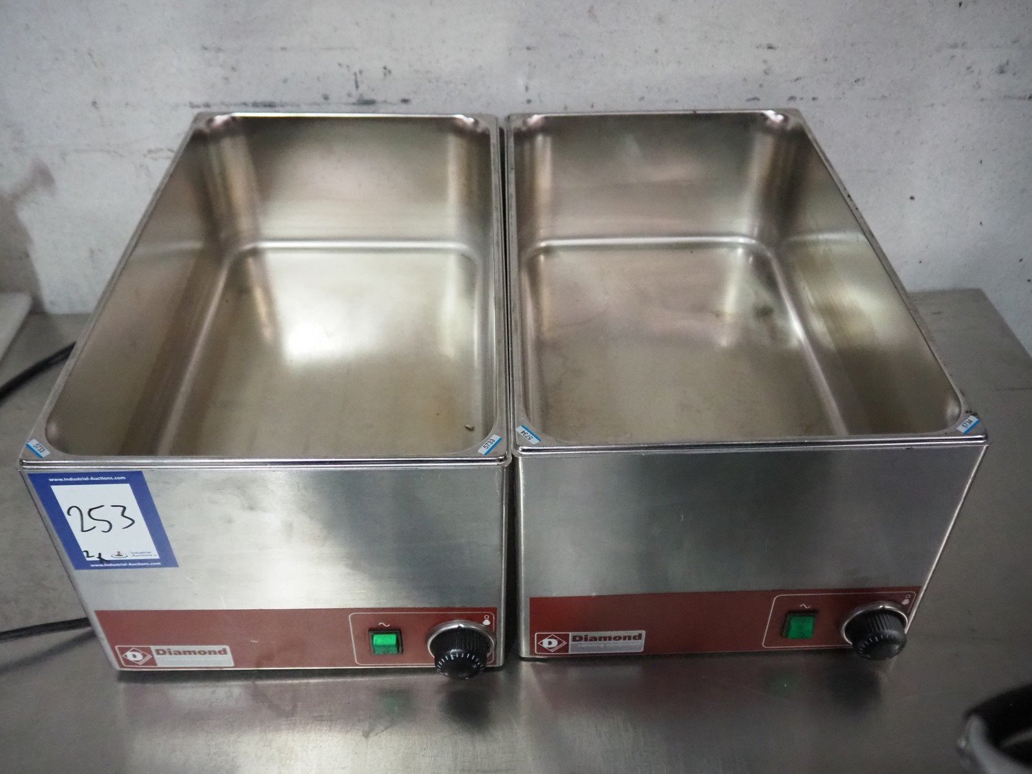 2x Diamond au bain-marie, model: BM1/X, 220-240 V, 50 Hz, 1500 W, inside dimensions: 300 mm x 500 mm x 160 mm, total dimensions: 560 mm x 330 mm x 250 mm.