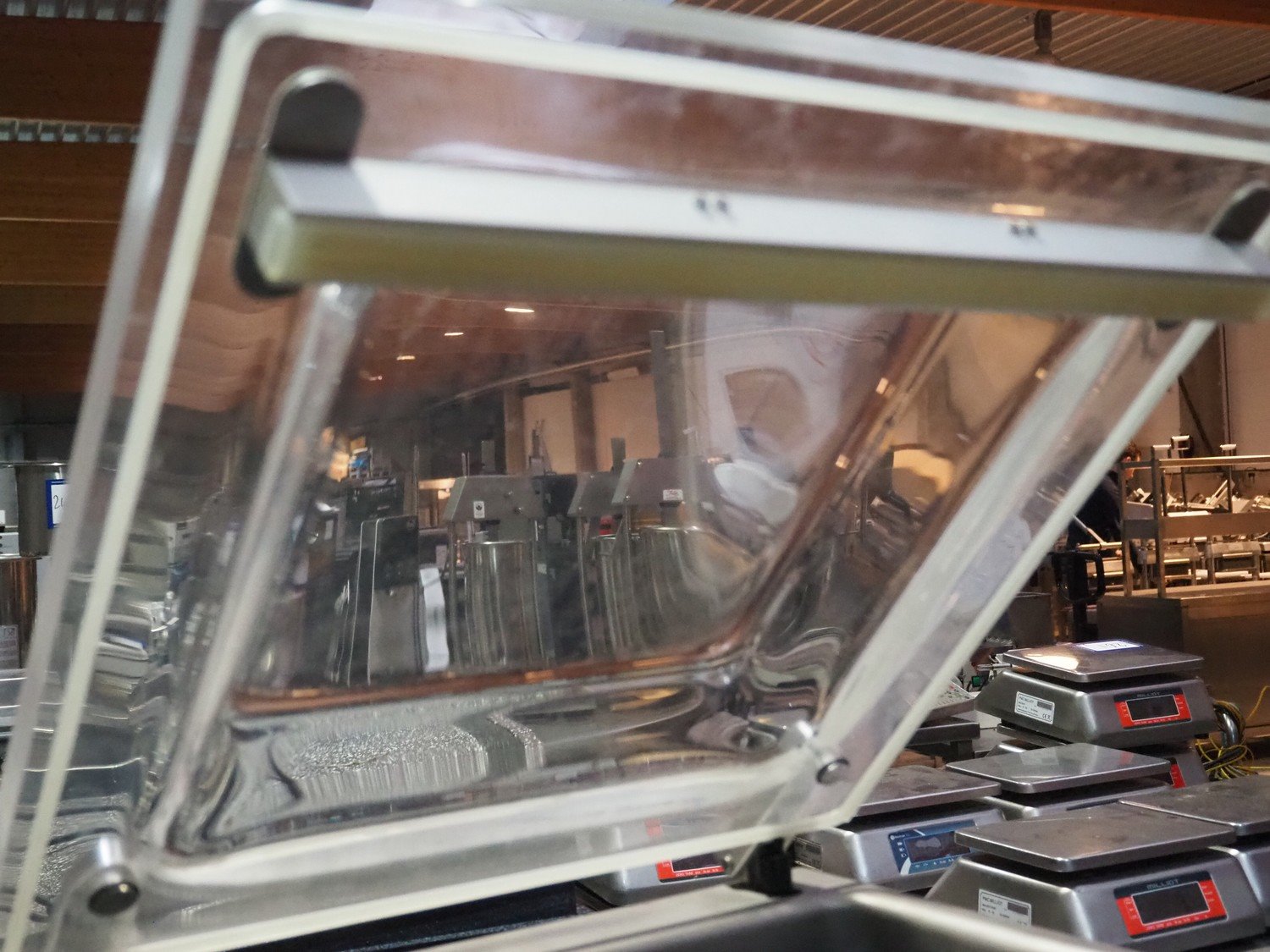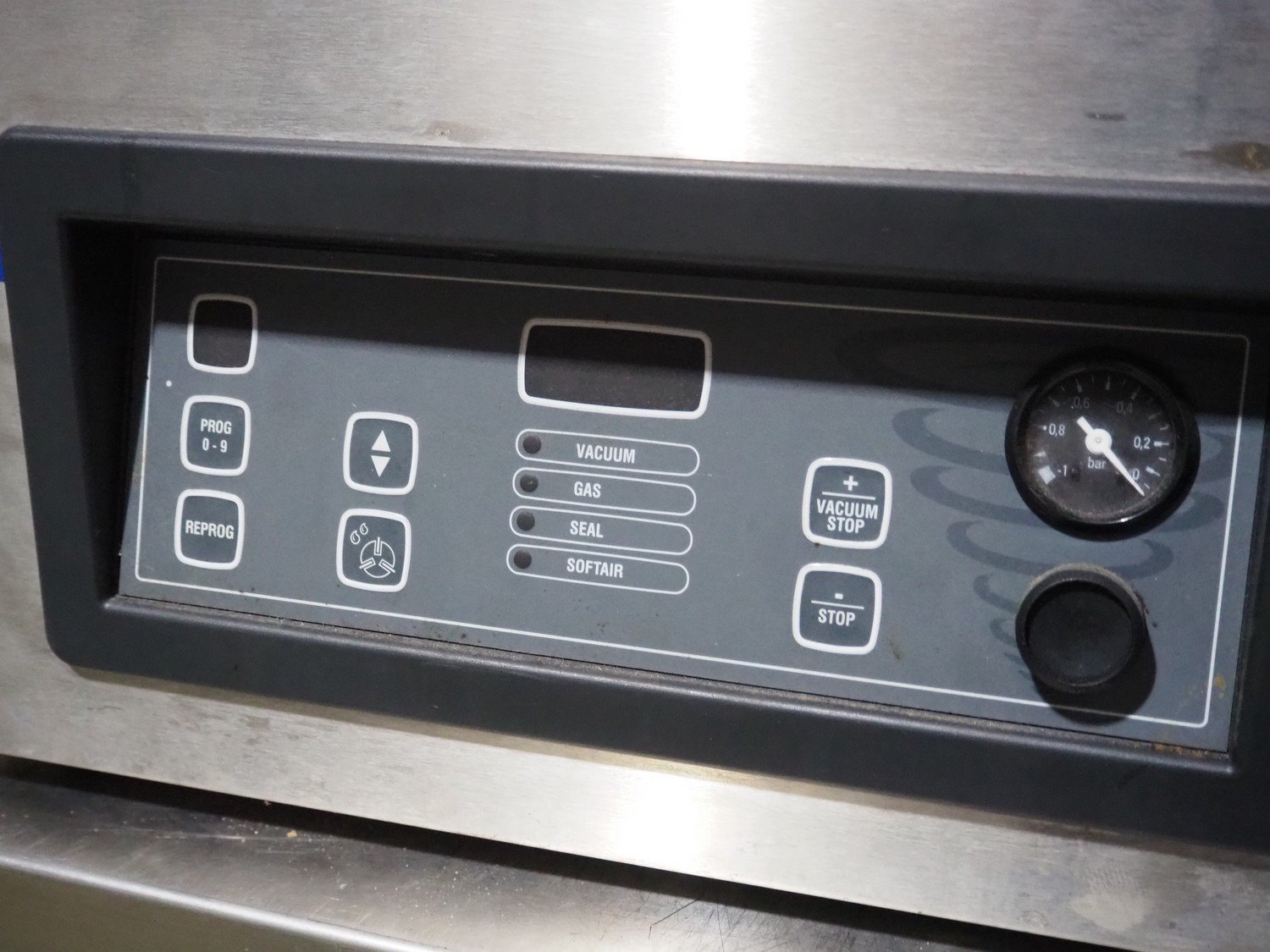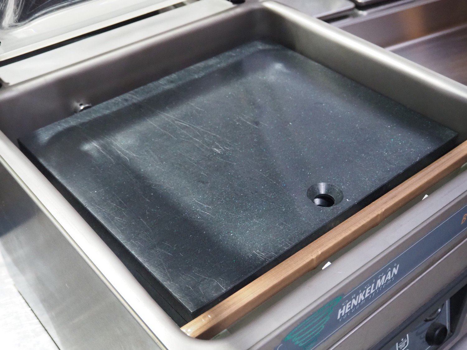 Henkelman vacuum machine, type: Boxer 42, machine number: H0B10150003, year of construction: 2015, 230 V, 1 Ph, 50 Hz, 5 A, 0.8 kW, chamber dimensions: 430 mm x 420 mm, seal length: 425 mm, total dimensions: 500 mm x 520 mm x 480 mm.