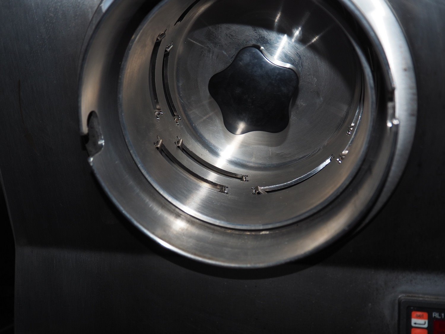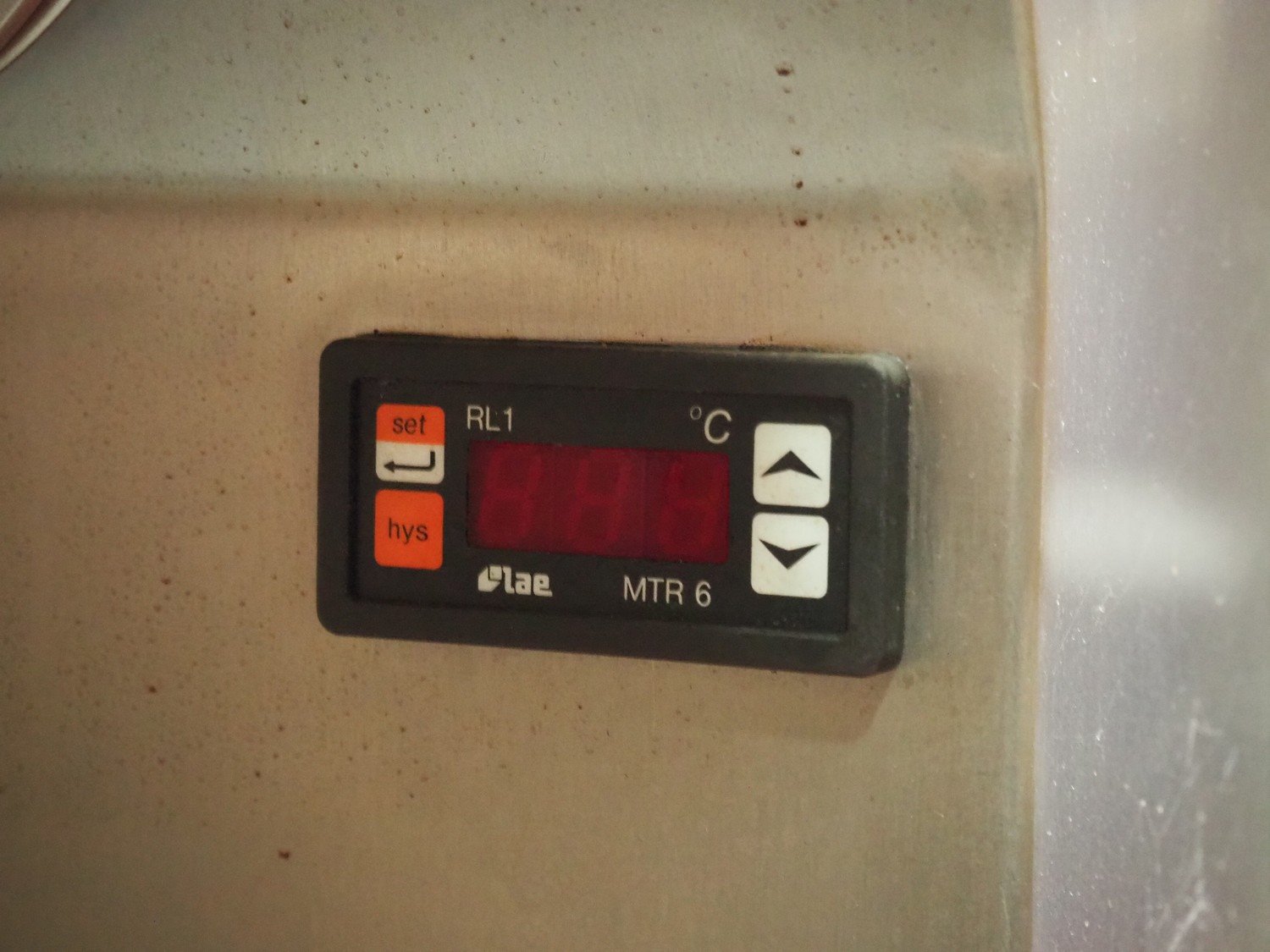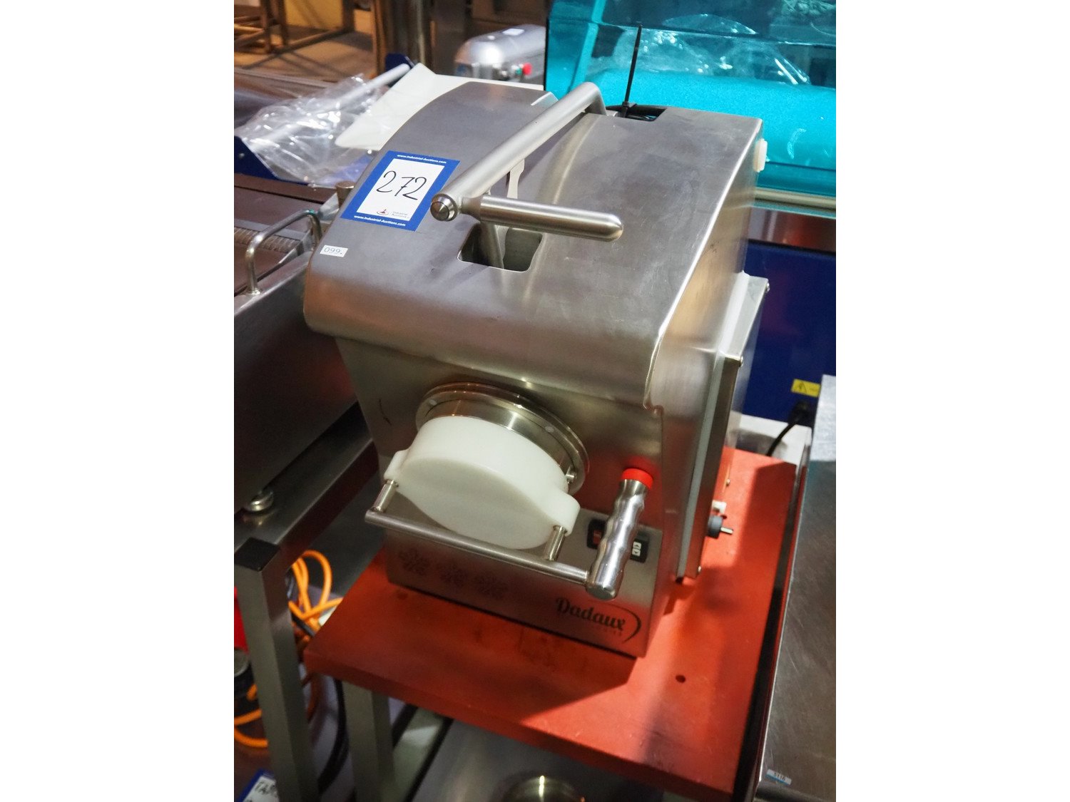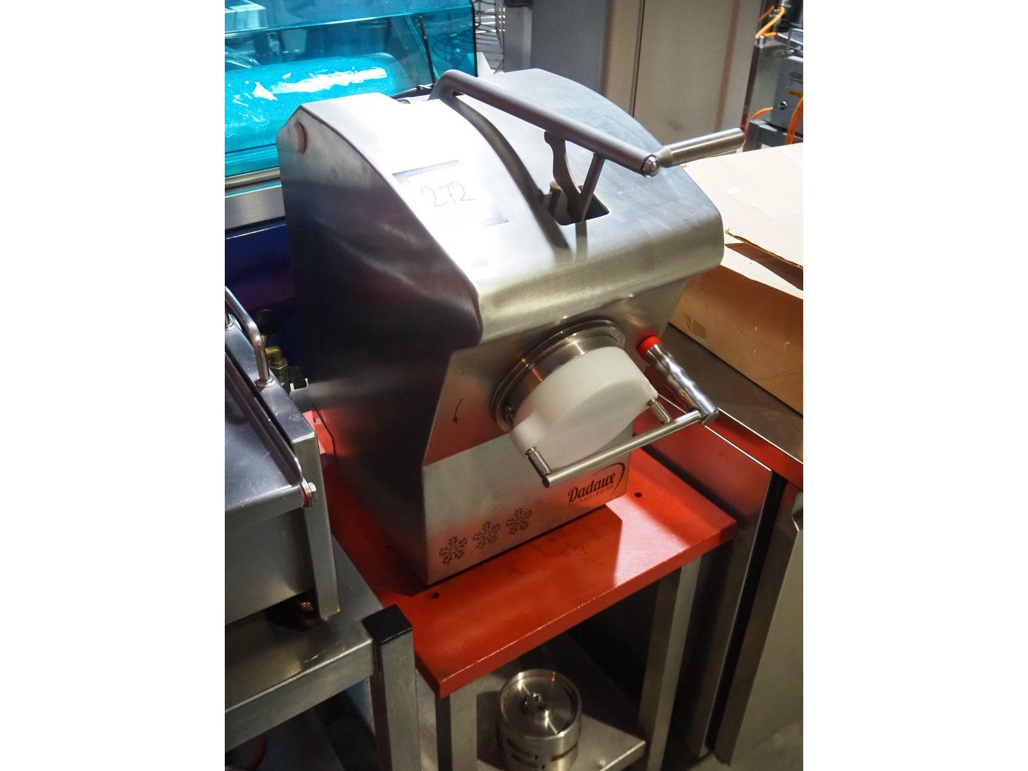 Dadaux meat slicer with integrated cooling, type: NEOCUT, number: P-1656, year of construction: 05-2016, 230 V, 50 Hz, refrigerant: R134a/140 gram, dimensions: 350 mm x 500 mm x 600 mm. Never used.