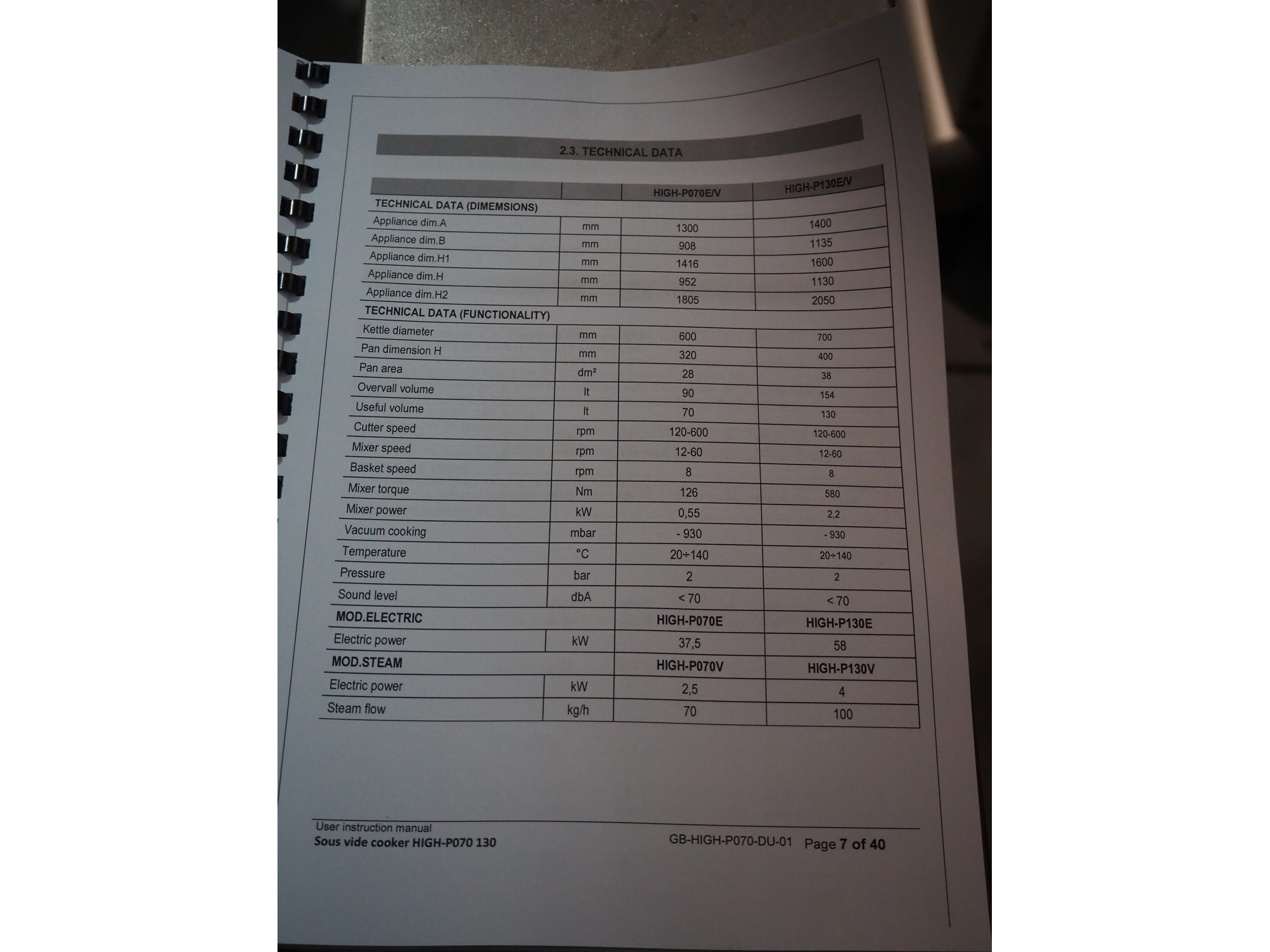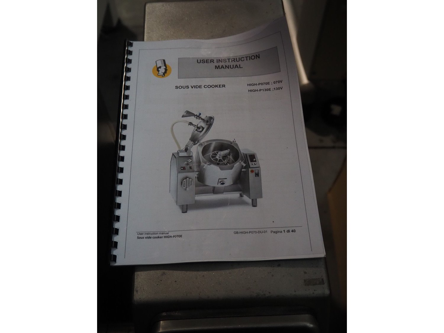 Firex cooking vessel, model: HIGH-P070E, number: 29140PH30, year of construction: 2011, volume: 70 L, dimensions: 1300 mm x 900 mm x 1150 mm. Overhauled in 2024.