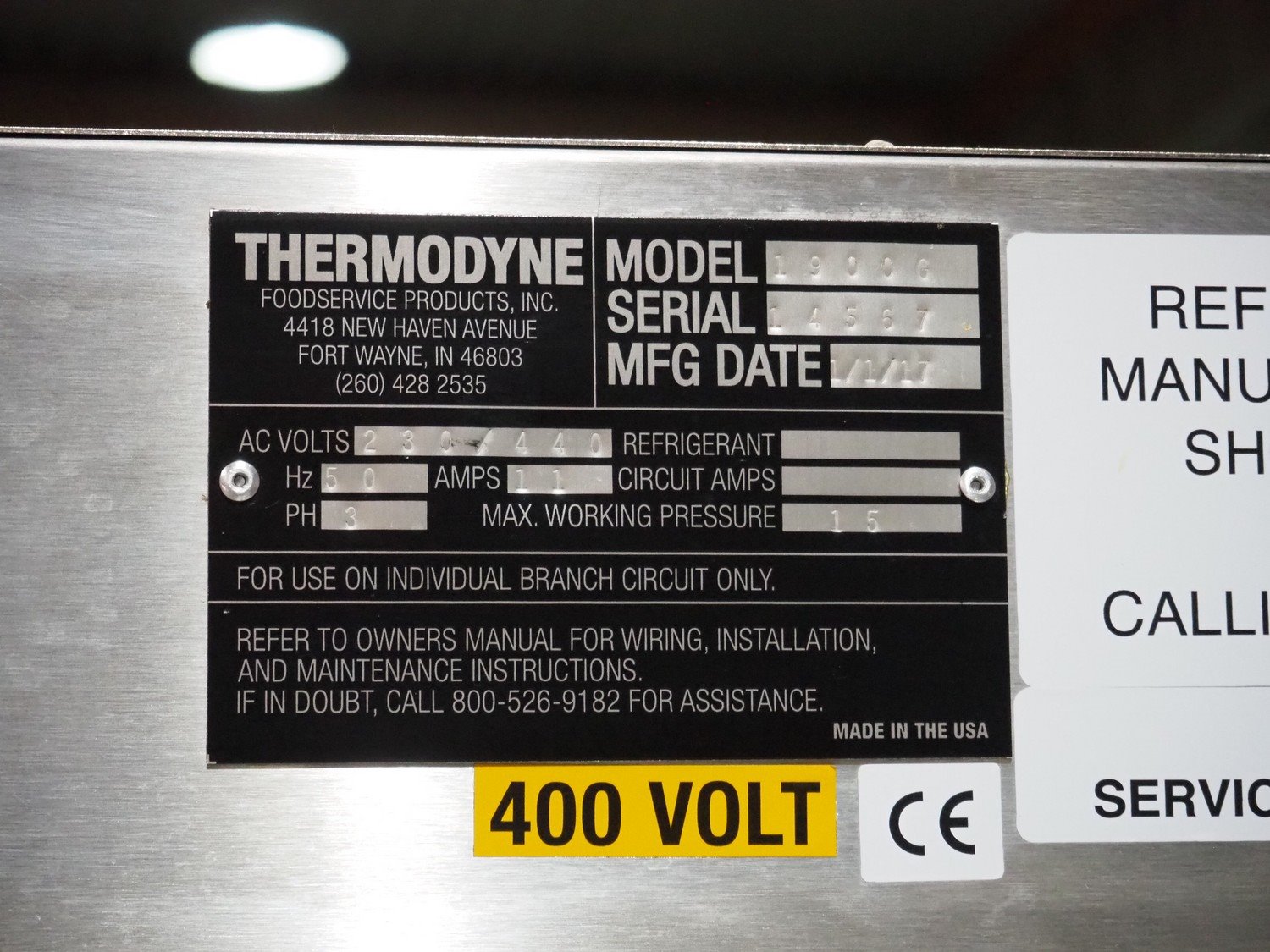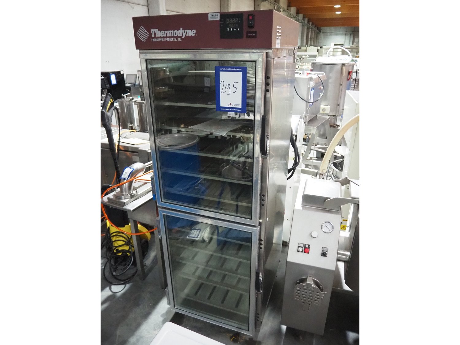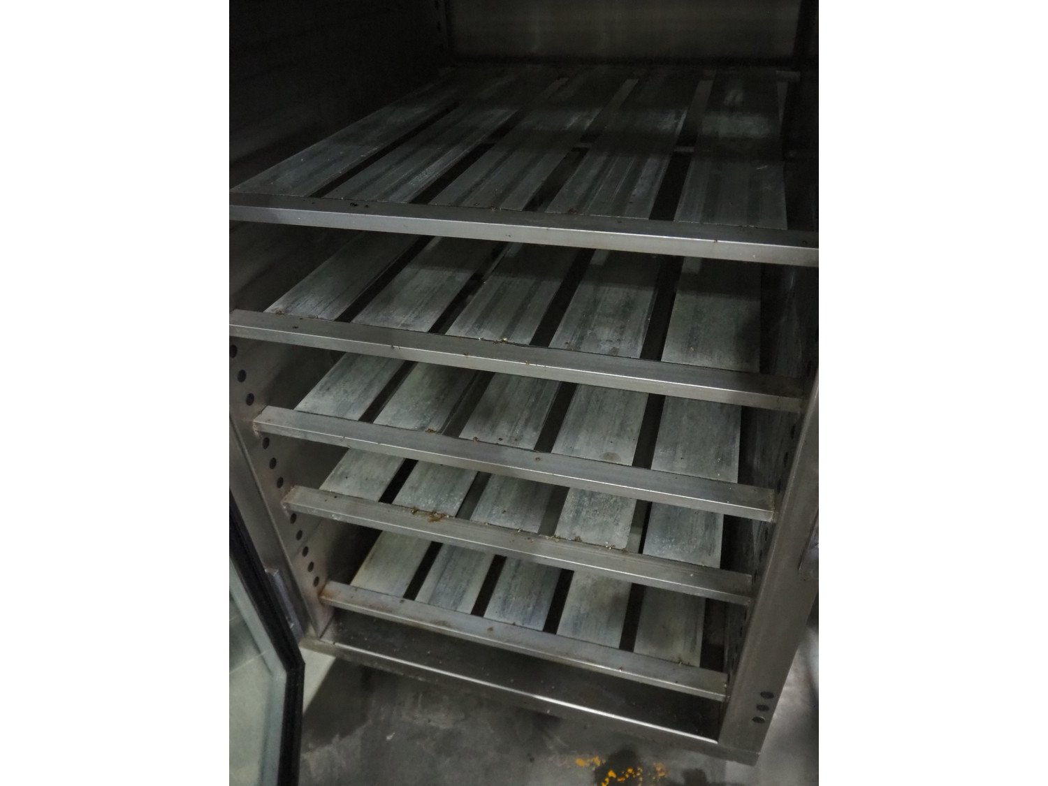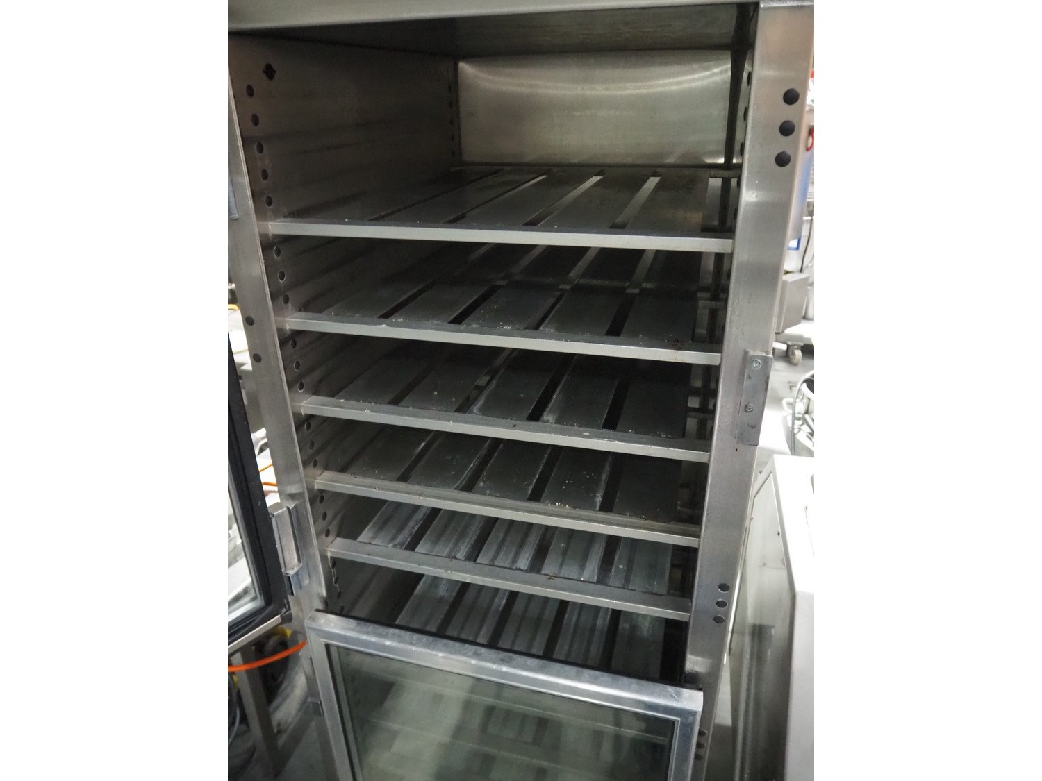 Thermodyne mobile slow cook and hold oven, model: 1900G, serial number: 14567, year of construction: 1/1/17, 230/440 V, 3 Ph, 50 Hz, 11 A, 10 floors, floor dimensions: 650 mm x 550 mm, total dimensions: 830 mm x 680 mm x 1960 mm.