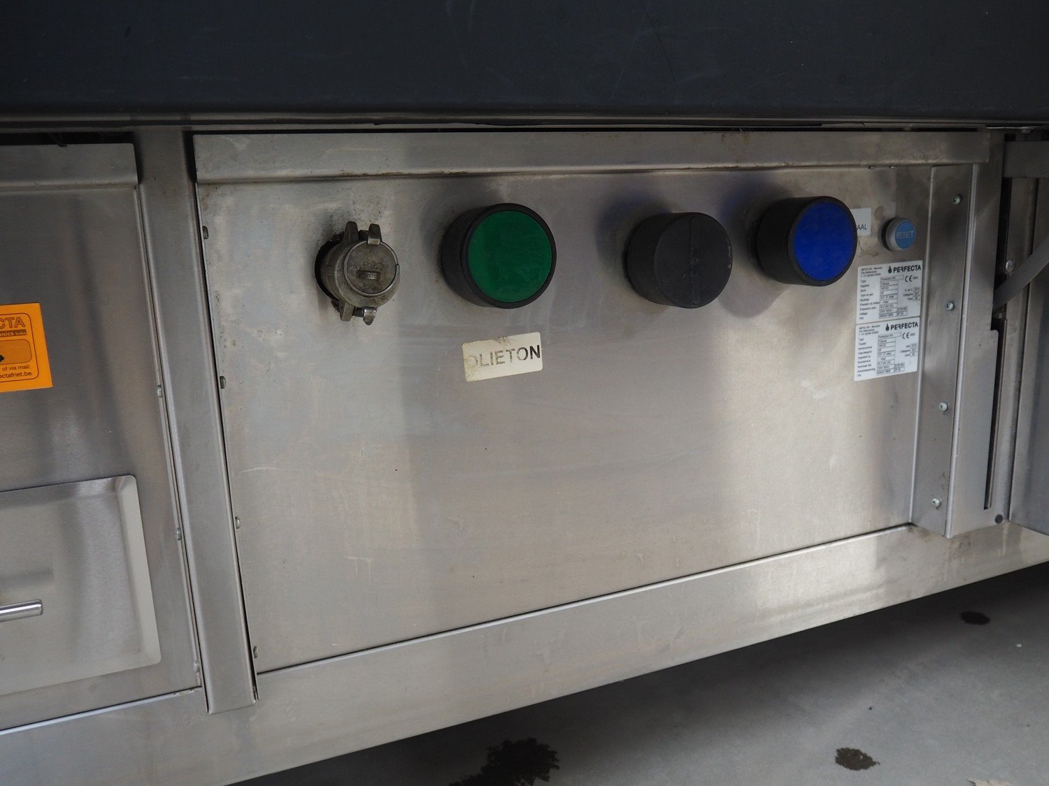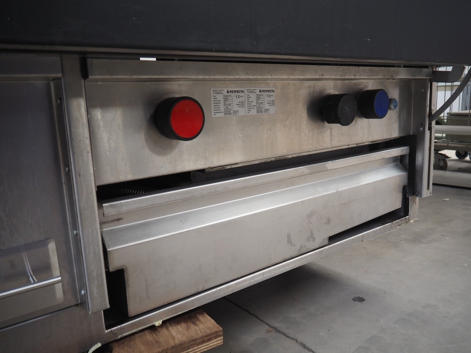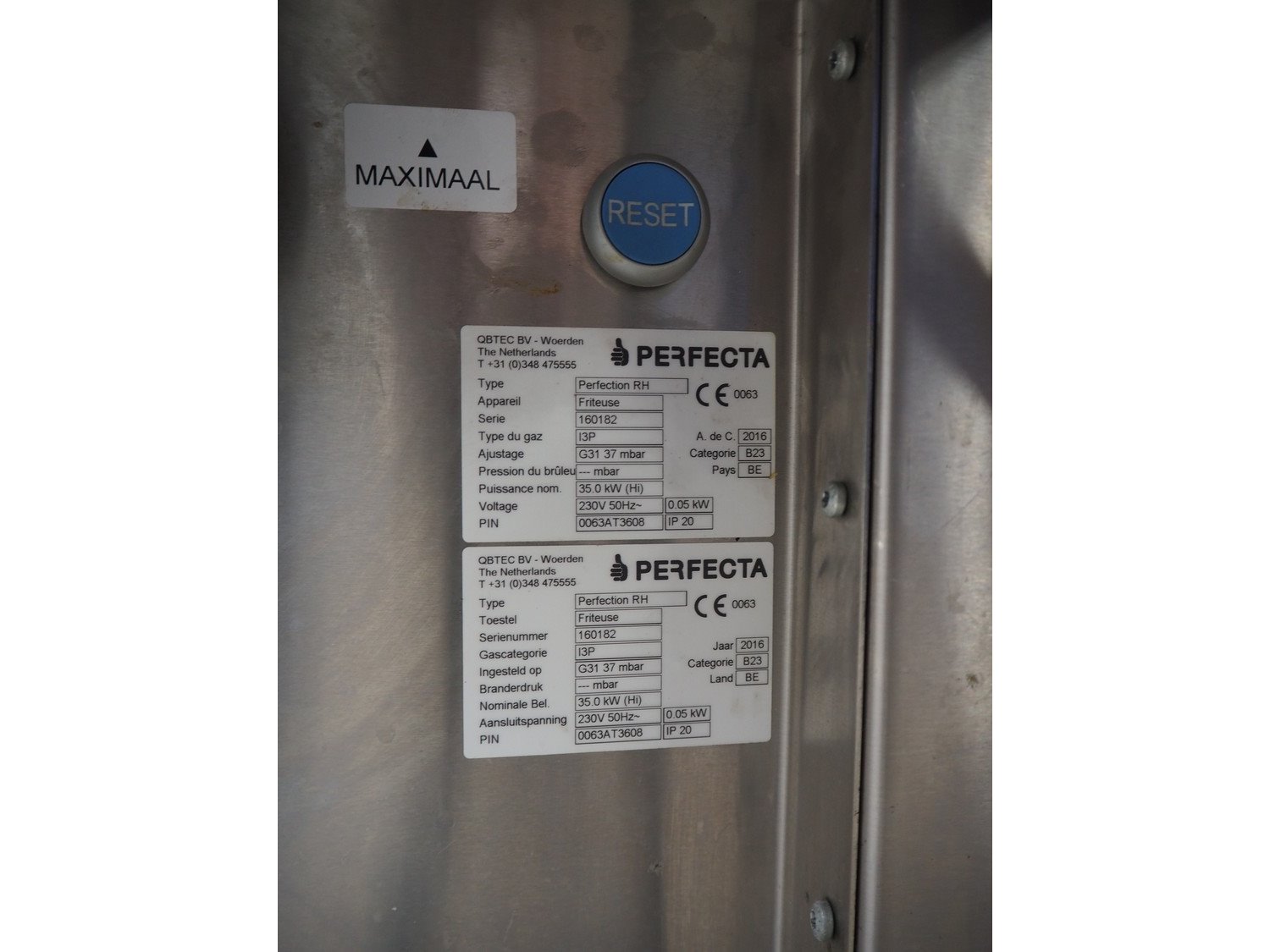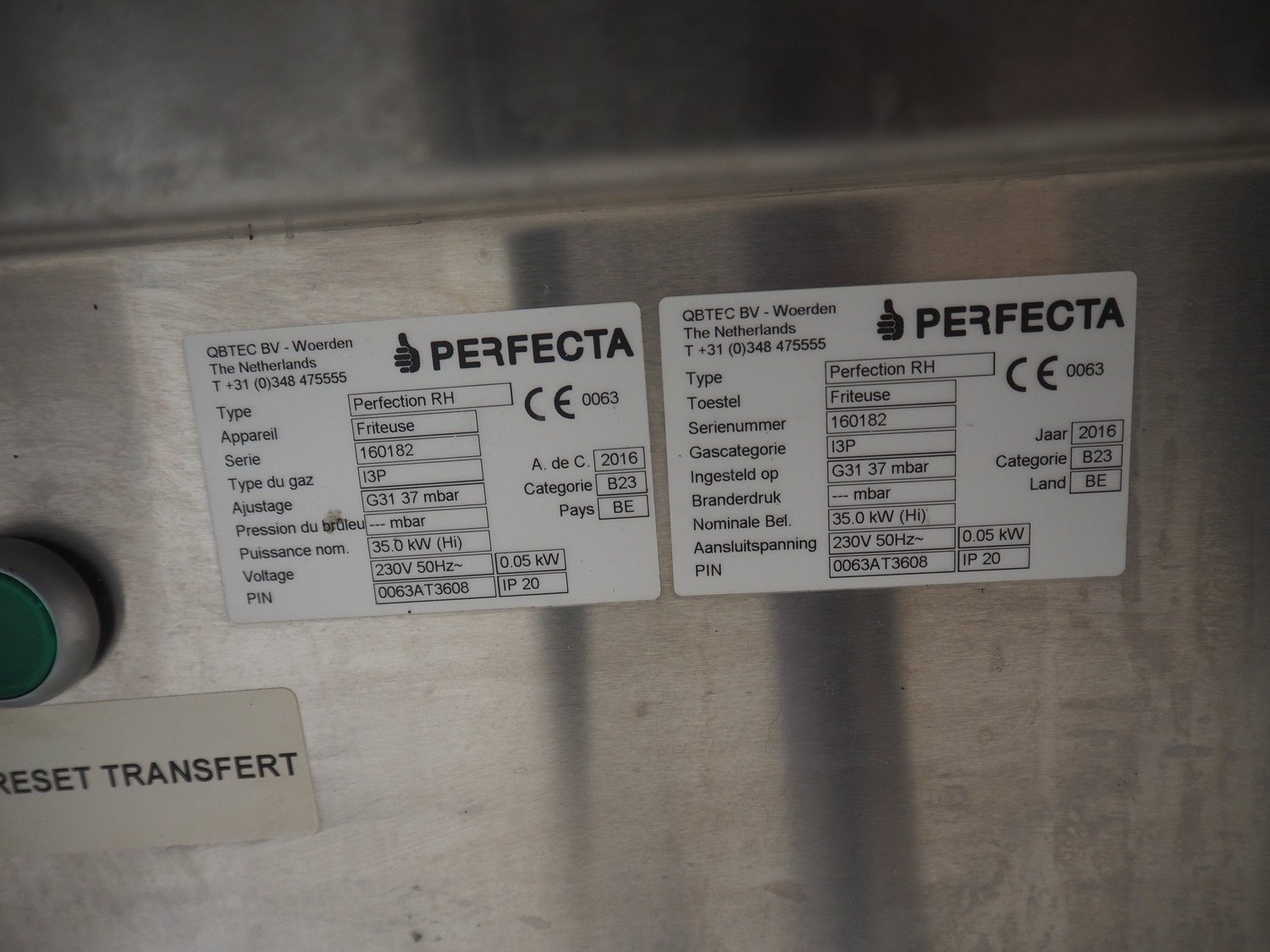 Perfecta fryer, type: Perfection RH, serial number: 160182, year of construction: 2016, 400 V, 105 kW, fuel: natural gas, dimensions: 5800 mm x 950 mm x 2150 mm, including Bartscher steamer, type: KT061, 400 V, 6.9 kW and 2 Amana microwaves, model: URS511MB.