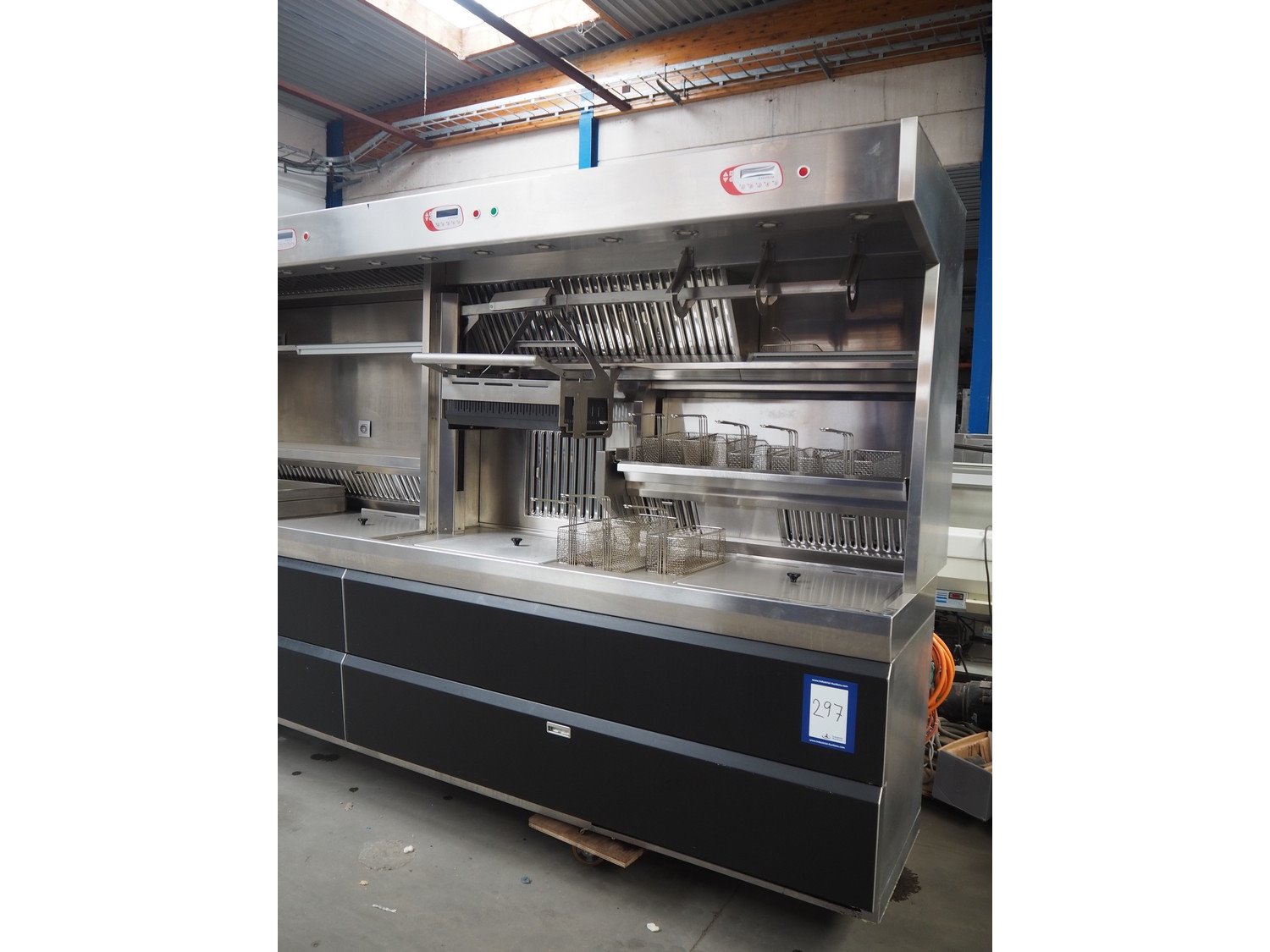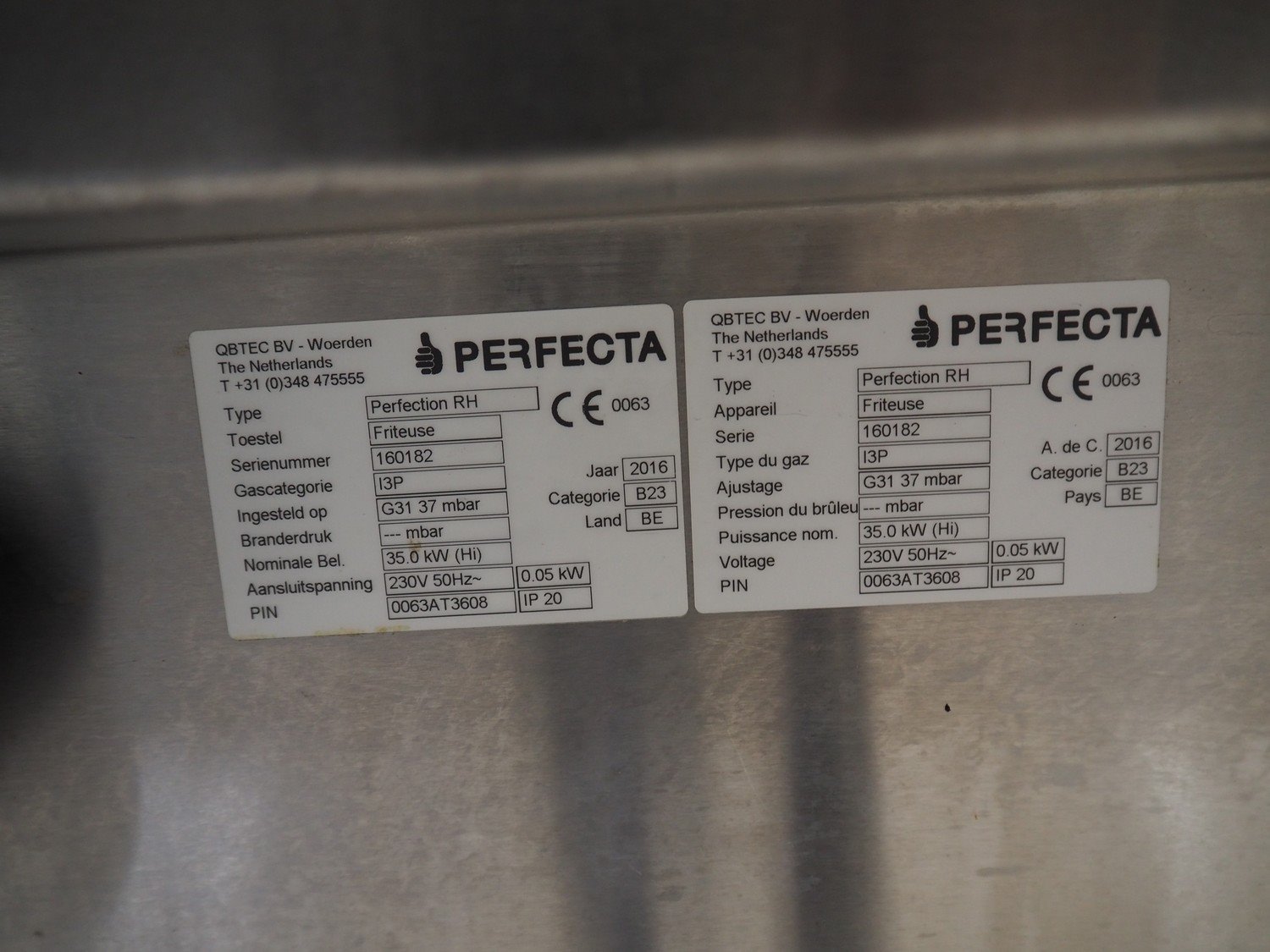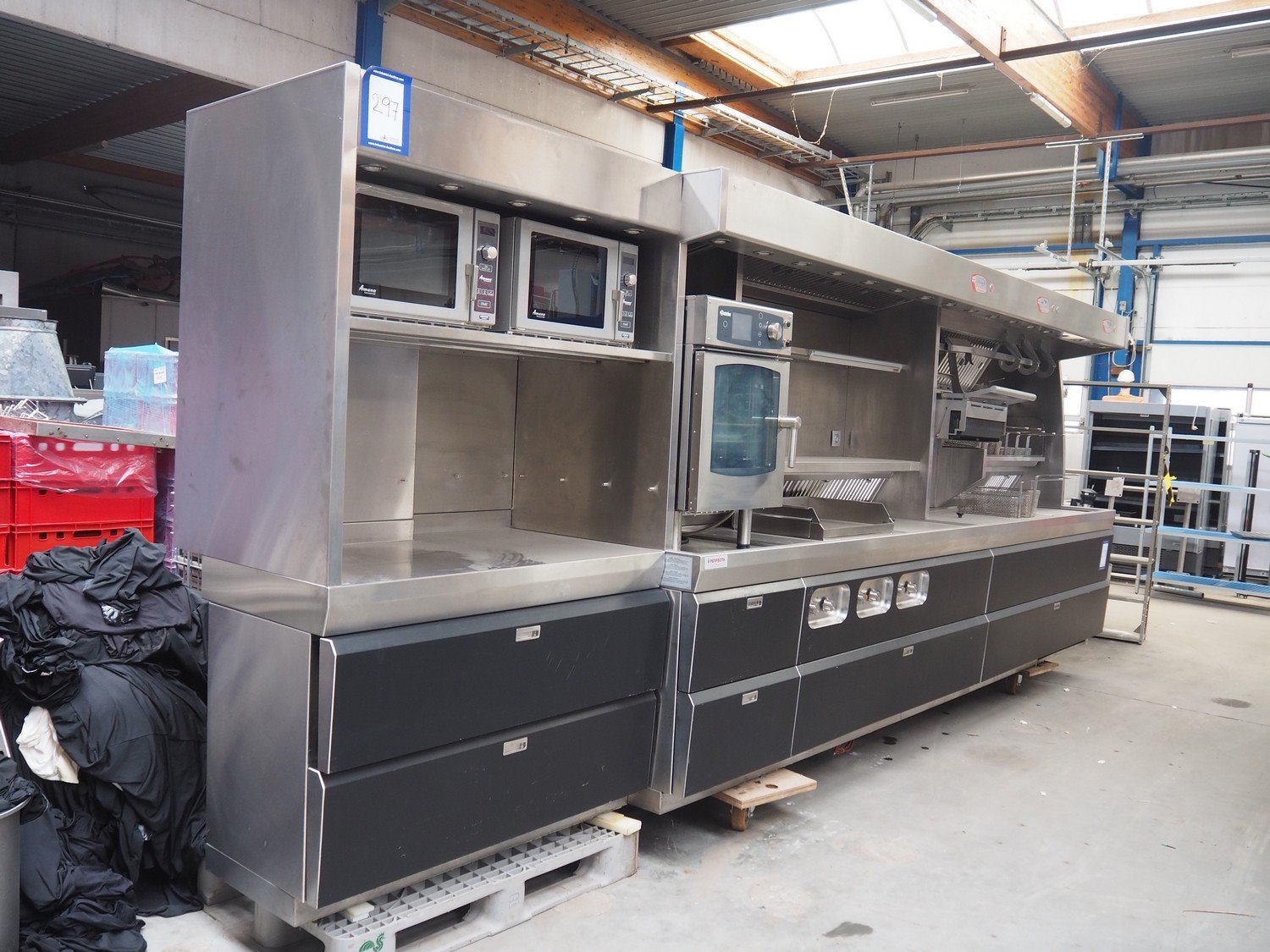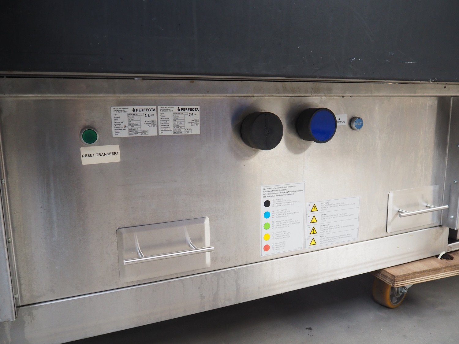 Perfecta fryer, type: Perfection RH, serial number: 160182, year of construction: 2016, 400 V, 105 kW, fuel: natural gas, dimensions: 5800 mm x 950 mm x 2150 mm, including Bartscher steamer, type: KT061, 400 V, 6.9 kW and 2 Amana microwaves, model: URS511MB.