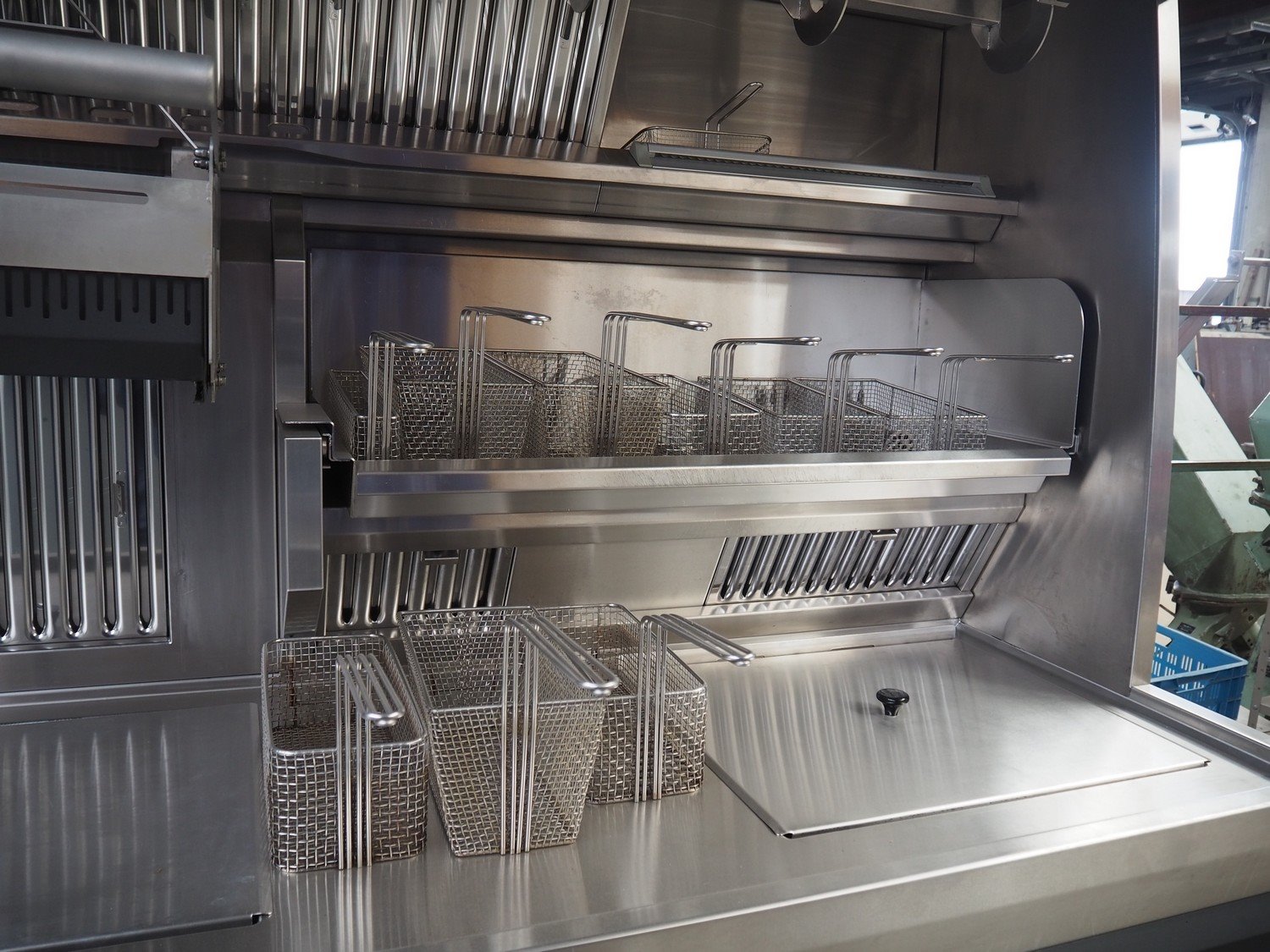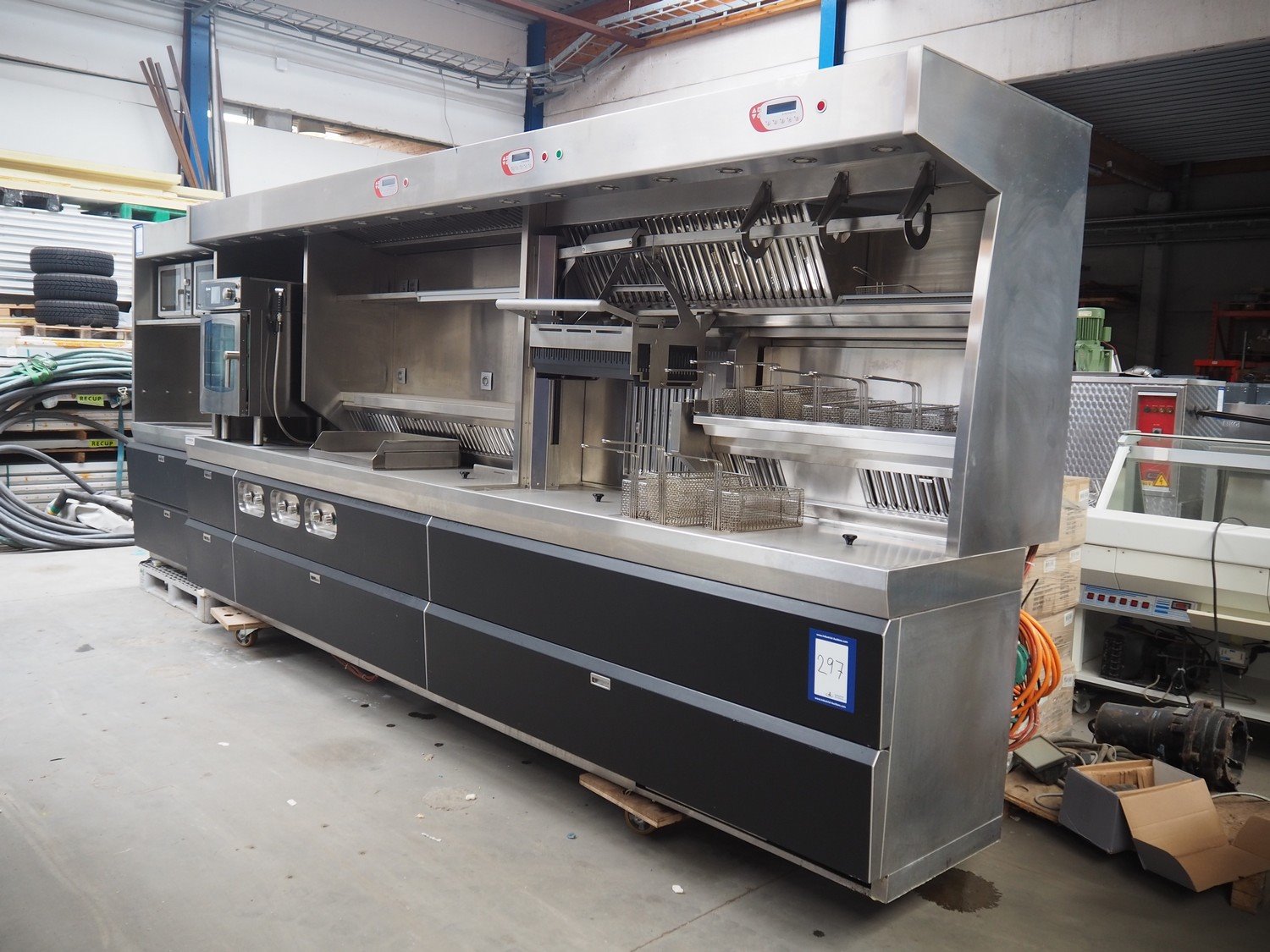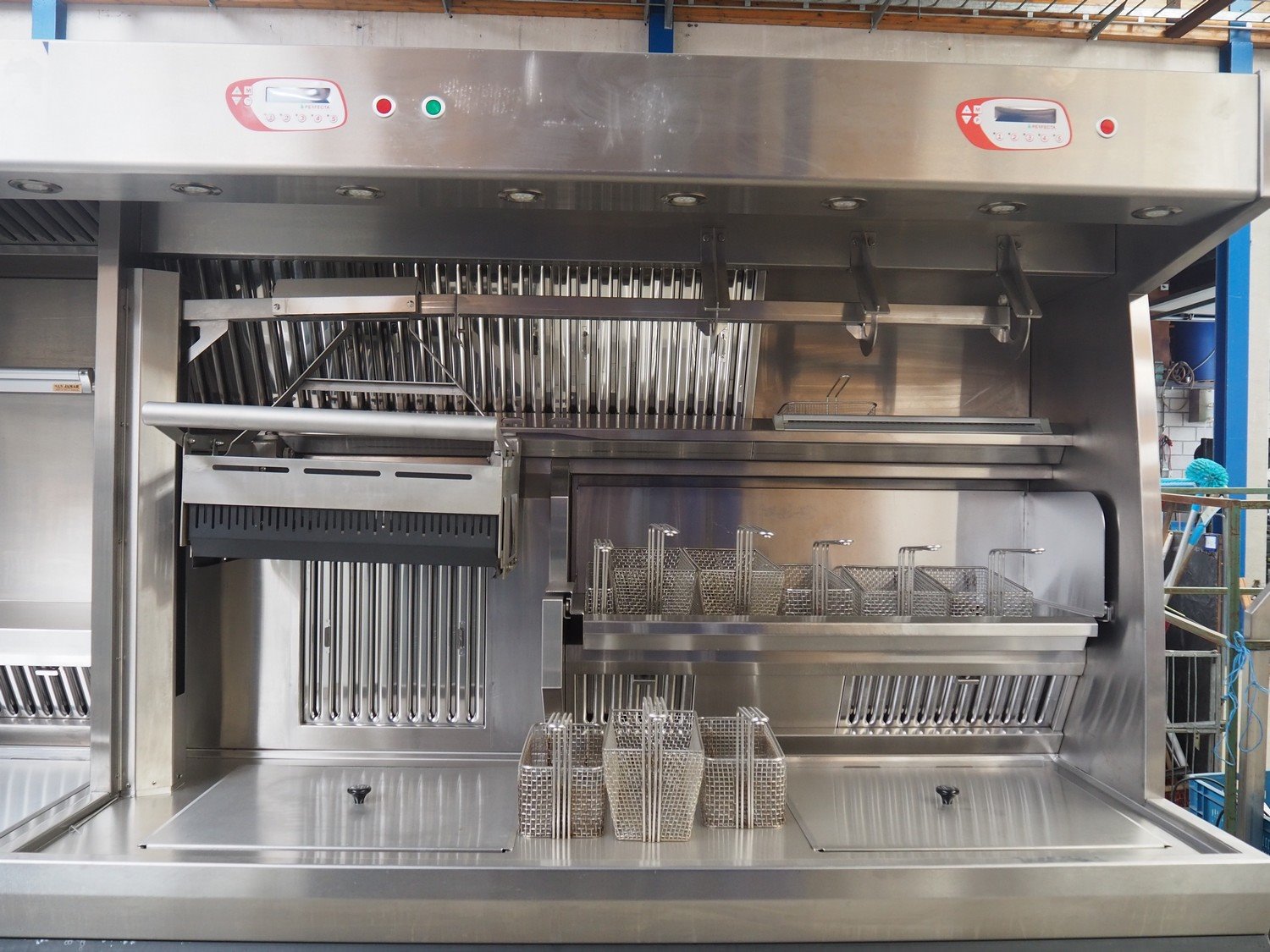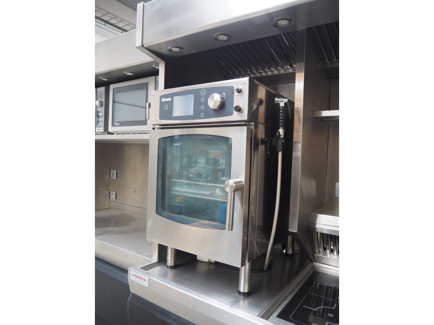 Perfecta fryer, type: Perfection RH, serial number: 160182, year of construction: 2016, 400 V, 105 kW, fuel: natural gas, dimensions: 5800 mm x 950 mm x 2150 mm, including Bartscher steamer, type: KT061, 400 V, 6.9 kW and 2 Amana microwaves, model: URS511MB.
