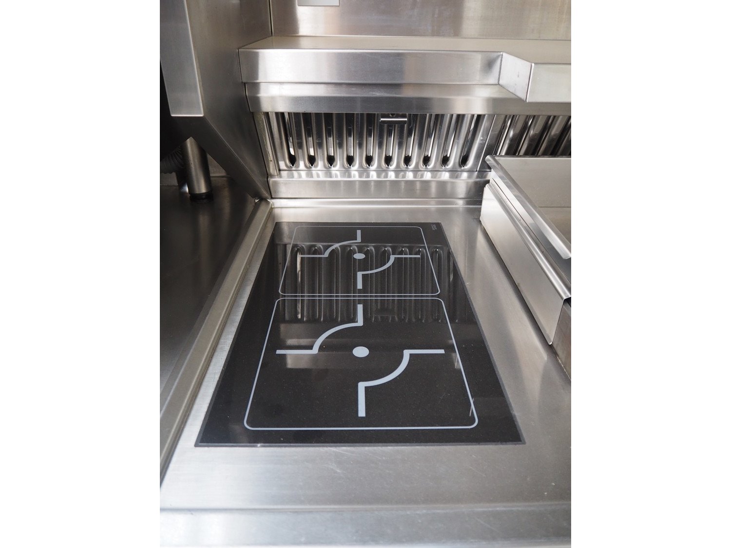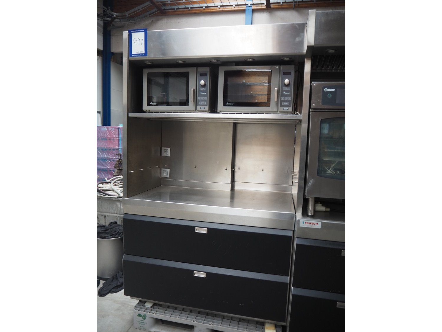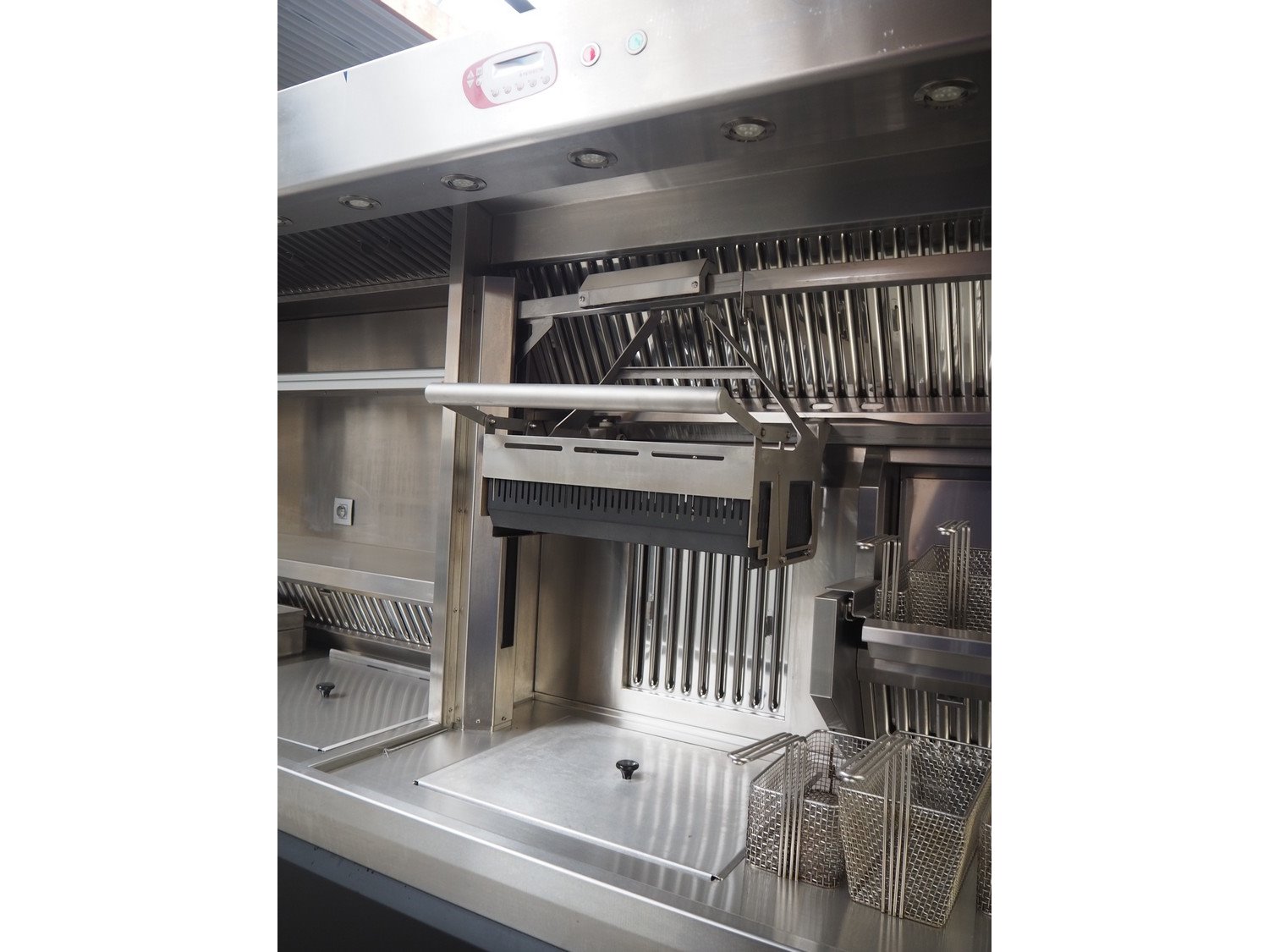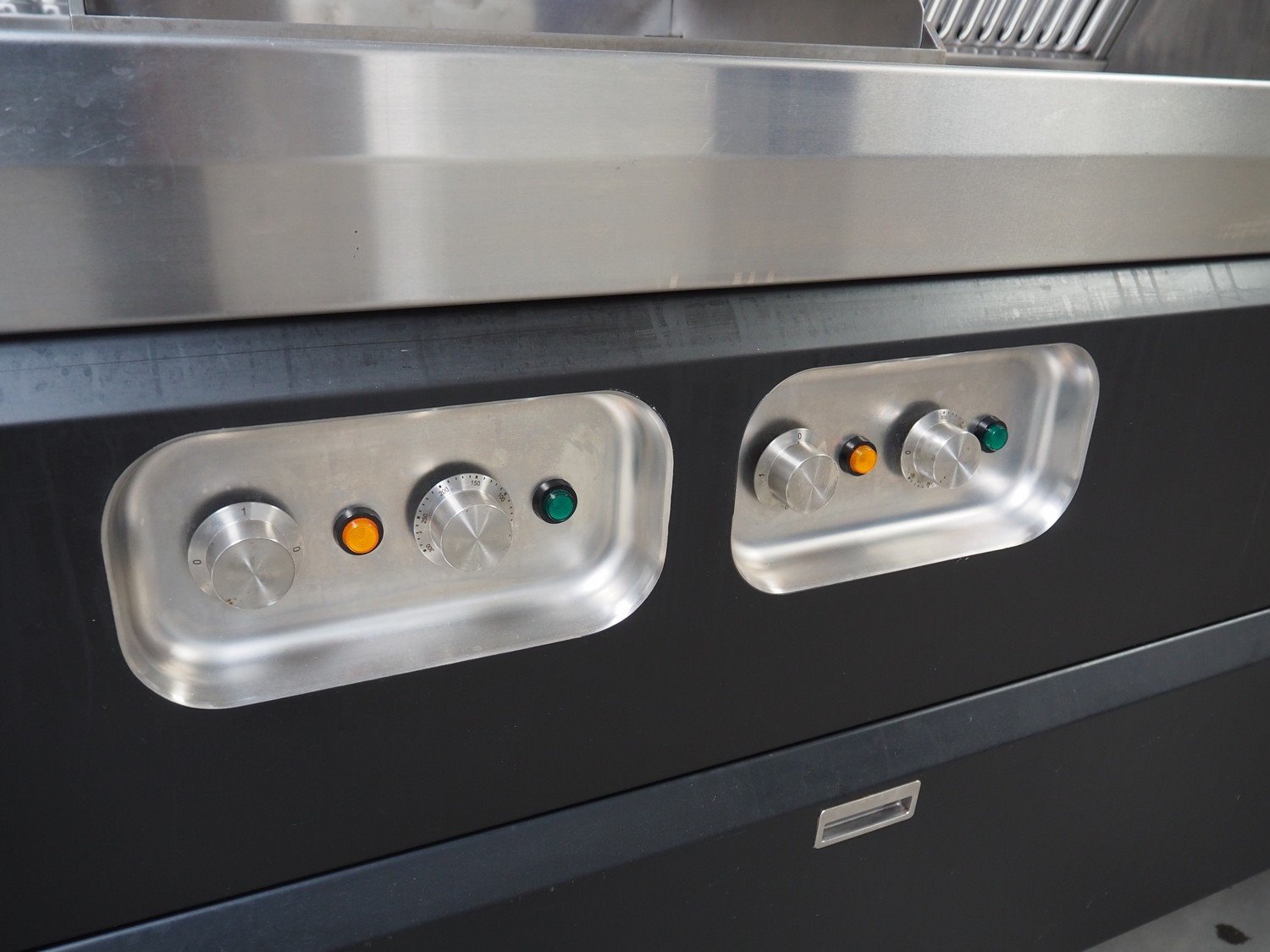 Perfecta fryer, type: Perfection RH, serial number: 160182, year of construction: 2016, 400 V, 105 kW, fuel: natural gas, dimensions: 5800 mm x 950 mm x 2150 mm, including Bartscher steamer, type: KT061, 400 V, 6.9 kW and 2 Amana microwaves, model: URS511MB.