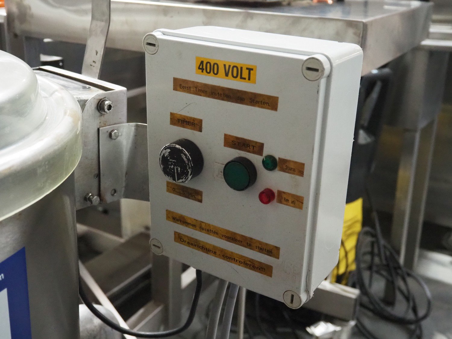 Romeo Agustoni salad spinner, model: GT90, number: 0942, 220-380 V, 50 Hz, drum diameter: 450 mm, total dimensions: 650 mm x 600 mm x 1000 mm.