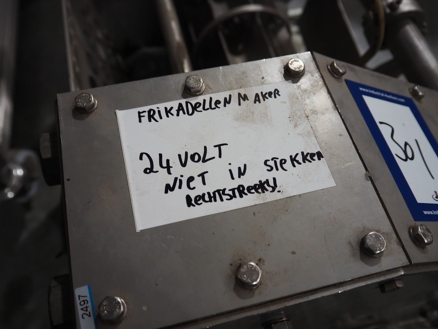 S/s frikadel machine, 24 V, working width: 300 mm, total dimensions: 650 mm x 500 mm x 450 mm. Technical condition unknown.