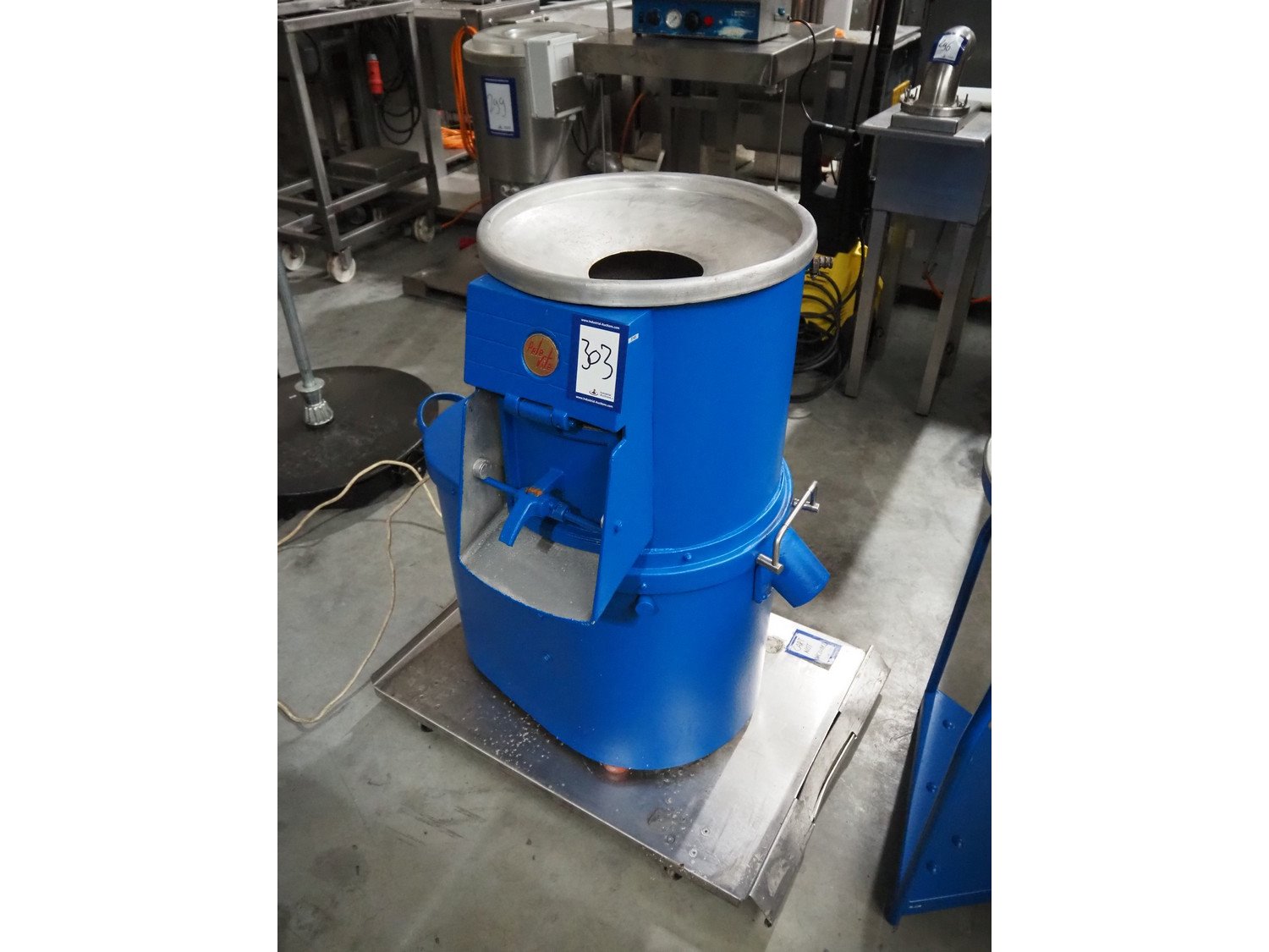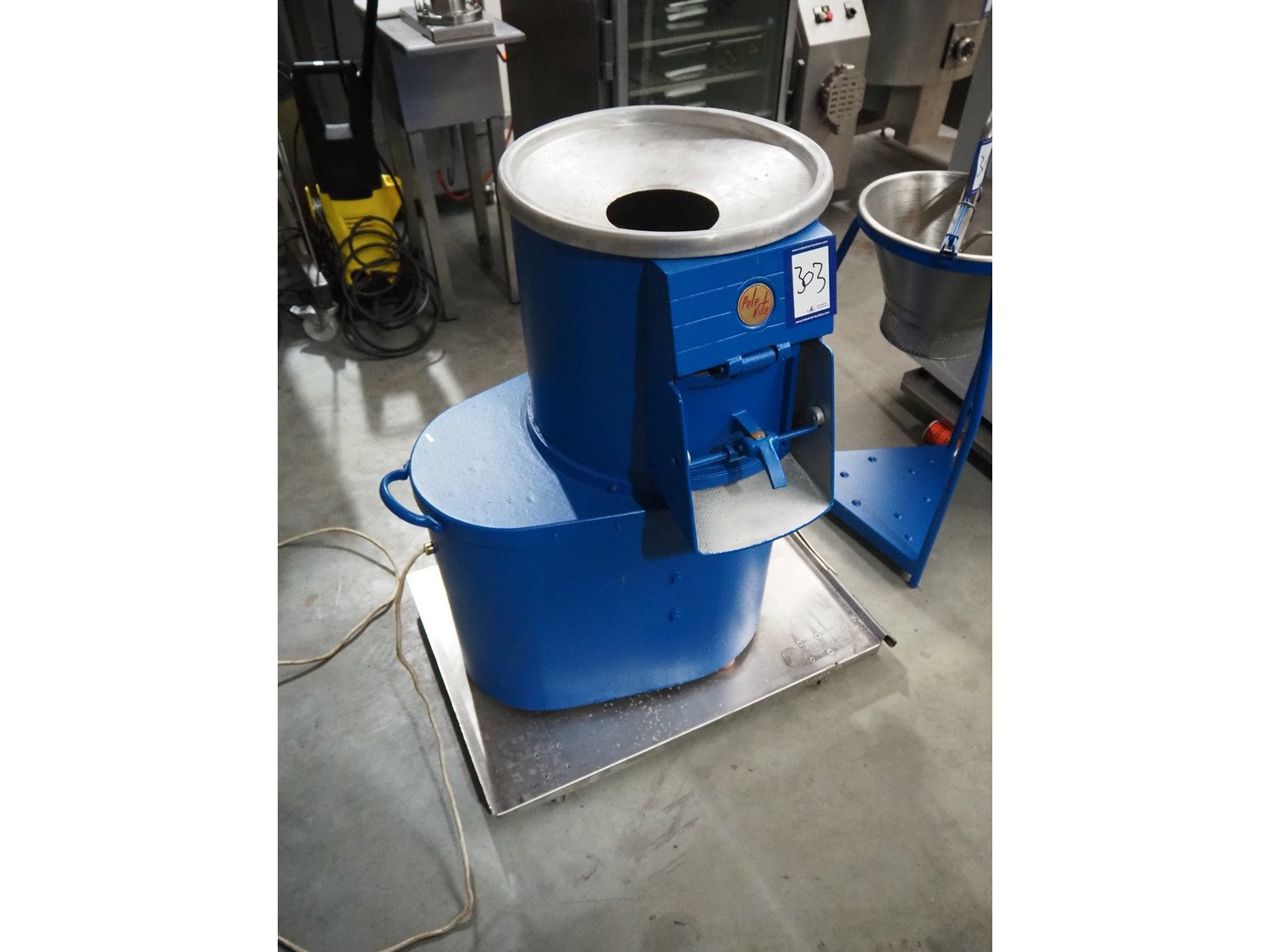 Pele Vite peeler, inside dimensions: Ø 380 mm x 280 mm, total dimensions: 800 mm x 600 mm x 920 mm.