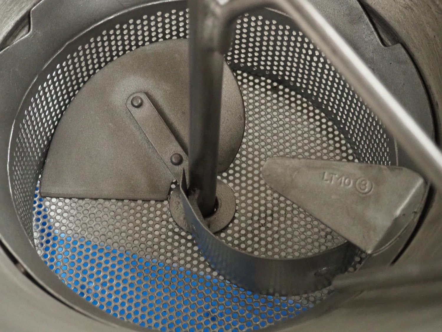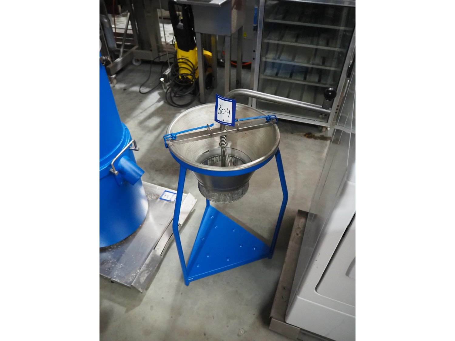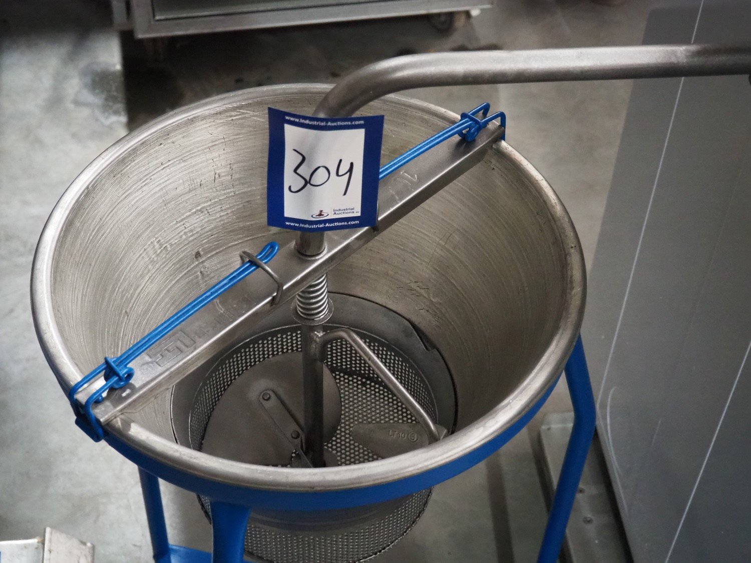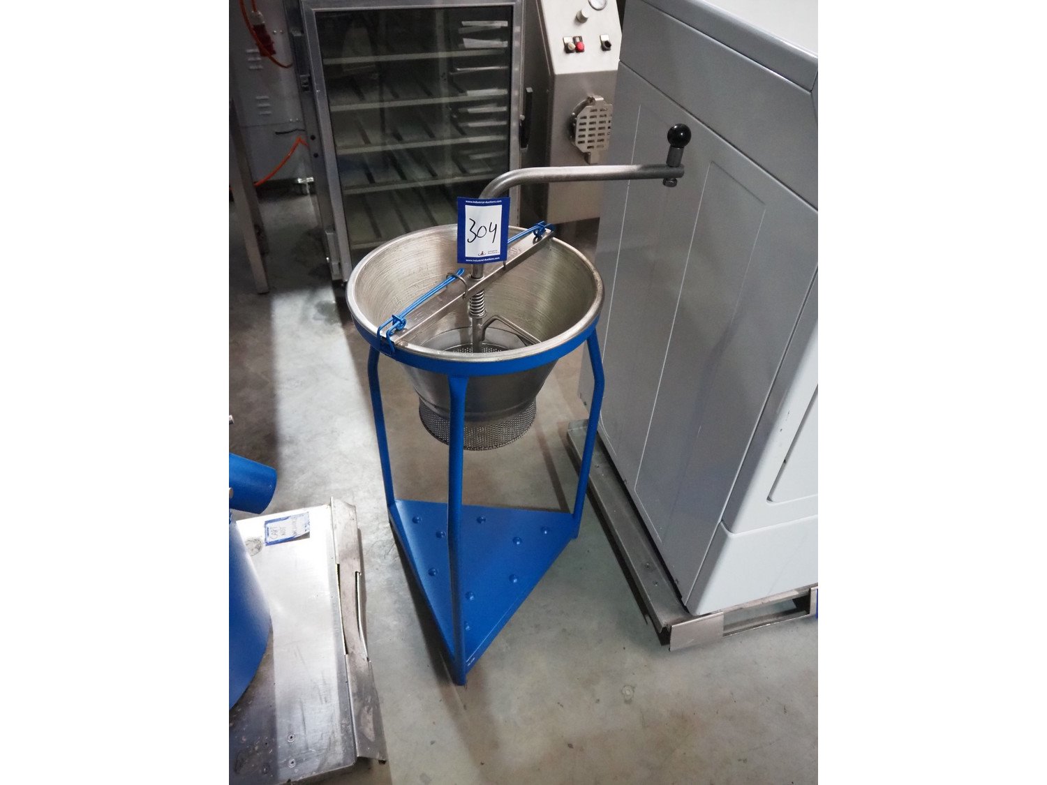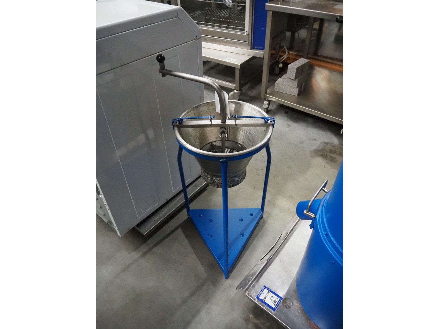 S/s manual pulper for soft products, perforations: Ø 3 mm, total dimensions: 500 mm x 500 mm x 1000 mm.