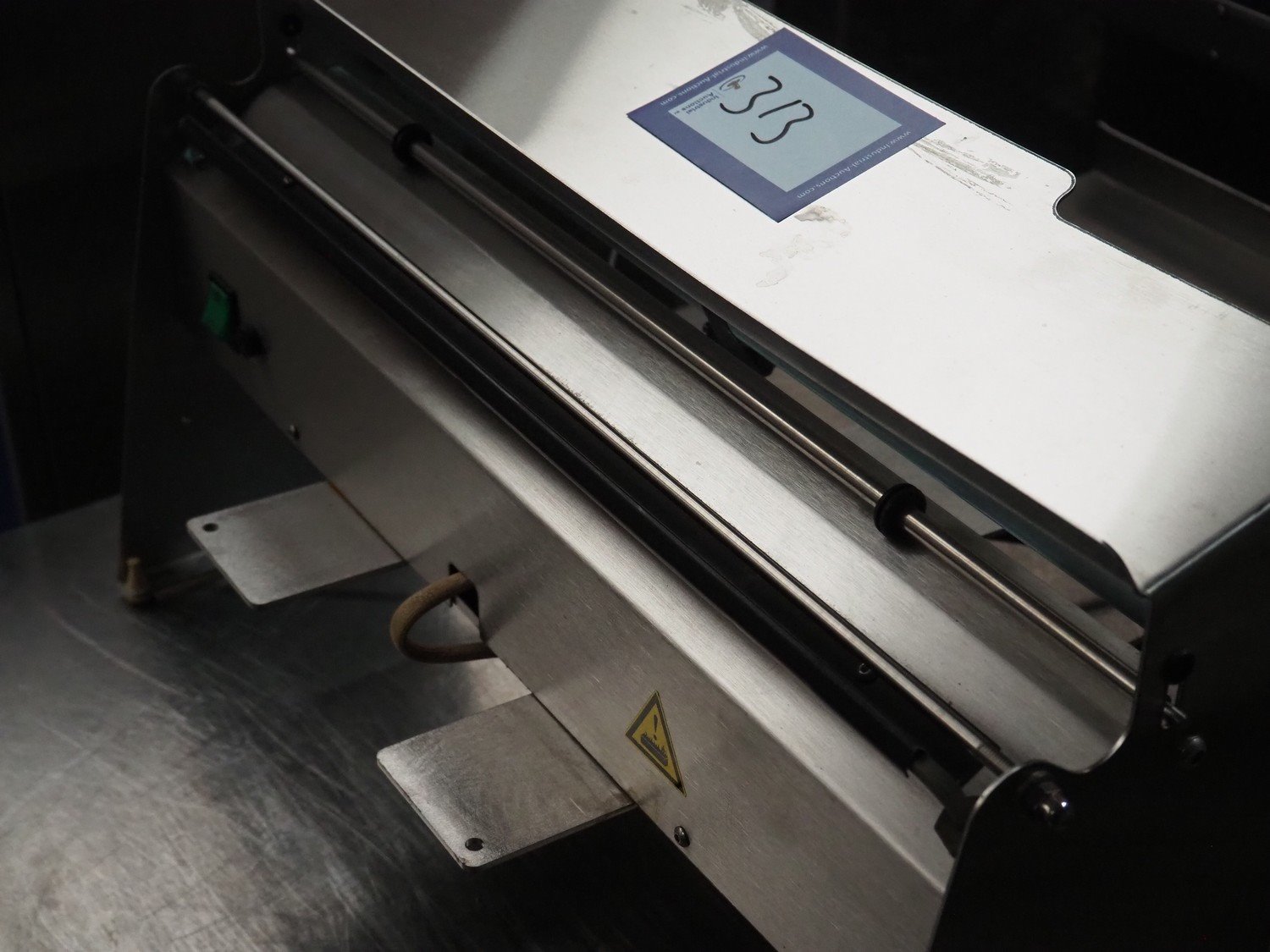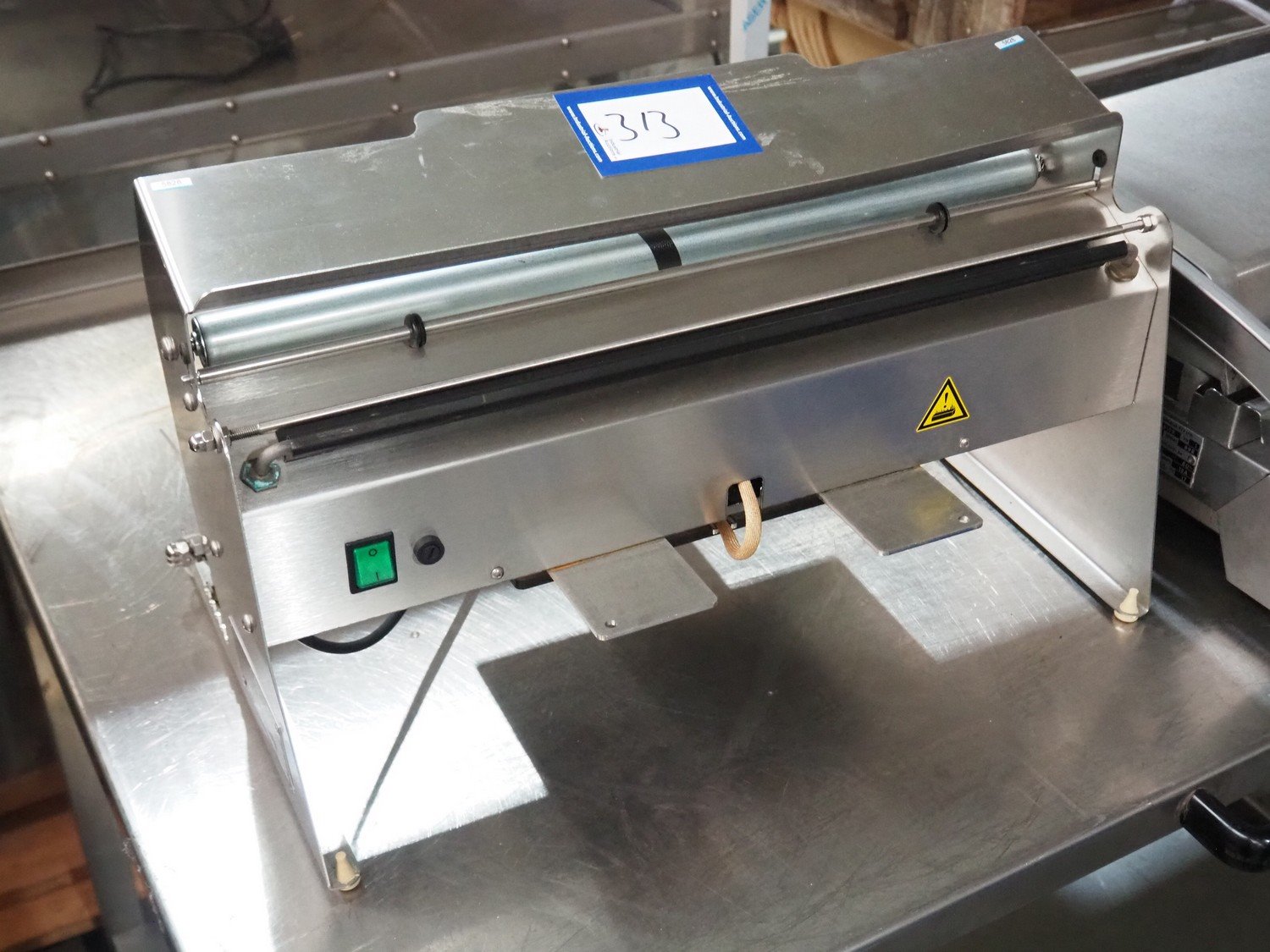 Ora seal machine, type: 2031, serial number: 1 323, year of construction: 2008, 230 V, 50/60 Hz, 1.5 A, working width: 500 mm, total dimensions: 600 mm x 320 mm x 350 mm.