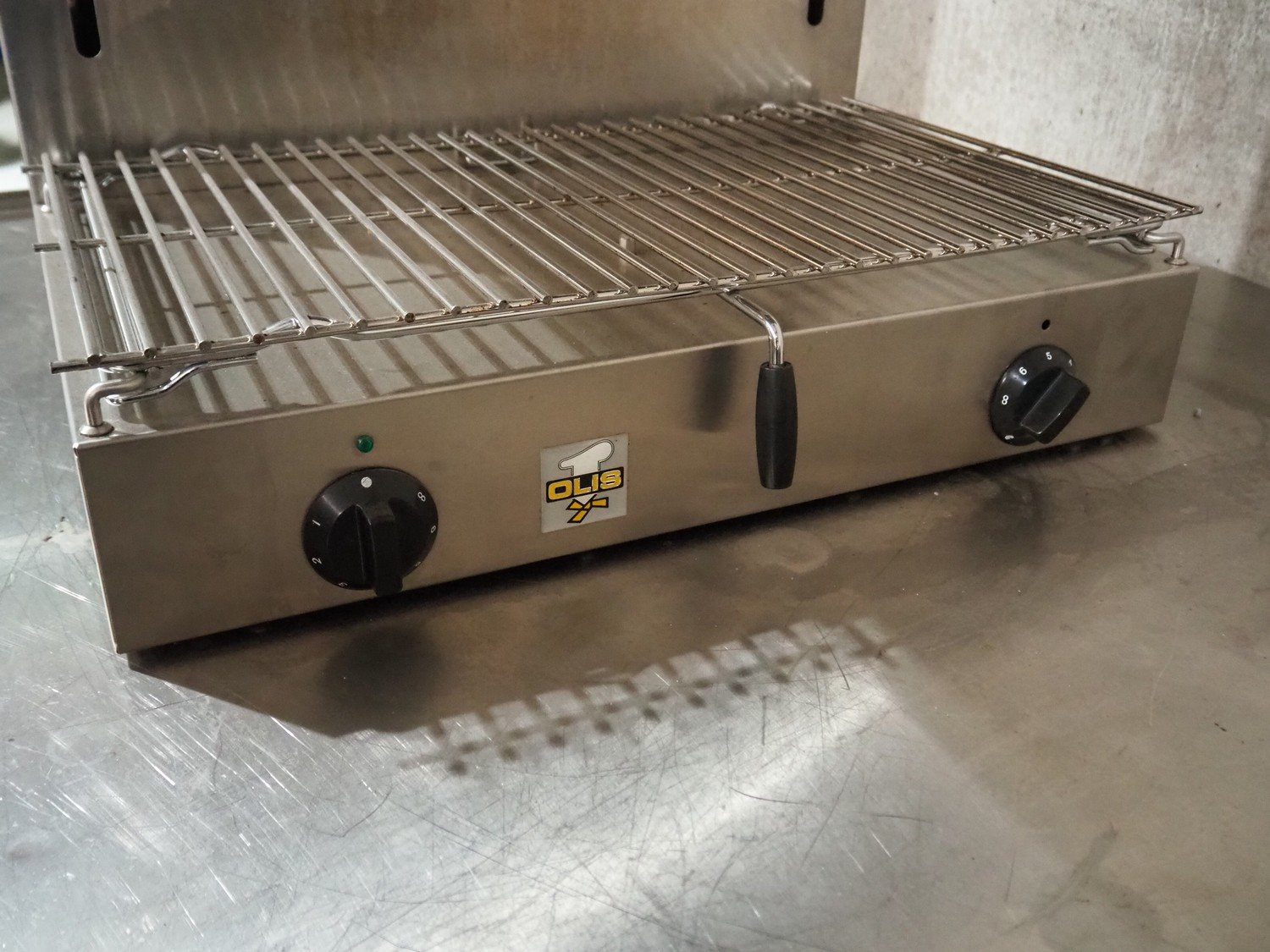Olis grill, model: SE60/4, number: 80400042, 400 V, 2 Ph, 50-60 Hz, 4000 W, grill plate dimensions: 550 mm x 330 mm, total dimensions: 600 mm x 550 mm x 500 mm.