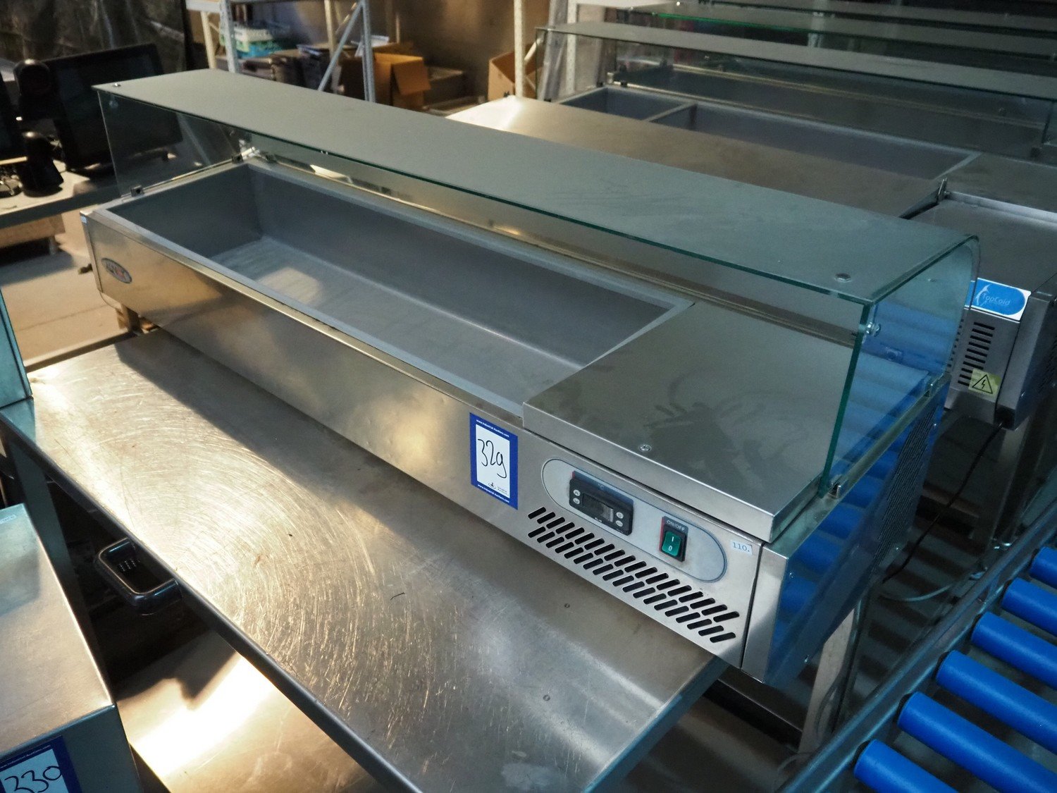 Alinox refrigerated showcase, dimensions: 1430 mm x 390 mm x 450 mm.