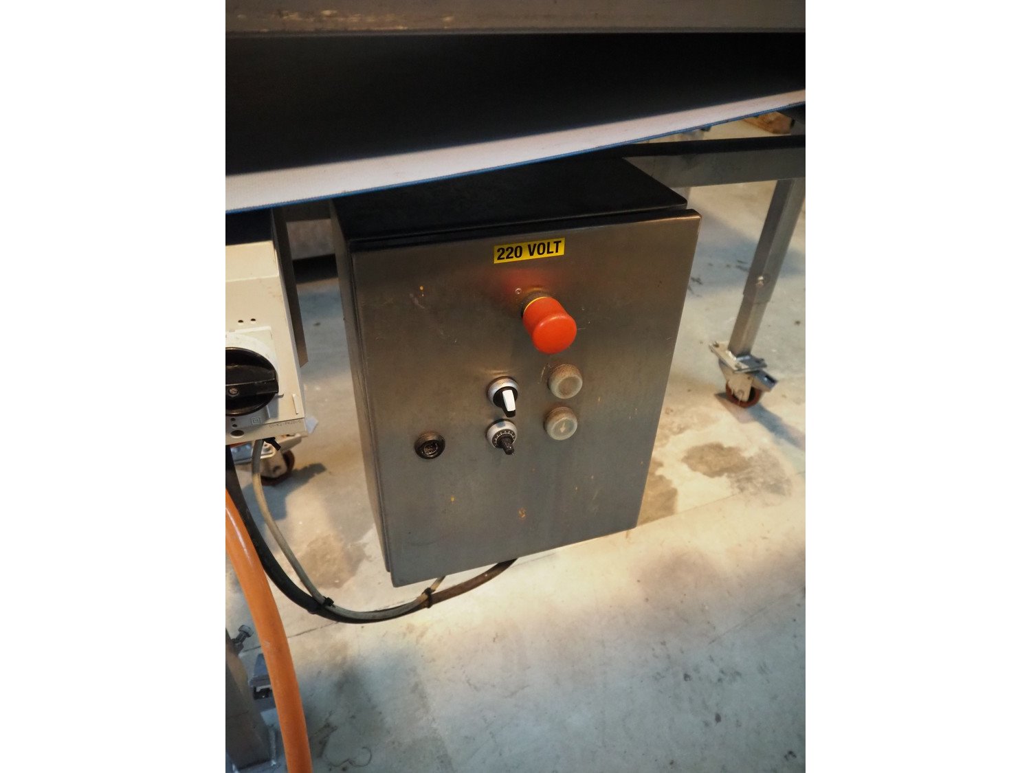 Mobile transport belt, s/s frame, plastic belt, belt width: 480 mm, total dimensions: 2000 mm x 650 mm x 850 mm.