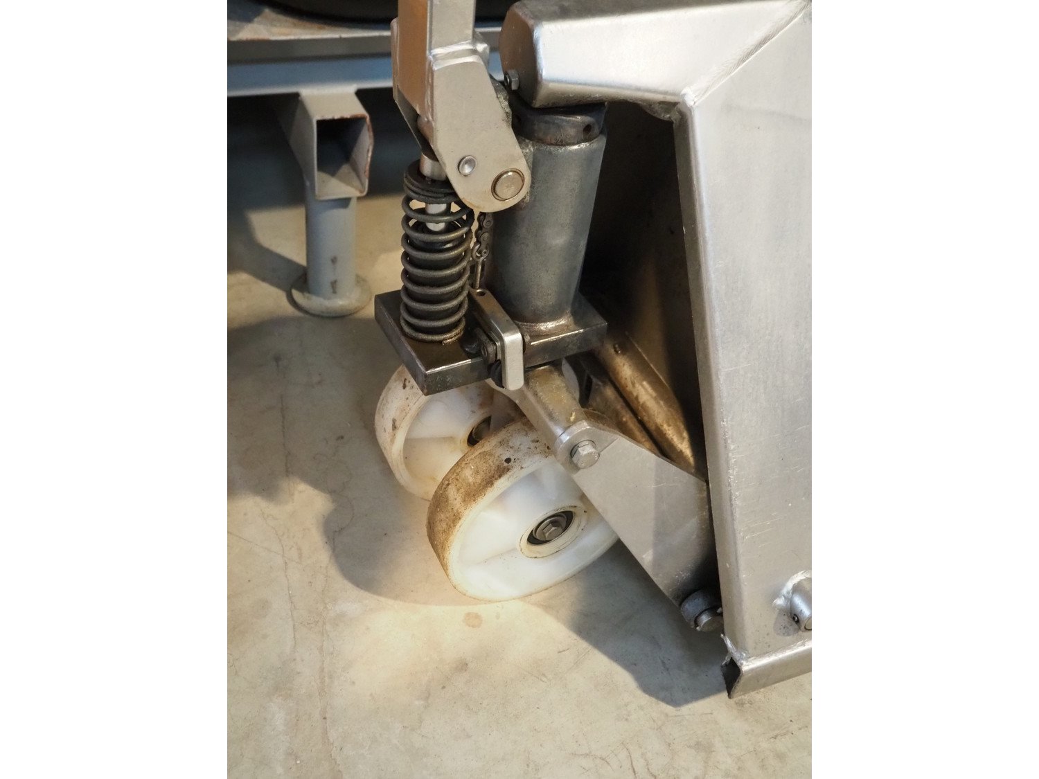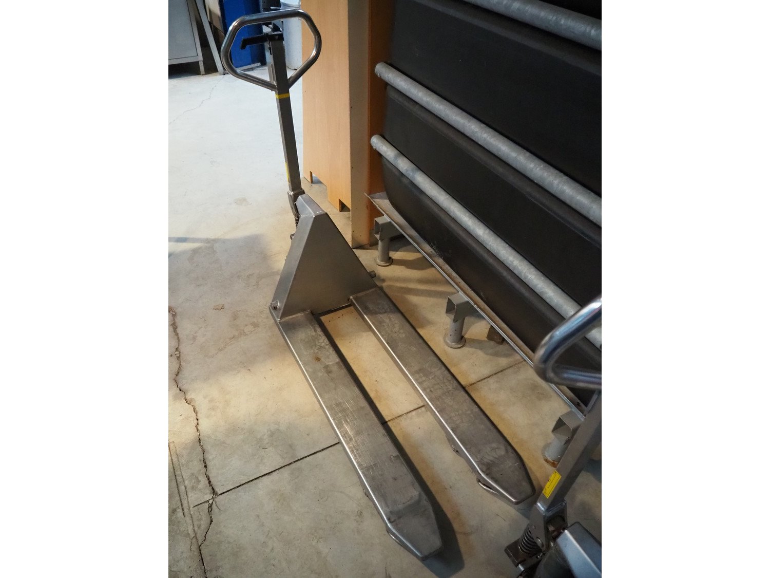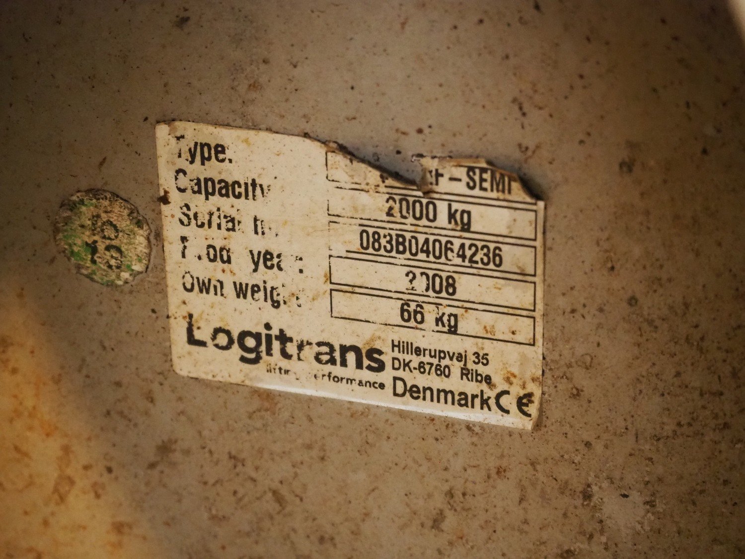 Logitrans s/s pallet lifter, serial number: 083B04064236, year of construction: 2008, capacity: 2000 kg, fork length: 1140 mm, total dimensions: 1600 mm x 520 mm x 1220 mm.