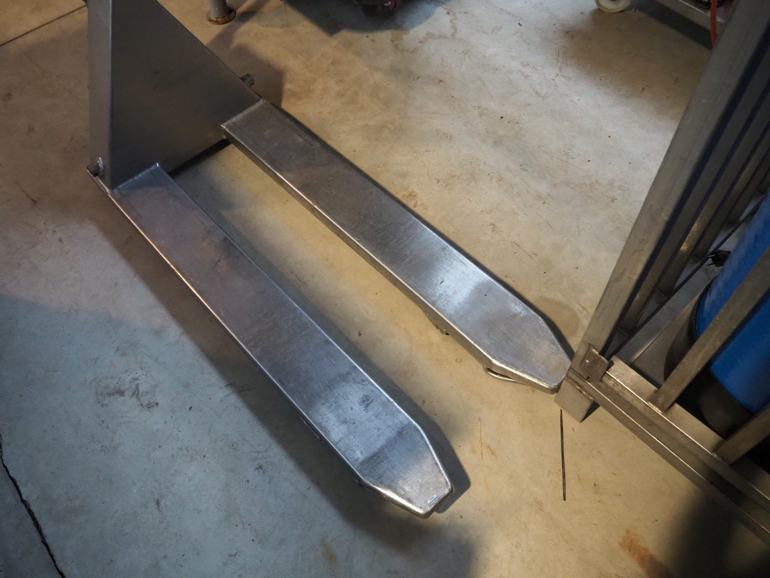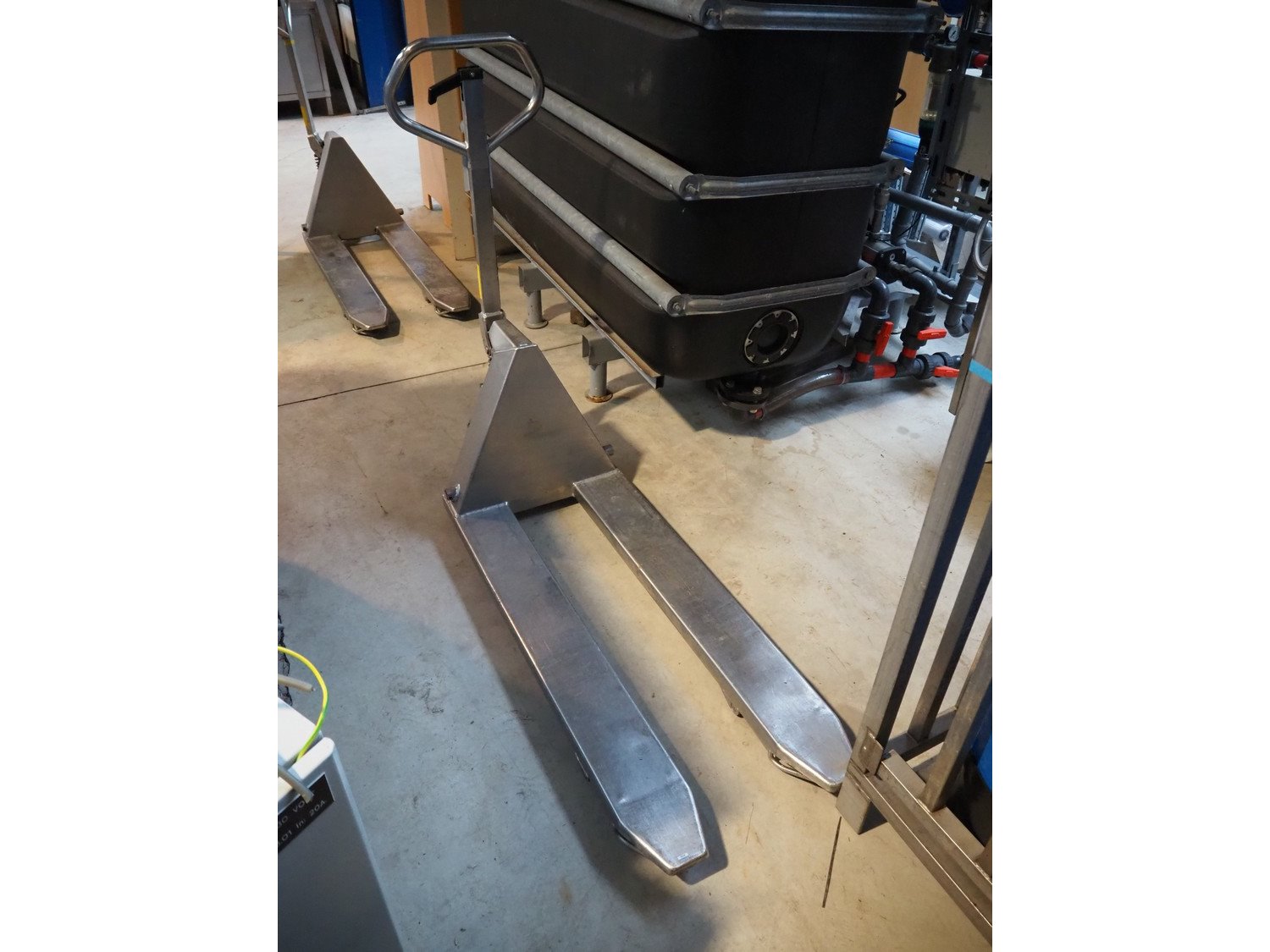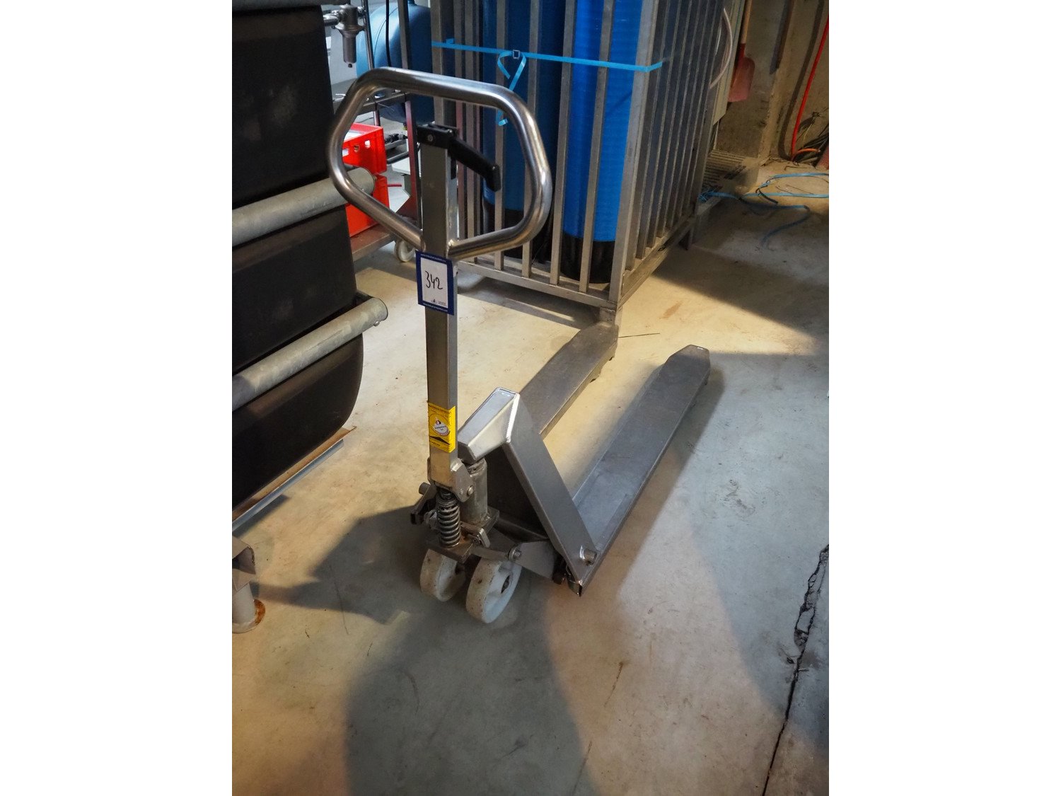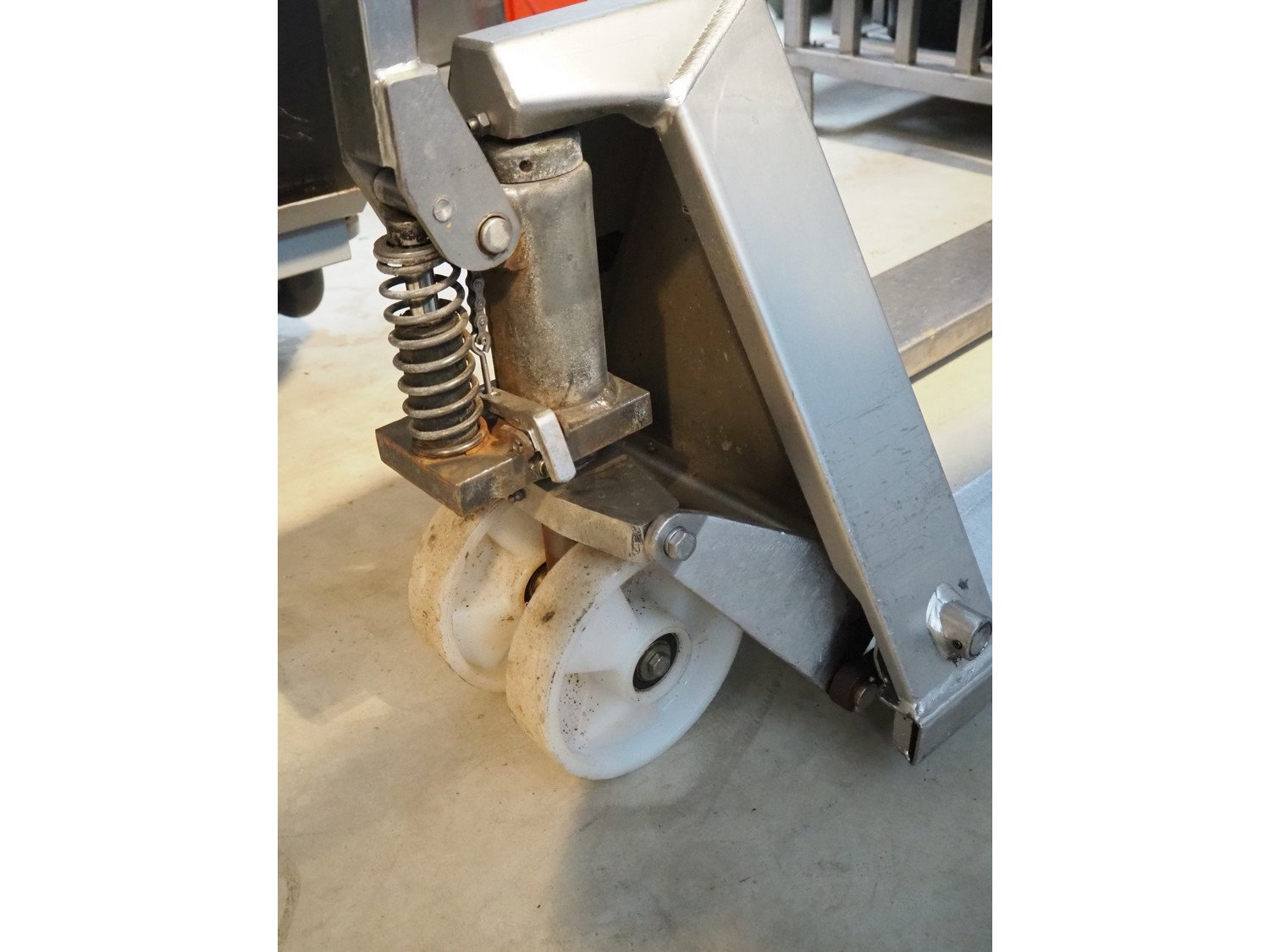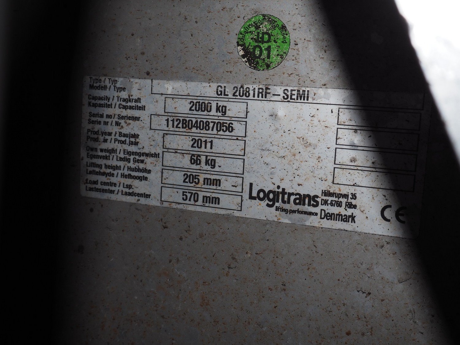 Logitrans s/s pallet lifter, type: GL 2081RF-SEMI, serial number: 112B04087057, year of construction: 2011, capacity: 2000 kg, fork length: 1140 mm, total dimensions: 1600 mm x 520 mm x 1220 mm.