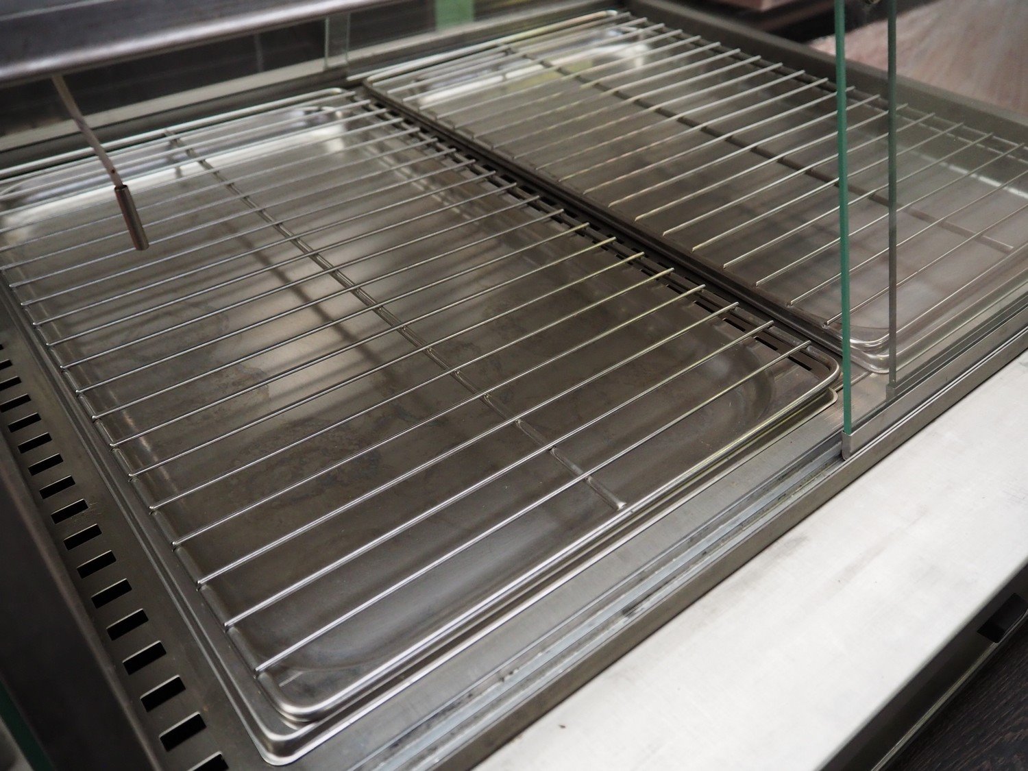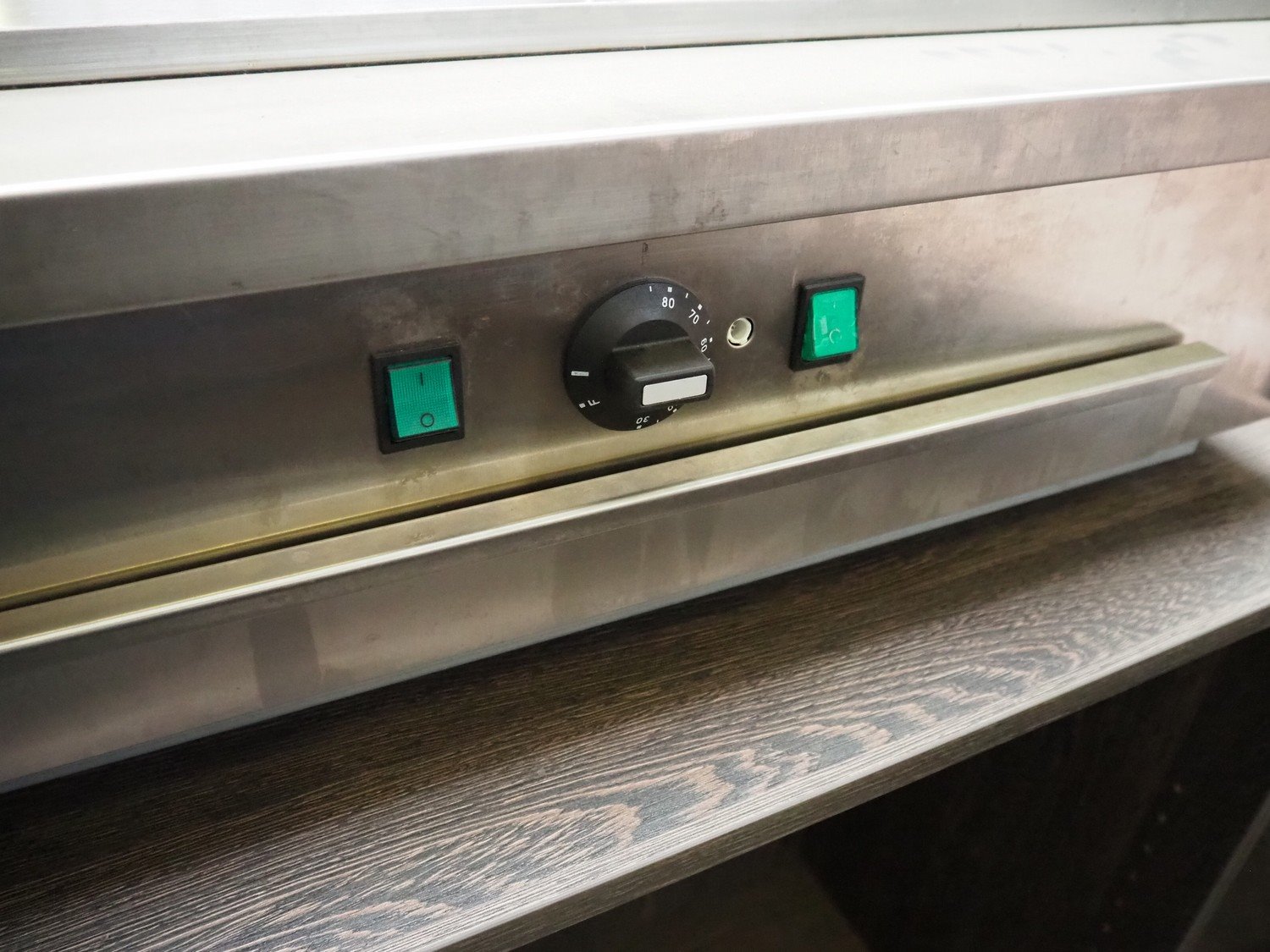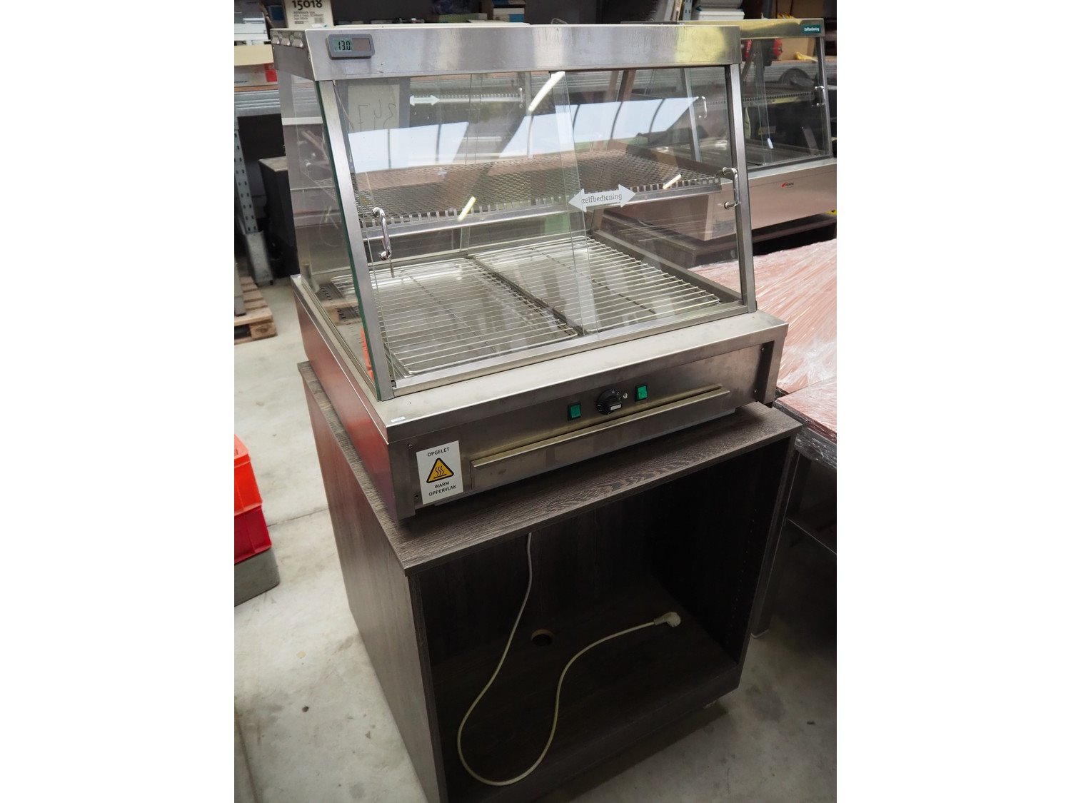 Alpina heated showcase, type: ADA WG 20-11, number: 144, year of construction: 2017, 230 V, 50 Hz, 1600 W, 50 kg, total dimensions: 800 mm x 750 mm x 1760 mm.