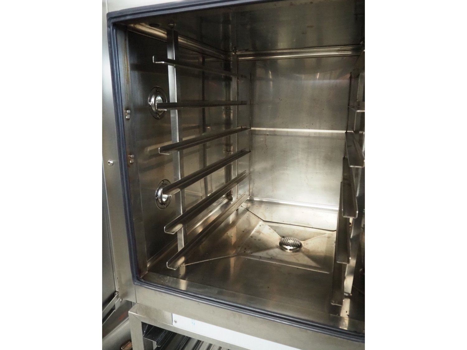 Leventi combi steamer with 6 floors, floor dimensions: 400 mm x 600 mm, total dimensions: 960 mm x 900 mm x 1520 mm.