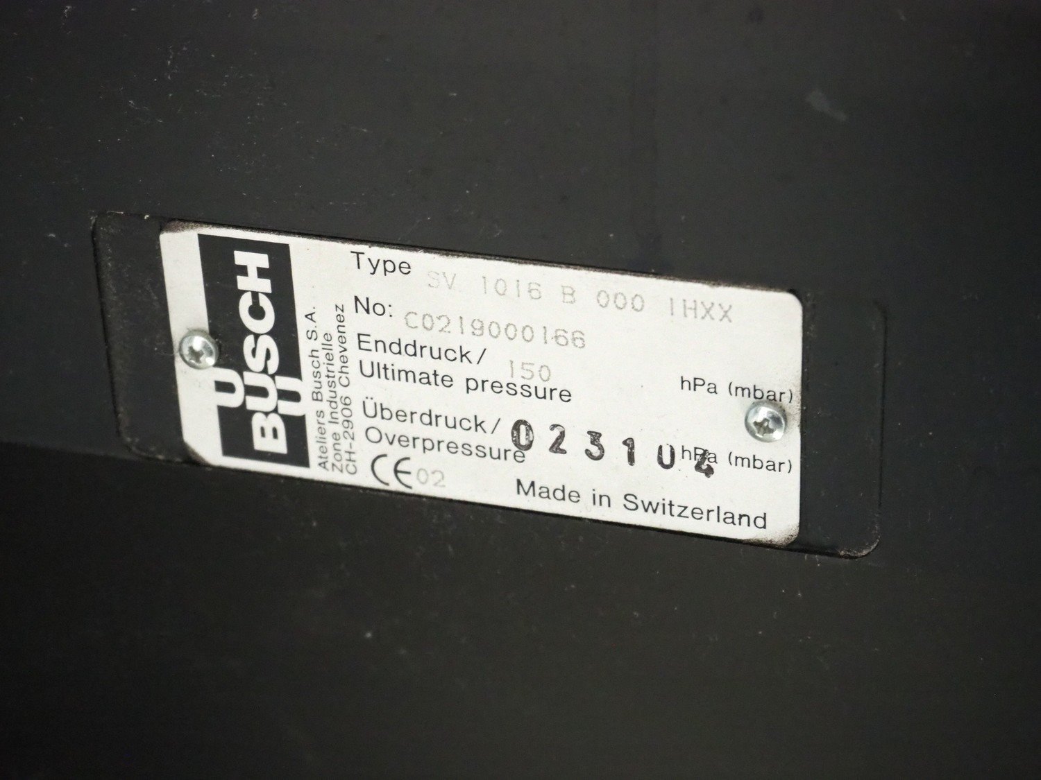 Busch vacuum pump, type: SV 1016 B 000, serial number: C0219000166, year of construction: 02, capacity: 16 m³/h, dimensions: 420 mm x 210 mm x 320 mm.