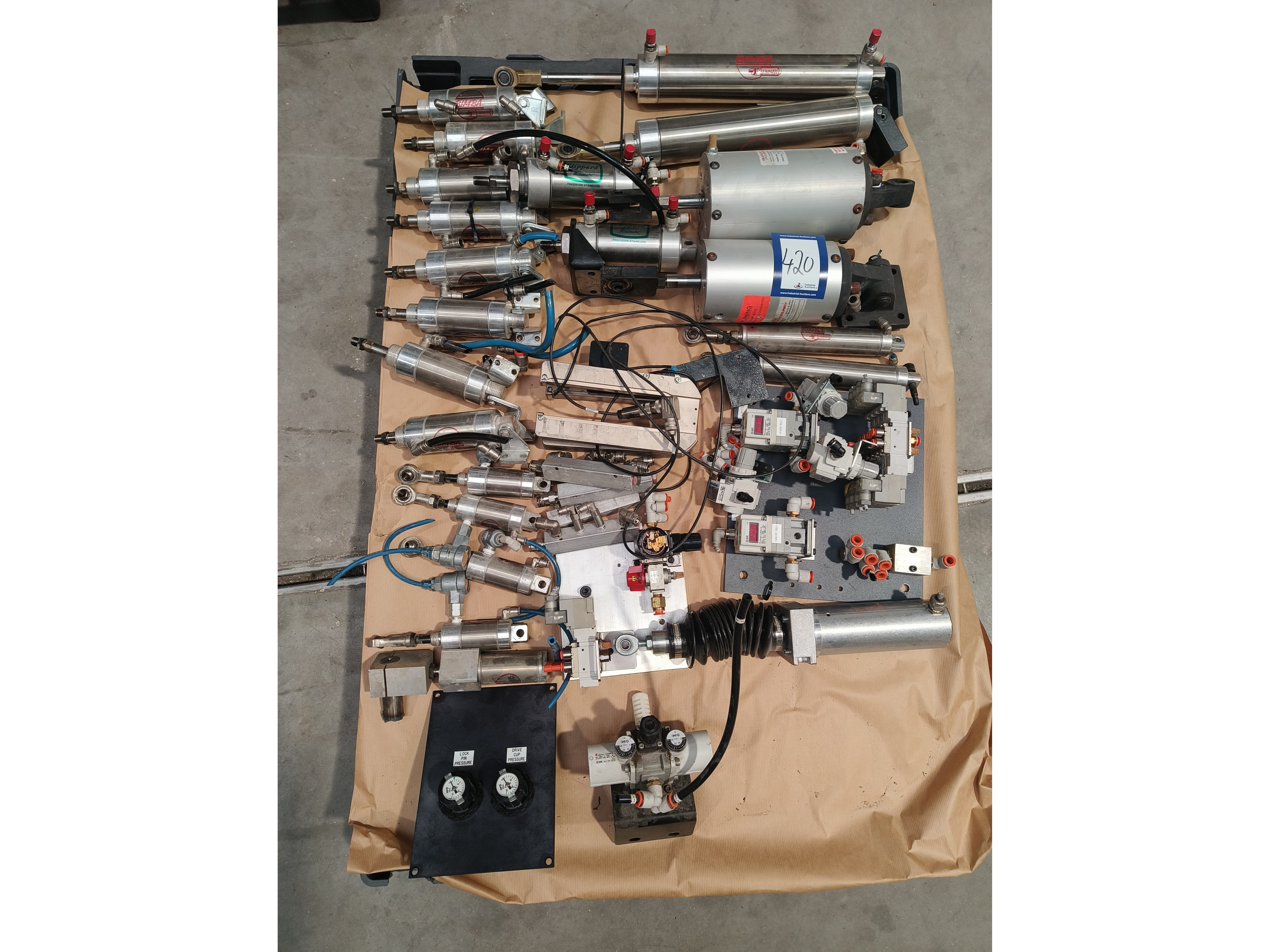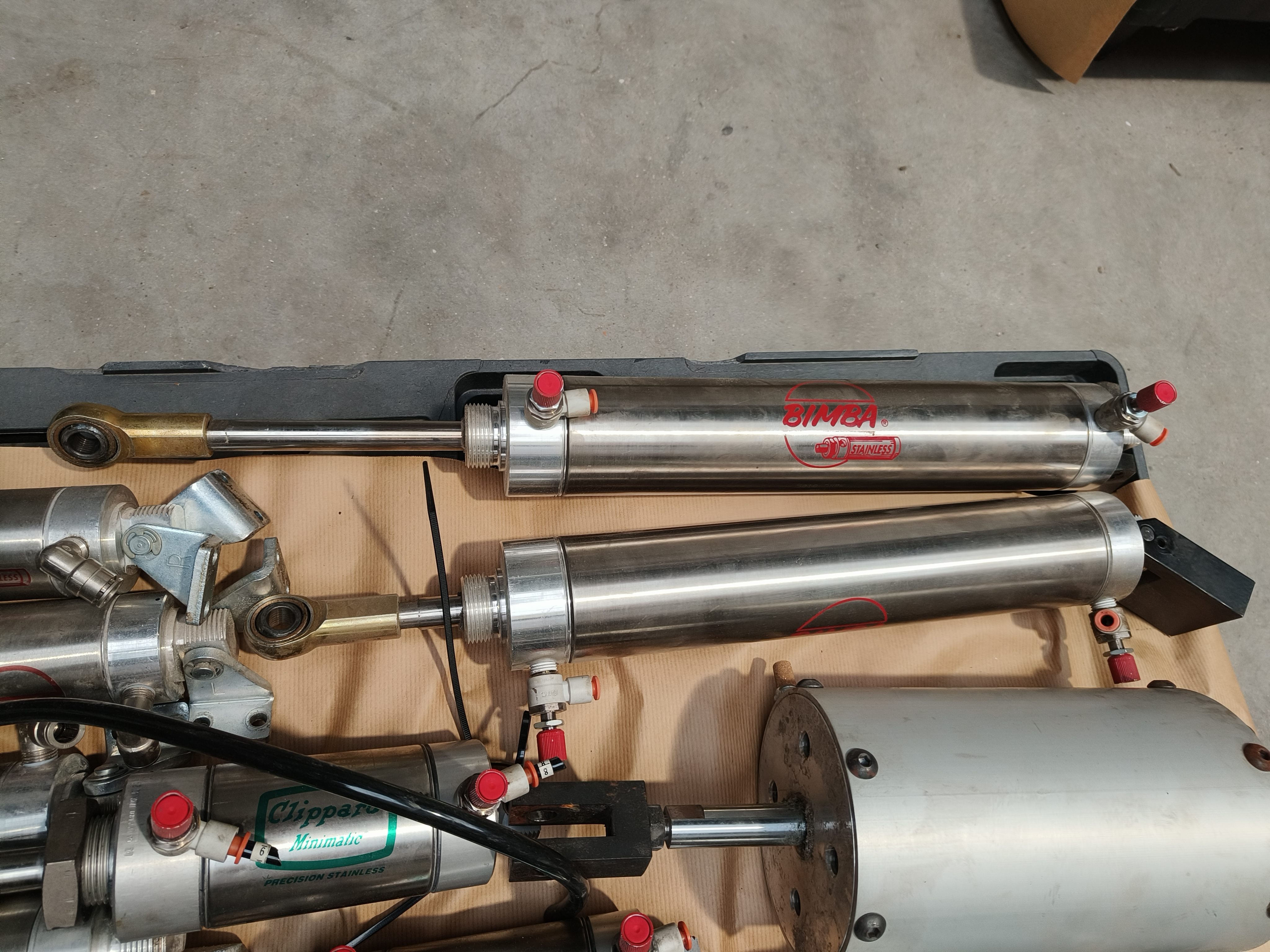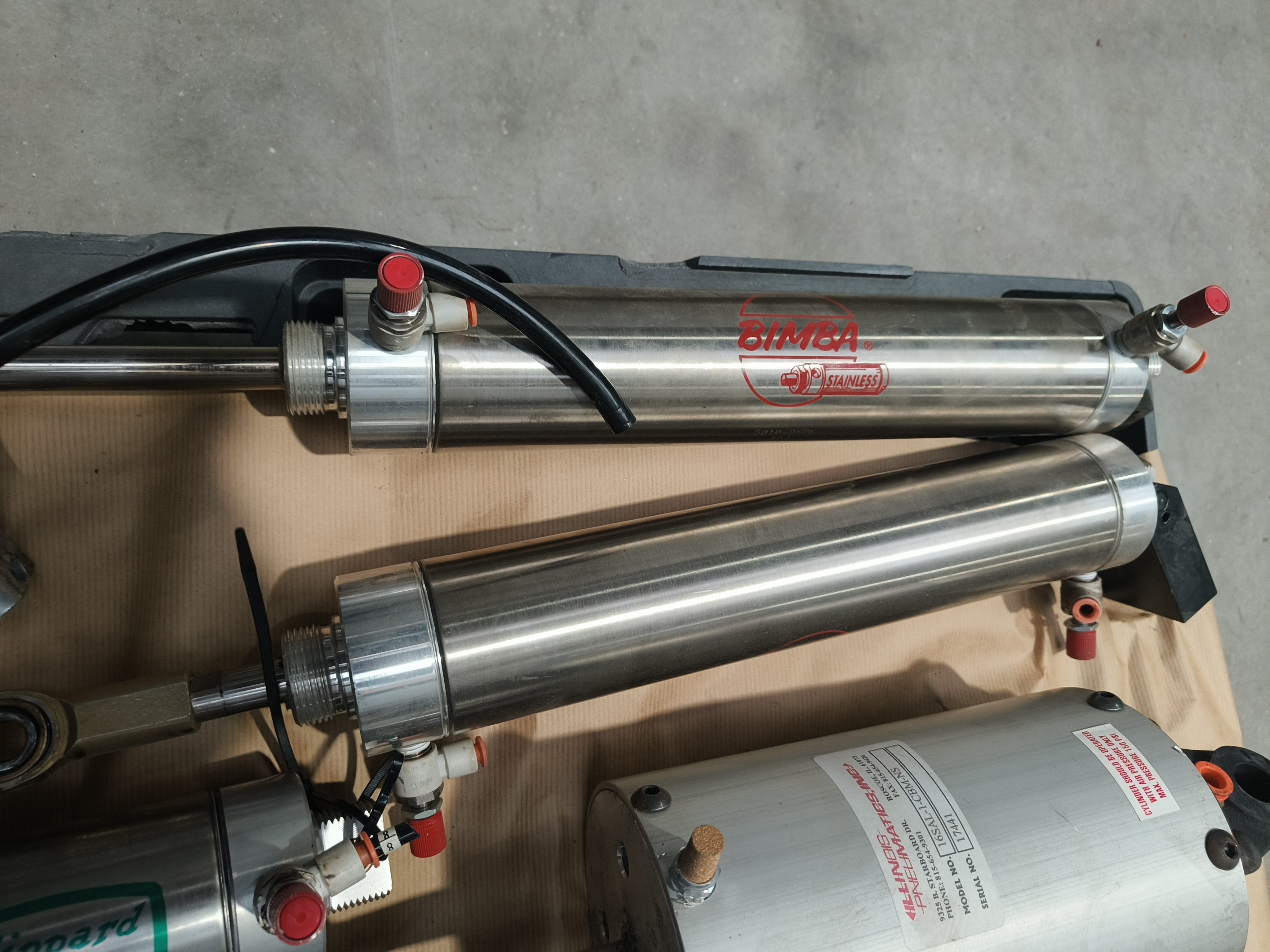 21x gas springs, 2x Illinois Pneumatics, model: 16SAL-1-CMB-NS, 2x Clippard Minimatic, 17x Bimba Stainless.