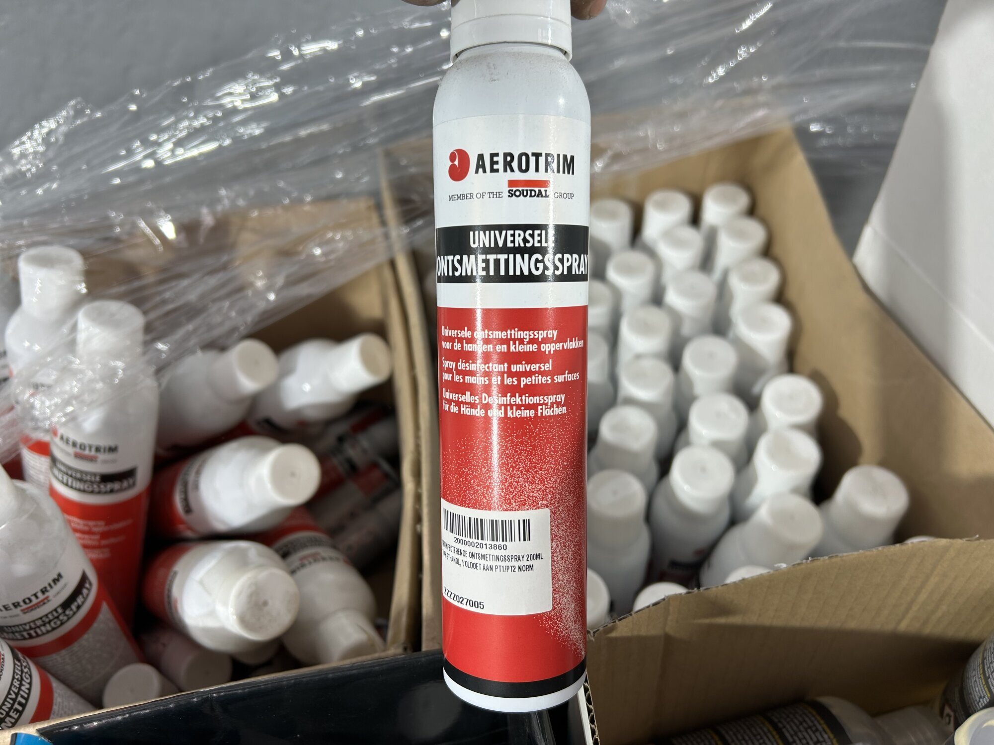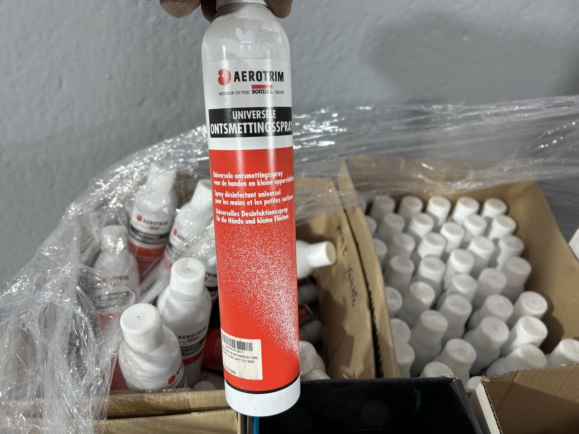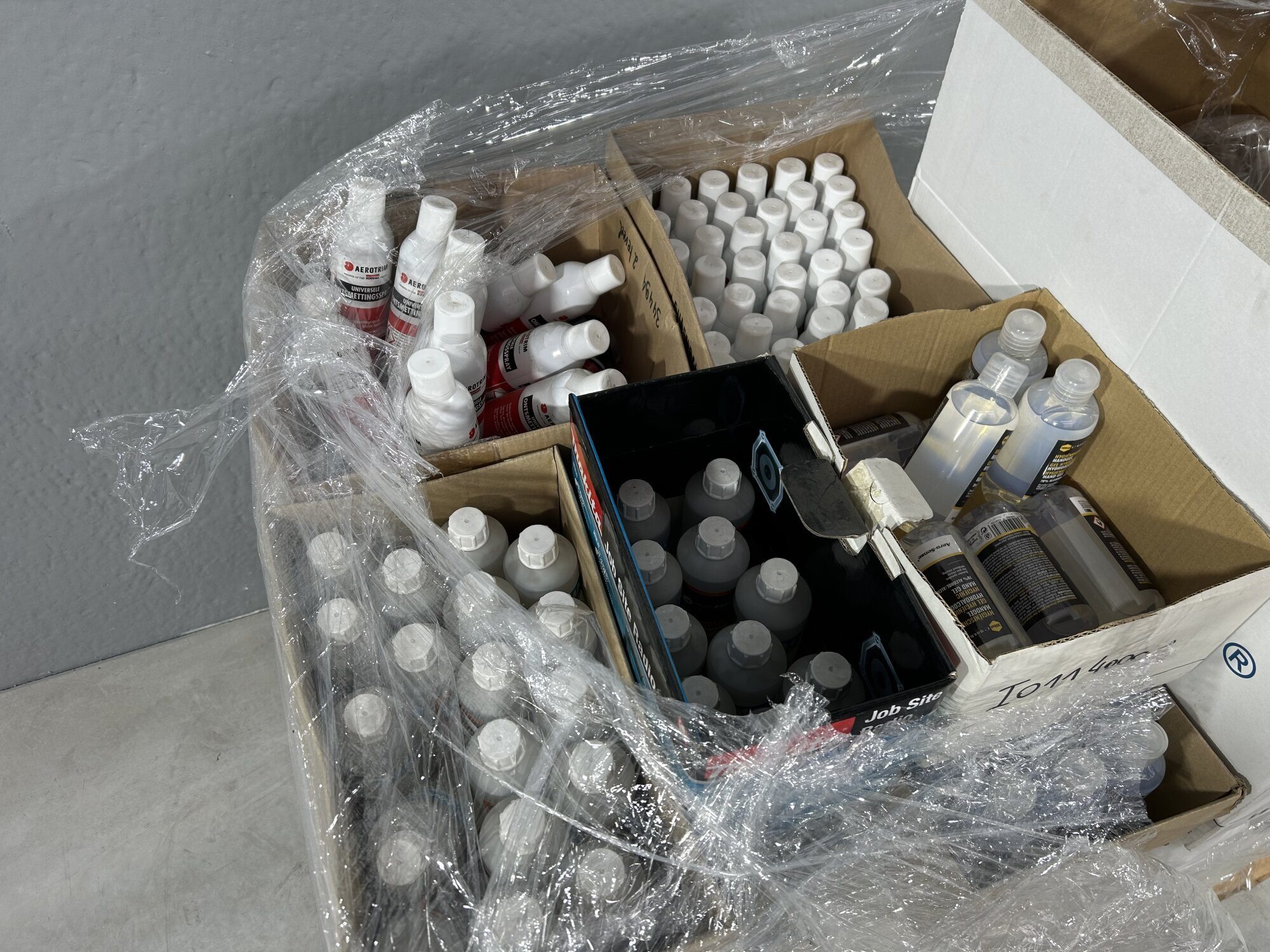 Diverse ontsmettingsproducten (14x12l) + handvrije pompjes (+/-25st)…