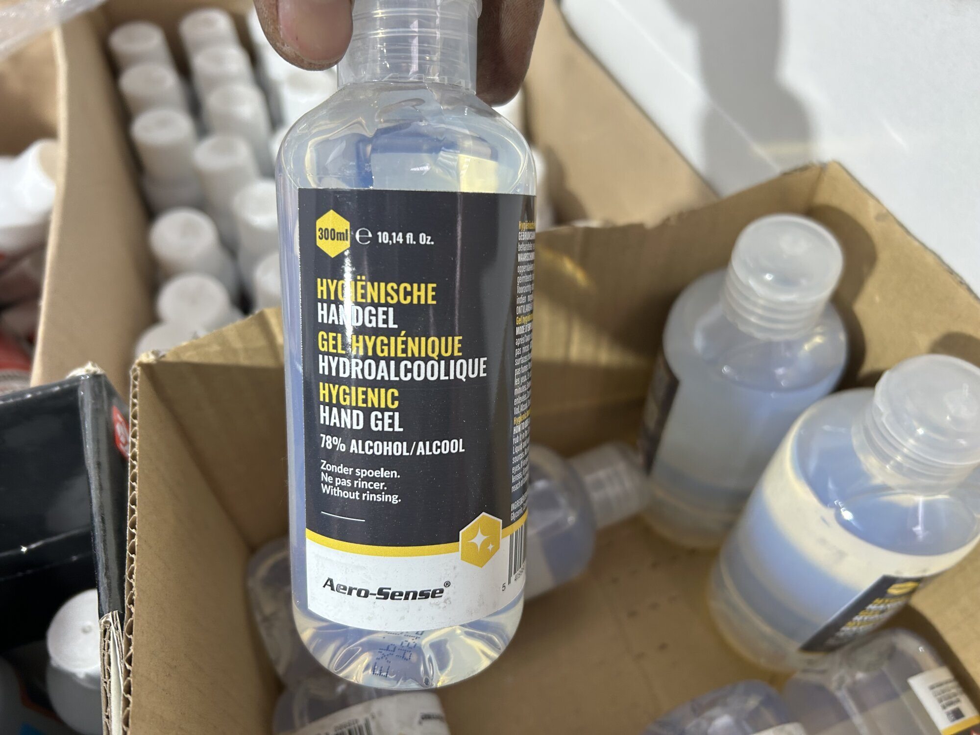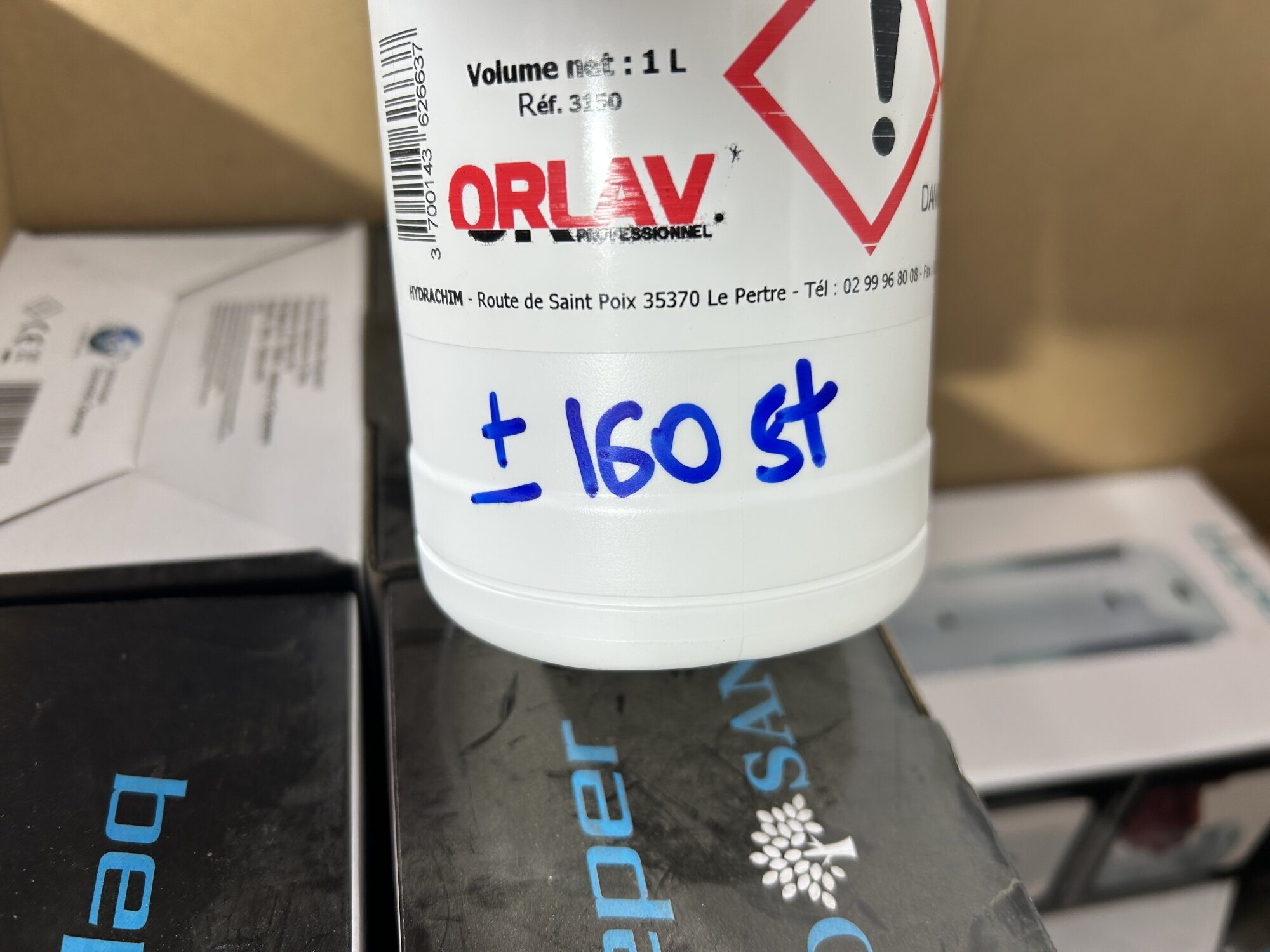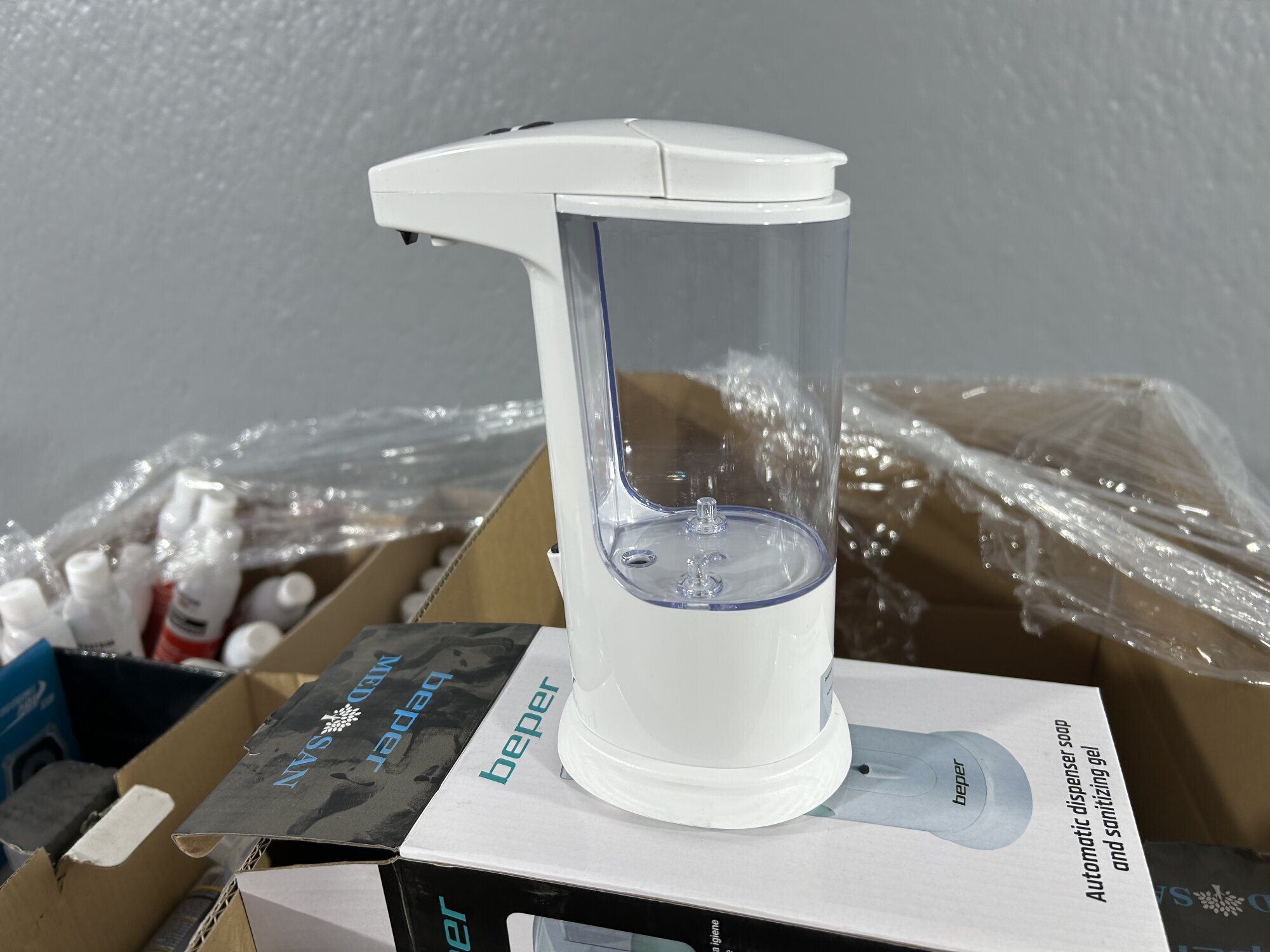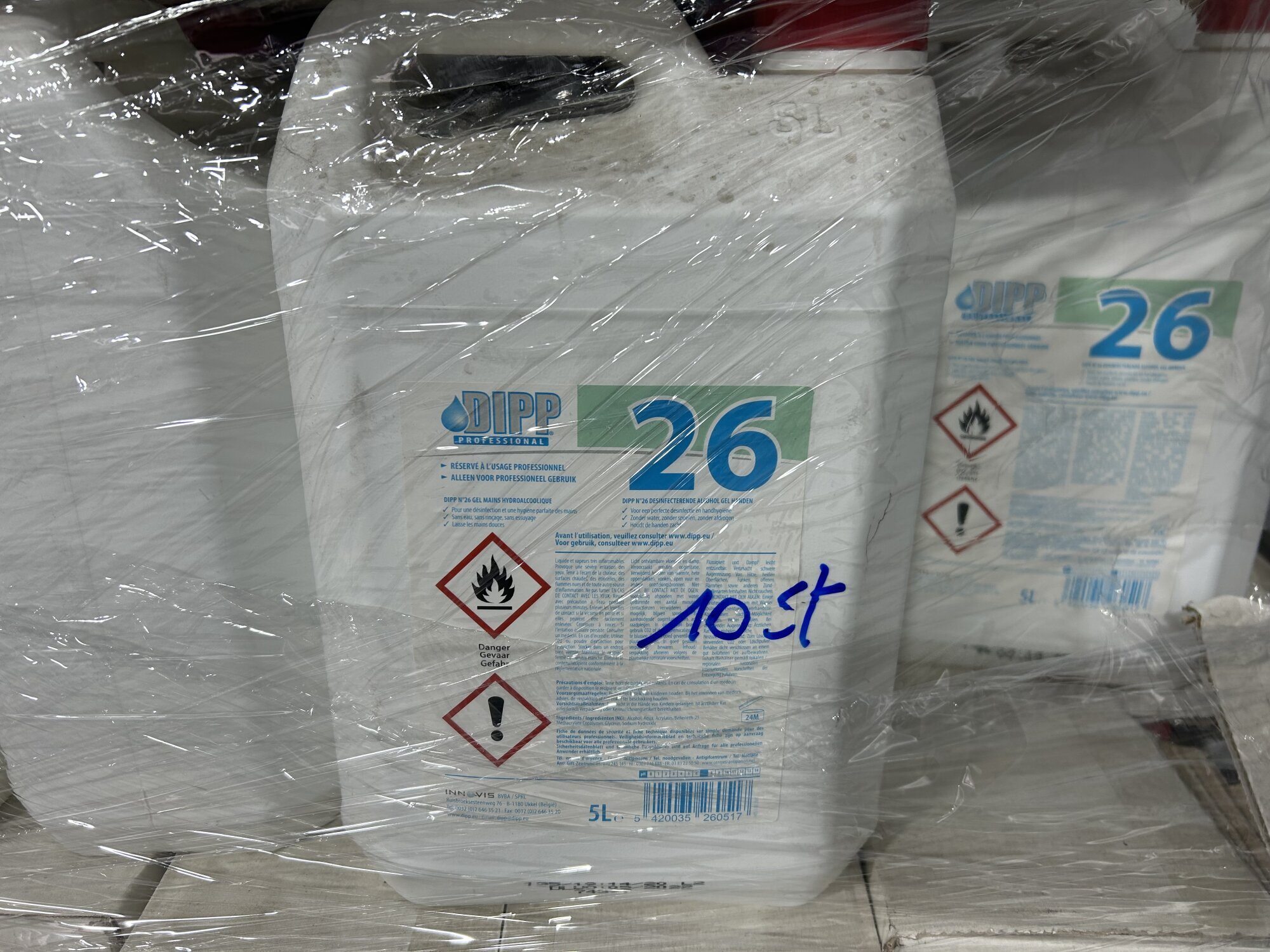 Diverse ontsmettingsproducten (14x12l) + handvrije pompjes (+/-25st)…