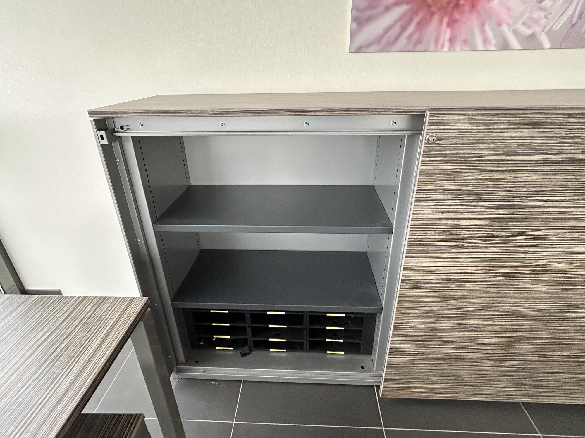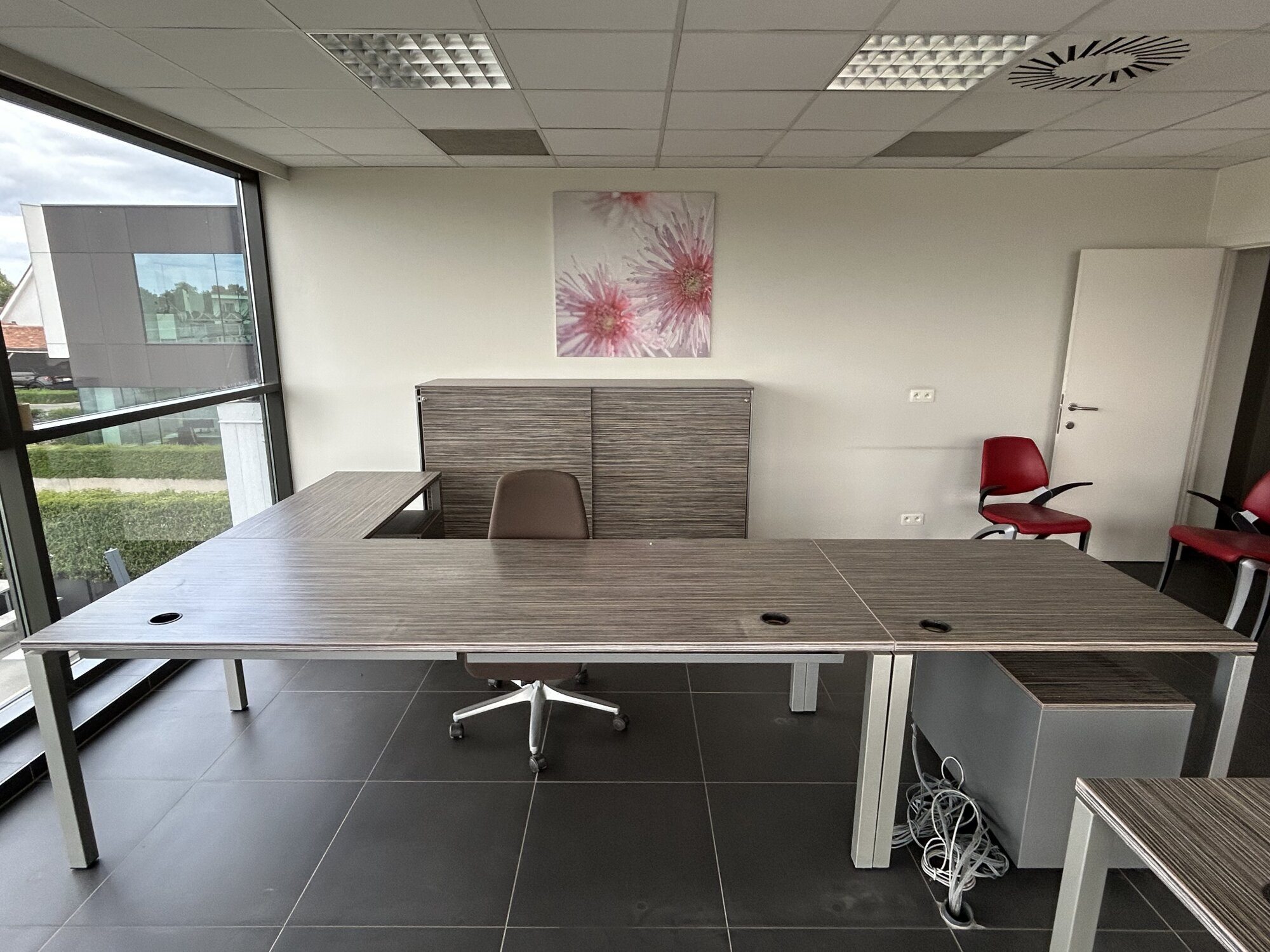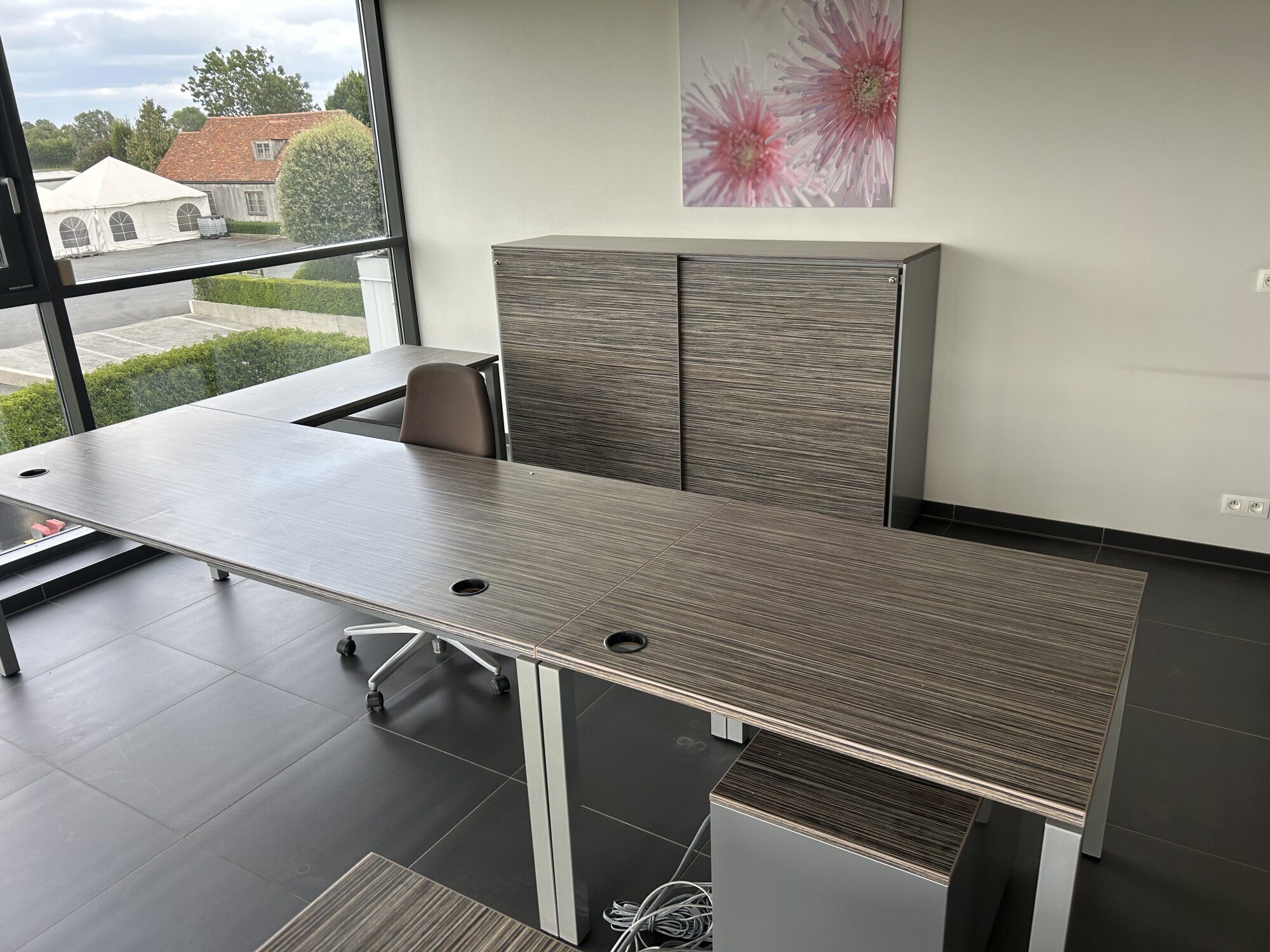 Bureau / tafel l-vorm + dossierkast met schuifdeuren