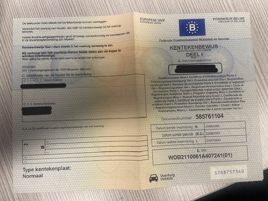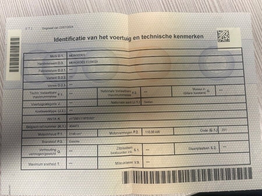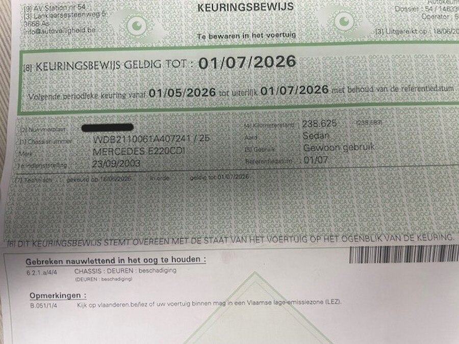 Personenwagen mercedes e220 cdi, type 211, variant u00cf0, variant tdaaa510, ch.nr. wdb2110061a407241, bouwjaar 23-09-2003 (sleutel, inschrijvingsbewijs deel i en gelijkvormigheidsattest)