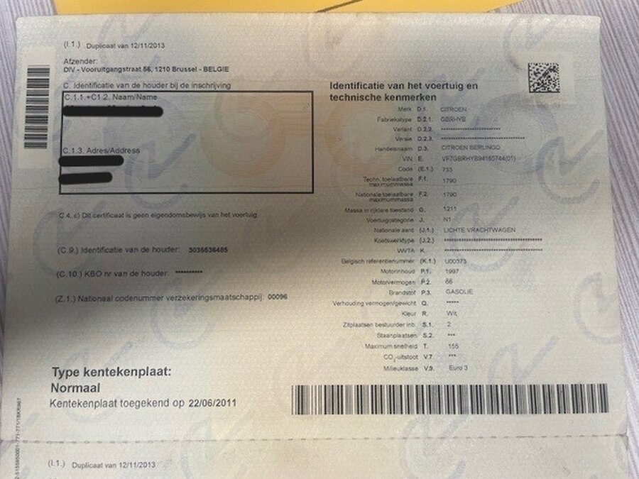 Lichte vrachtwagen citroen berlingo, type gbrhyb, ch.nr. vf7gbrhyb94165744, bouwjaar 09-11-2005 (sleutel, inschrijvingsbewijs deel i en deel ii, gelijkvormigheidsattest)