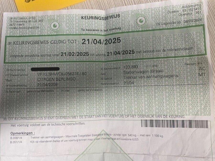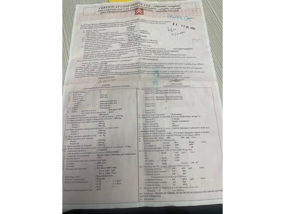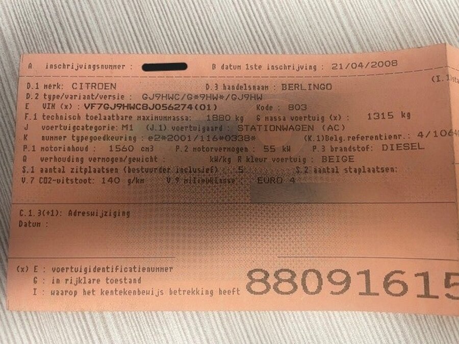 Stationwagen citroen berlingo, type g*9hw*, variant gj9hw, versie gj9hwc, ch.nr. vf7gj9hwc8j056274, bouwjaar 21-04-2008 (sleutel, inschrijvingsbewijs en gelijkvormigheidsattest) start niet
