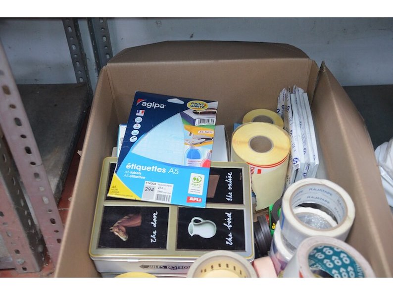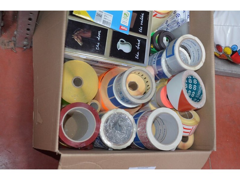 Doos met plakband en etiketten, 8 dweilkoppen
