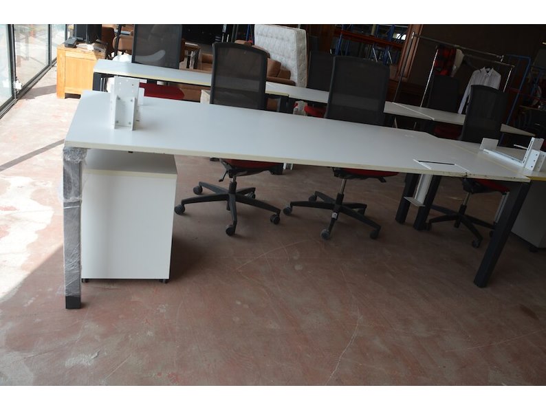 Bureeltafel 240x100x75 cm, ladeblok met 3 laden, 2 bureelstoelen, 2 pc beugels