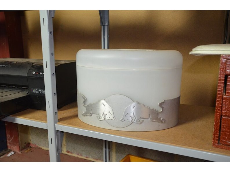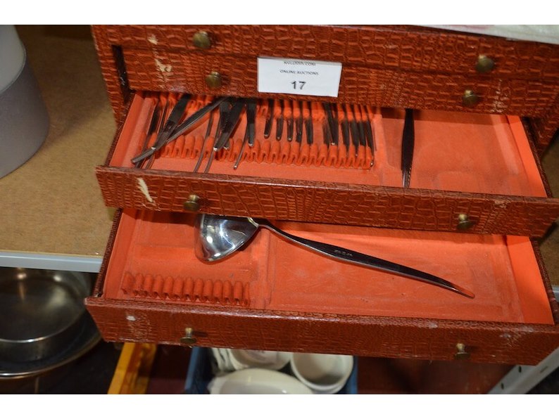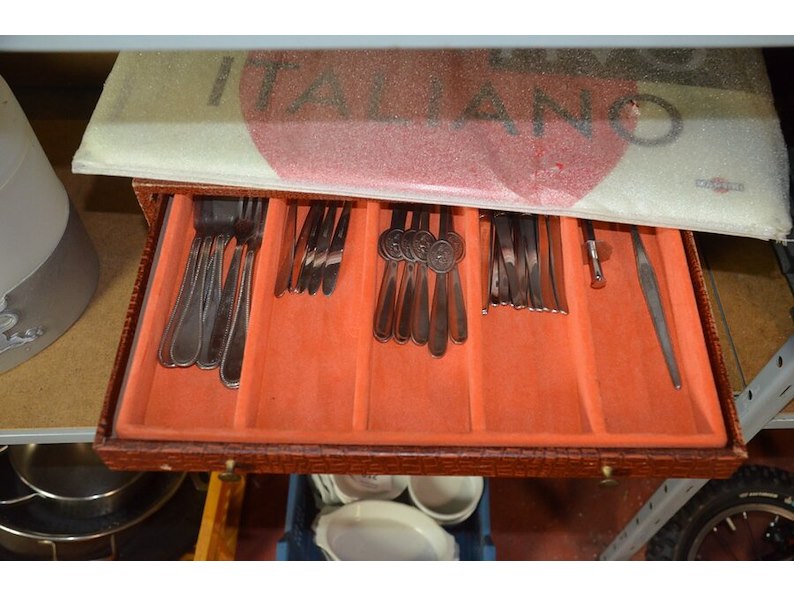 Bestekkoffer , 16 diverse ovenschotels, partij kookpotten, ijsemmer redbull