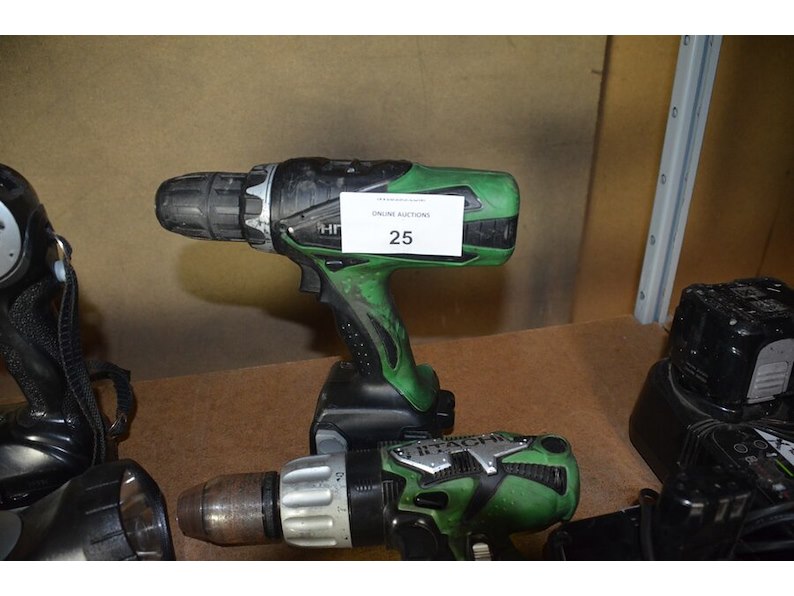 2 accu boormachines hitachi, 2 pillampen, 4 accu hitachi en lader hitachi