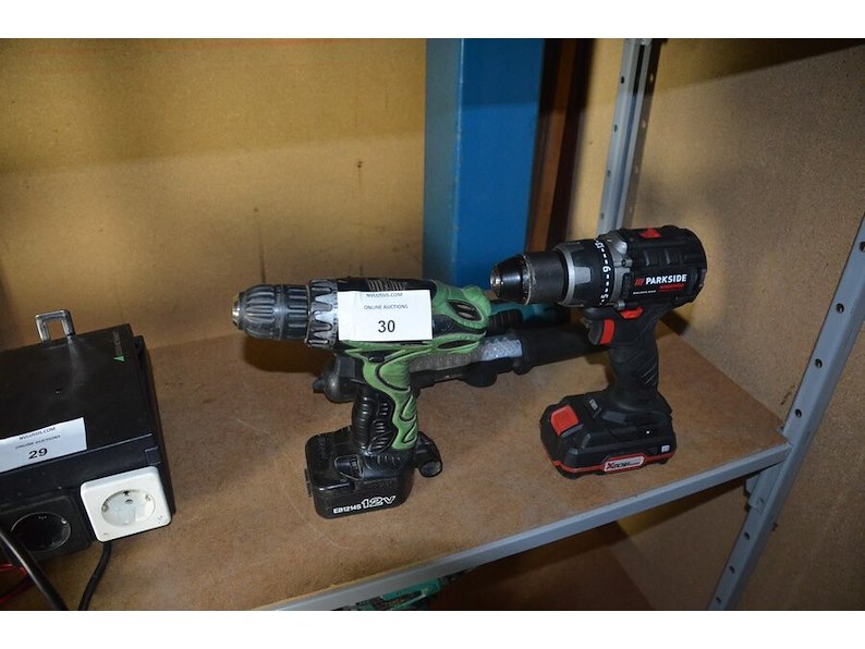 Accu boormachine hitachi ds12dvf3 met accu zonder lader, accu boormachine parkside pabsp20lic3 met accu zonder lader, 2 pillampen