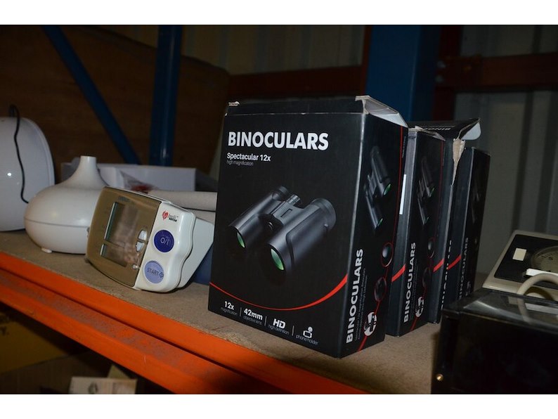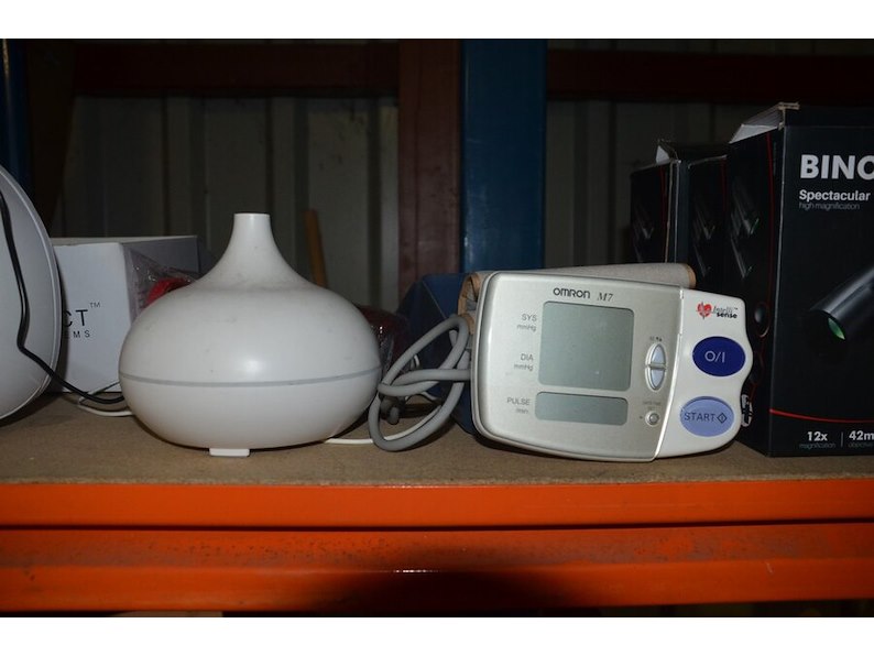 3 verrekijkers, bloeddrukmeter omron m7, luchtbevochtiger, nagellamp