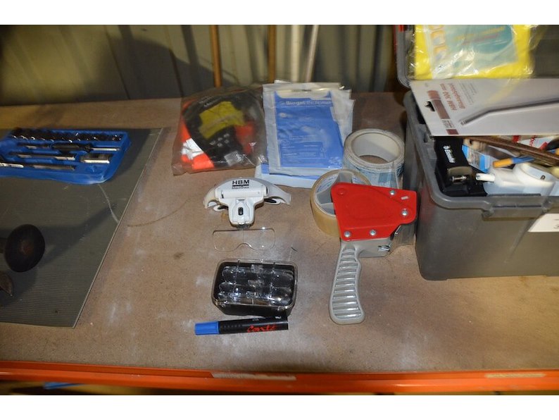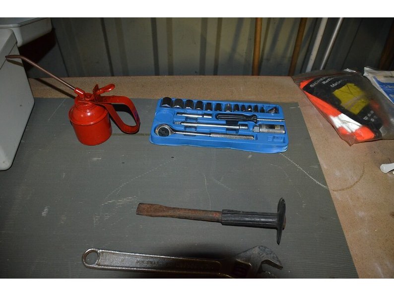 2 pvc werkkoffers gevuld met klein handgereedschap, dopsleutelset, vergrootglas, schuppen