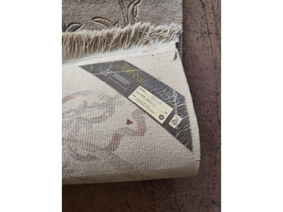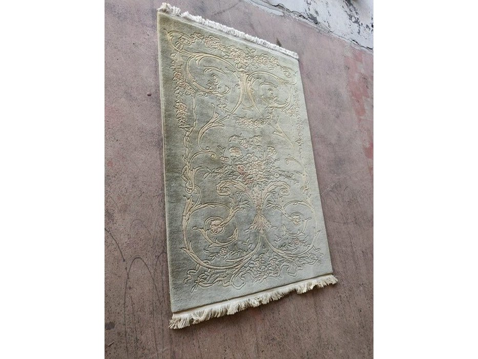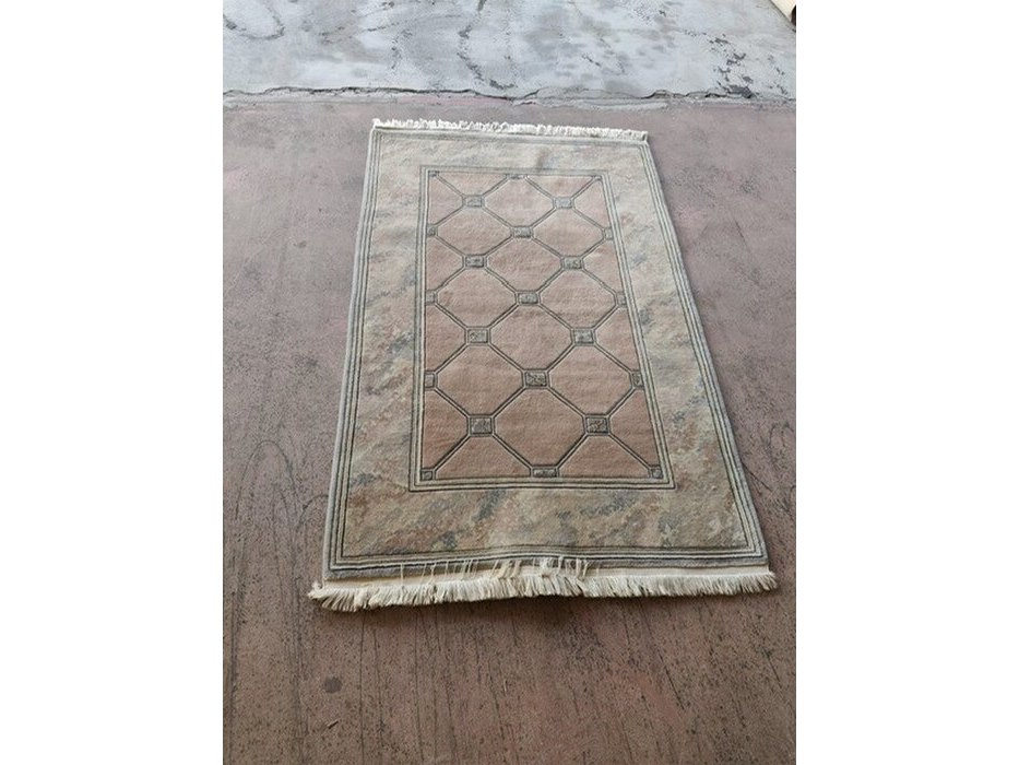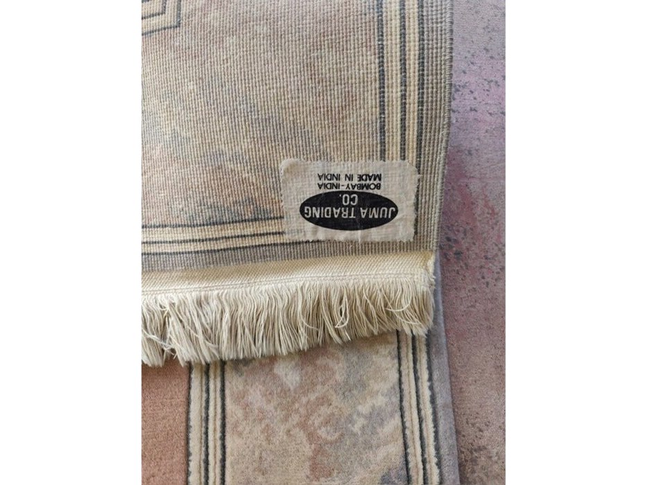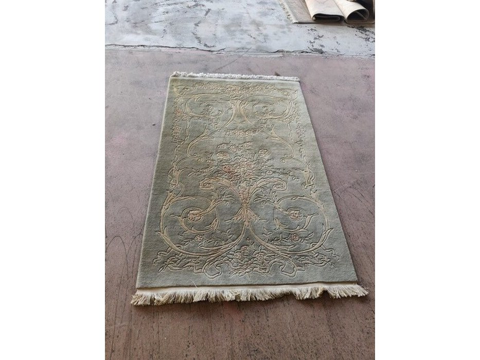 4 stoelen wit met rieten rug en stoffen zit, 2 stoelen met armleuning wit met rieten rug en stoffen zit, 3 kleine tapijten