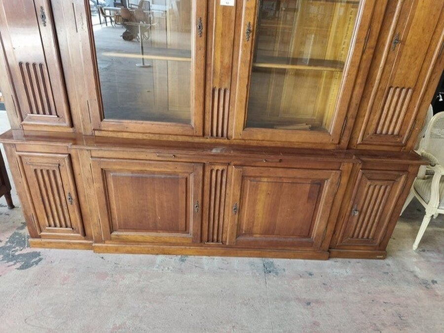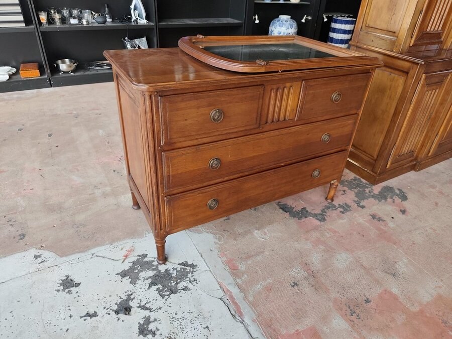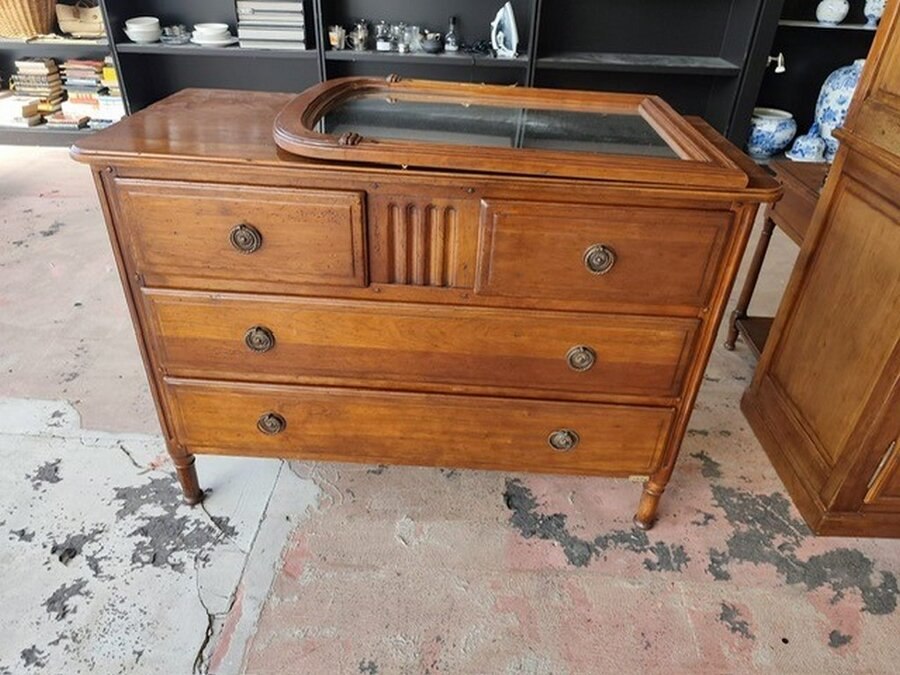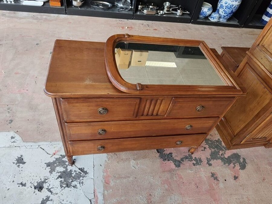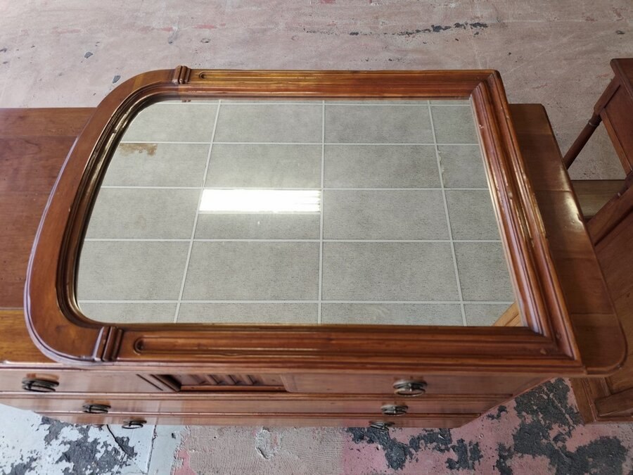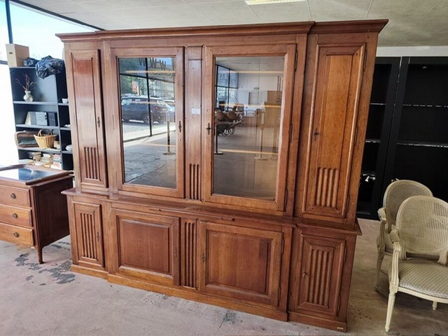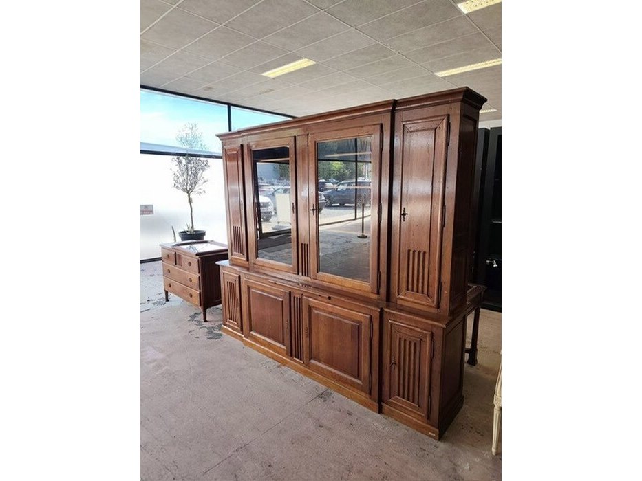 Eikenhouten bibliotheekkast flamant met 2 glazen deuren en 6 eikenhouten deuren camille&vence, eiken ladenkast met 4 laden, spiegel in houten kader
