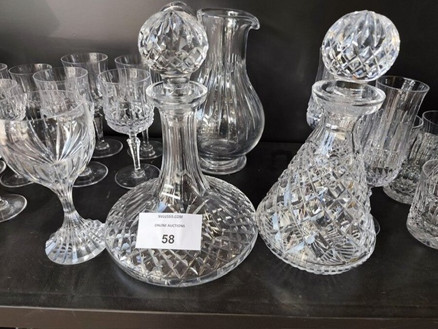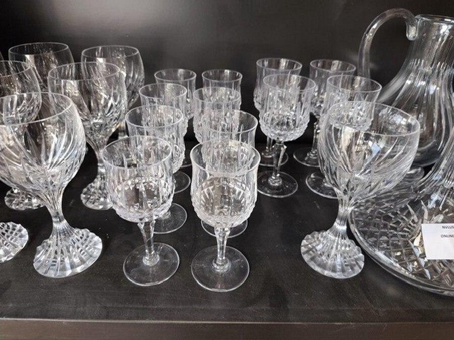 Set kristallen glazen en karaf, 2 decanteerkaraffen kristal