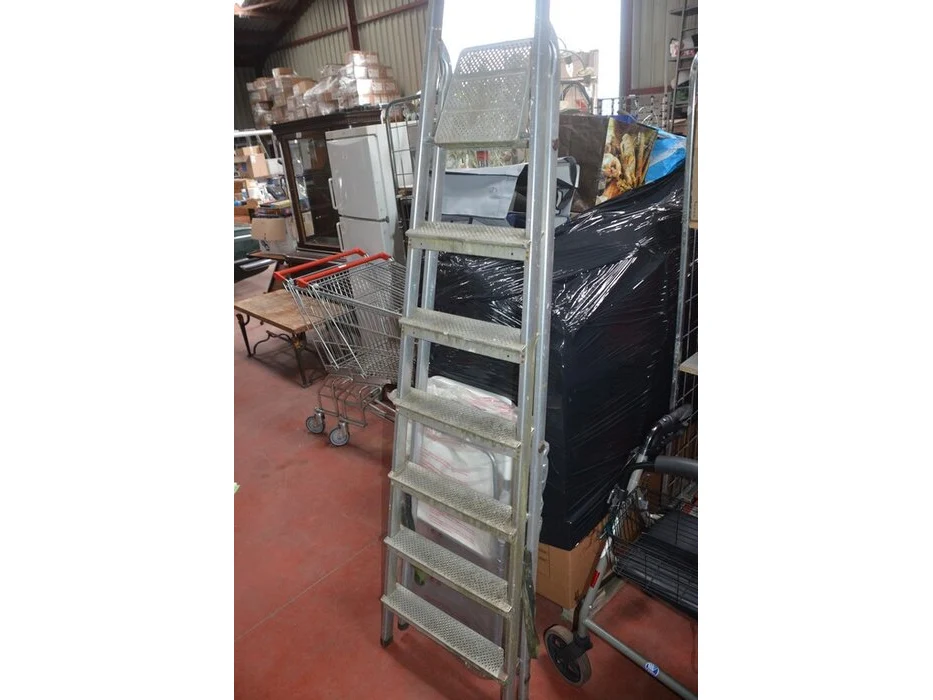 Rollator, 2 plooistoelen, trapladder met 2 treden, trapladder met 6 treden