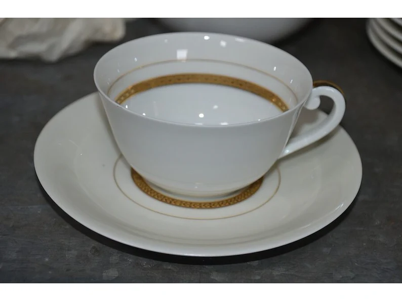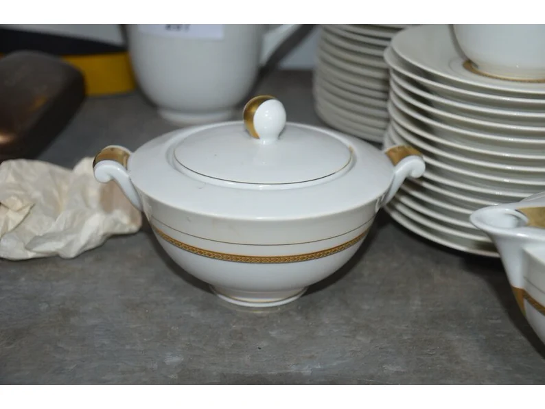 Koffie/thee set limoges bestaande uit 14 tassen met ondertas, melkkan, suikerpot, koffie/thee pot, 14 dessertbordjes