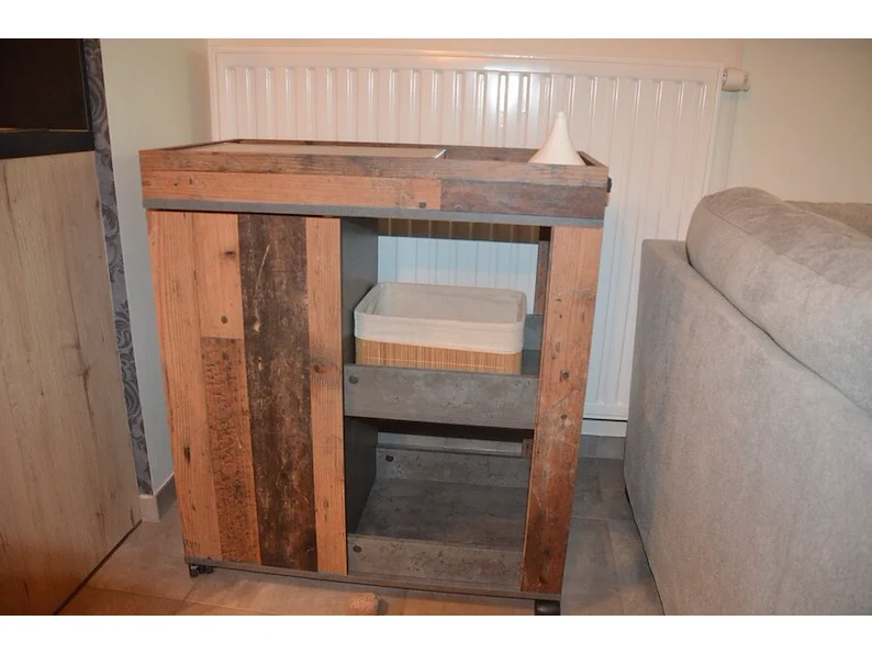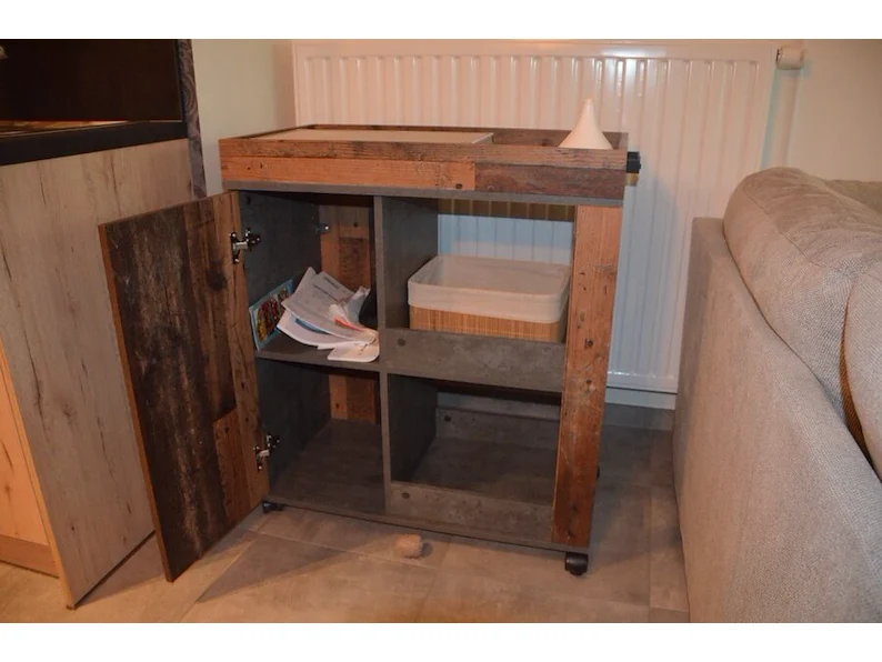 Houten rolserveerwagentje 1 deur 2 leggers , barbecueset in koffer, modern rond wandrek 4 leggers met 4 sierstukken