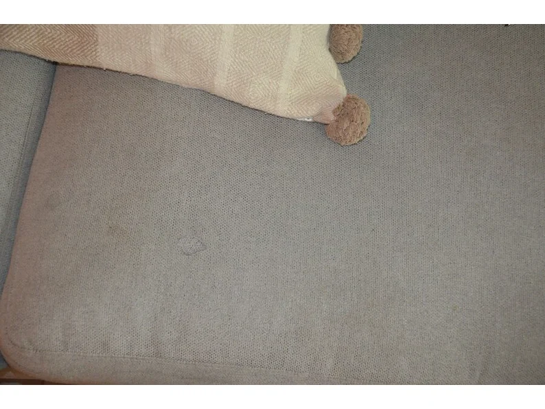 U-vormig grijs stoffen salon afm. 345x200, 3-delige salontafel zwart metalen voet, rond tapijtje