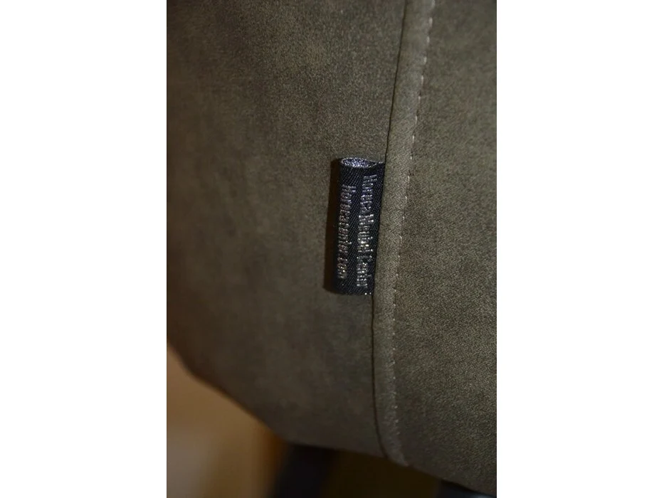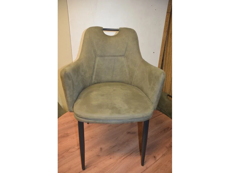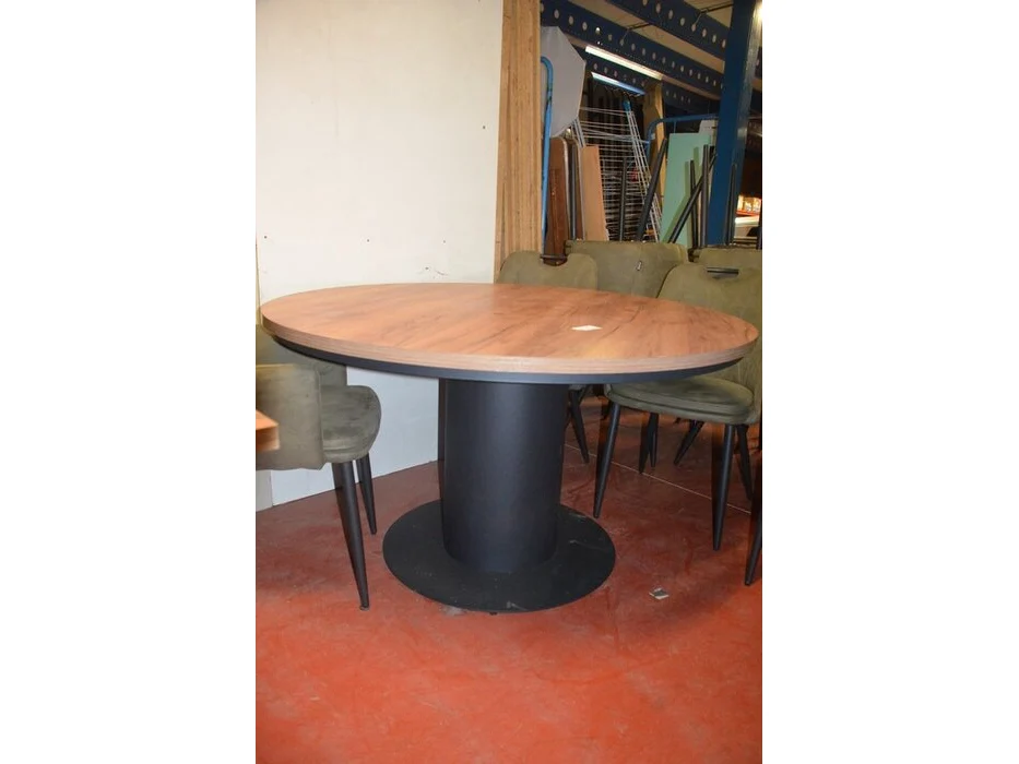Ronde fineerhouten tafel , 6 moderne kuipstoelen grijze stoffen zit en rug (7,8)