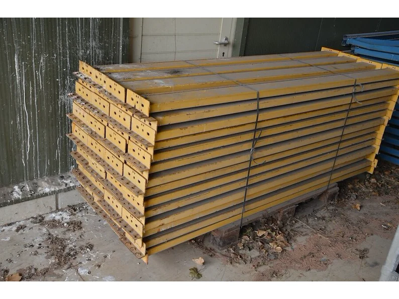 14 kopsteunen ca. 5,5 m hoog en 1 m breed, 56 dwarsbalken ca. 2,20 m lengte