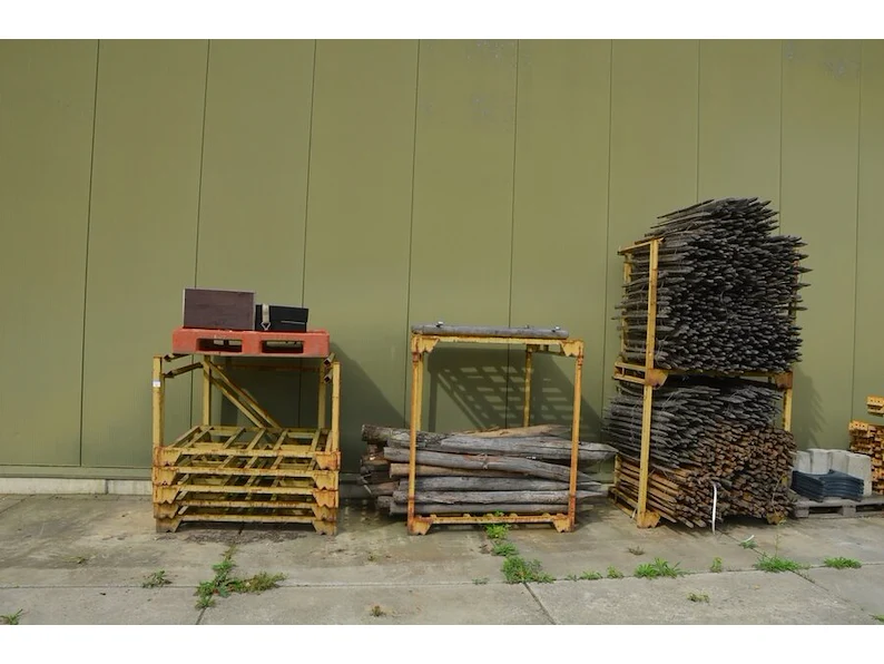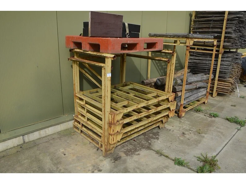 5 metalen pallet boxen gele kleur, 4 metalen palletboxen