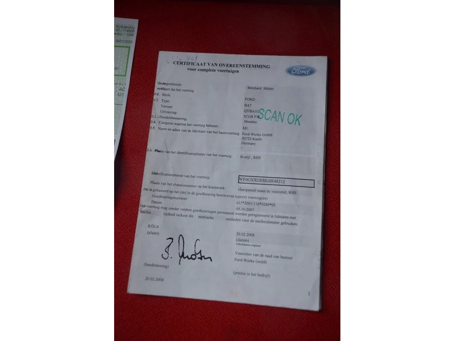 Stationwagen ford mondeo clippen, dienstwagen s10, type: ba7, variant: qyba1g, versie: 5cgbpw, ch.nr. wf0gxxgbbg8r48212 met boorddocumenten en sleutel